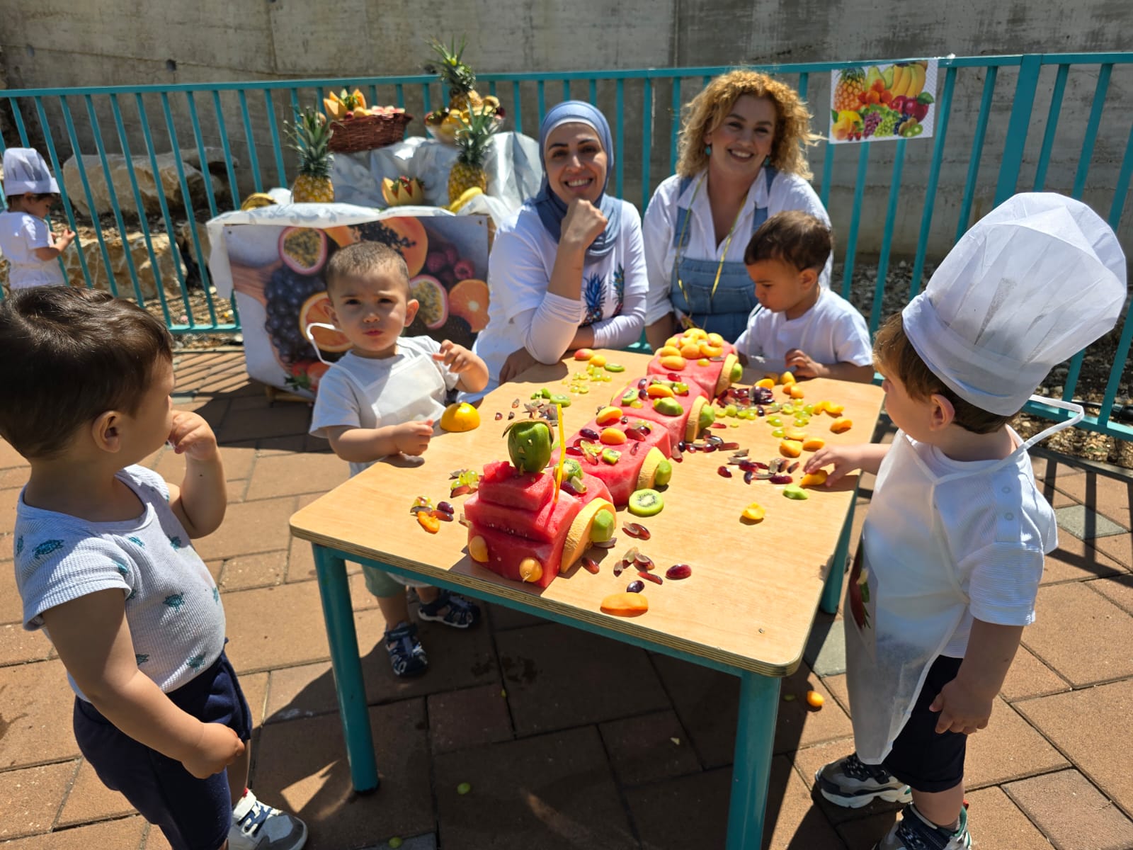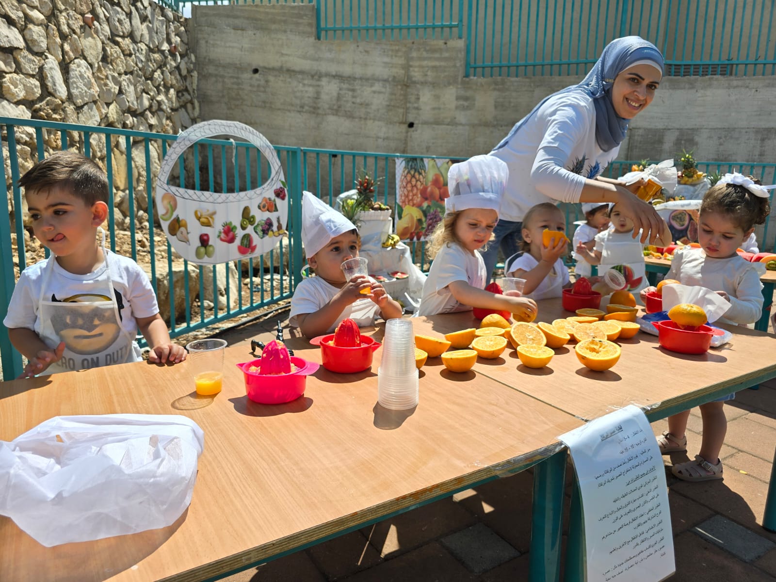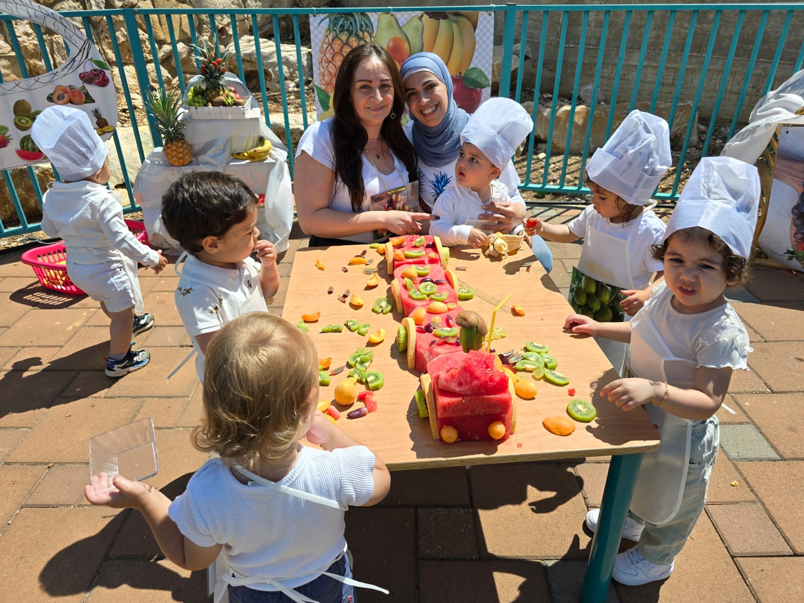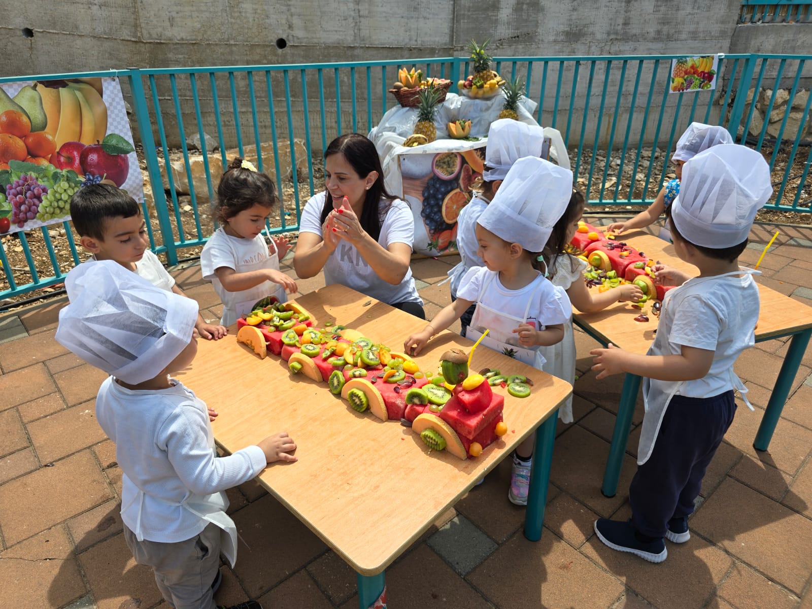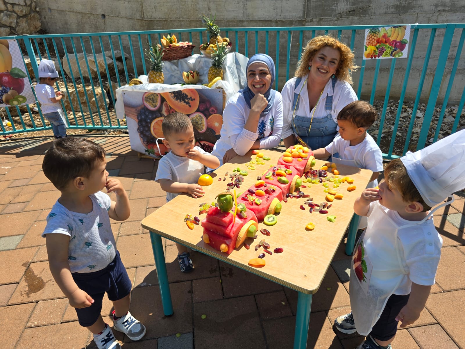 اهلا- صور وتقرير ادارة الحضانة احتفلت حضانه الشمس التابعه للمركز الجماهيري باداره عفاف شاهين وبمشاركه المربيات بيوم الطفل العالمي بمهرجان الفواكه الصحي إذ افتتح المهرجان بمحطات عديده منها تزيين كعكه البطيخ بالفواكه المنوعه الكيوي والعنب والتوت وكذلك محطه قطار البطيخ زيينه الاطفال الفواكه المنوعه والمقطعه وكان أيضا محطه تقطيع الفواكه لسلطه الفواكه ومحطه عصير البرتقال وغيرها من محطات منوعه بالفواكه مما رسم الفرحه على وجوه اطفال الحضانه وزادهم باكتساب فوائد ومميزات الفواكه واكتساب مفاهيم منوعه