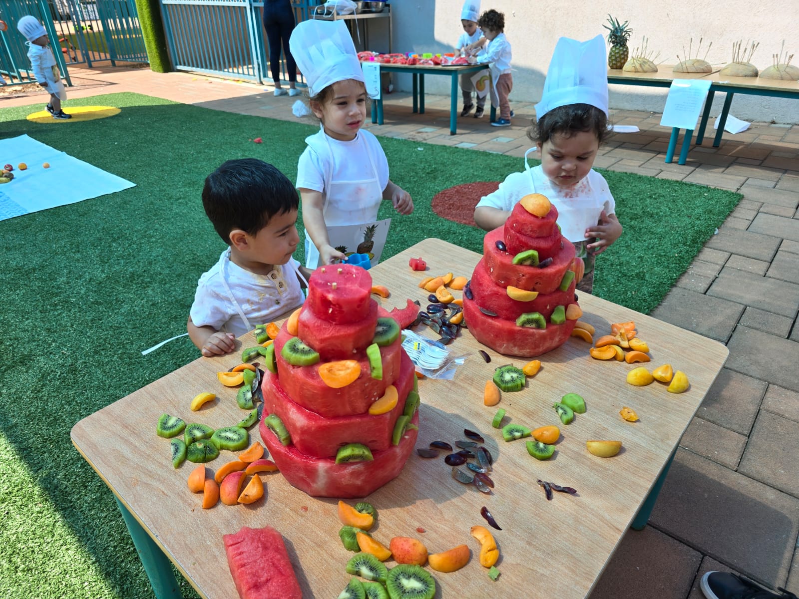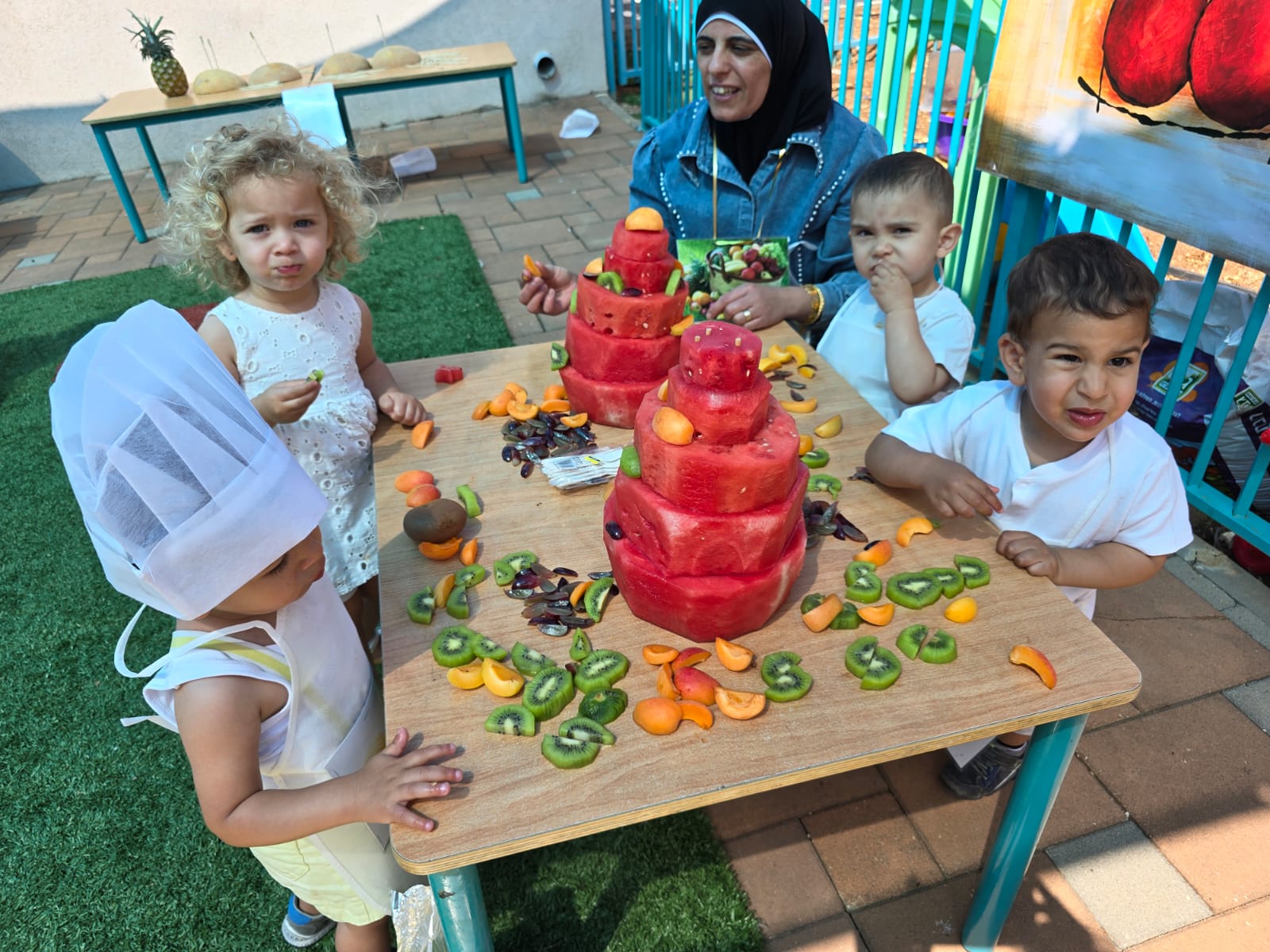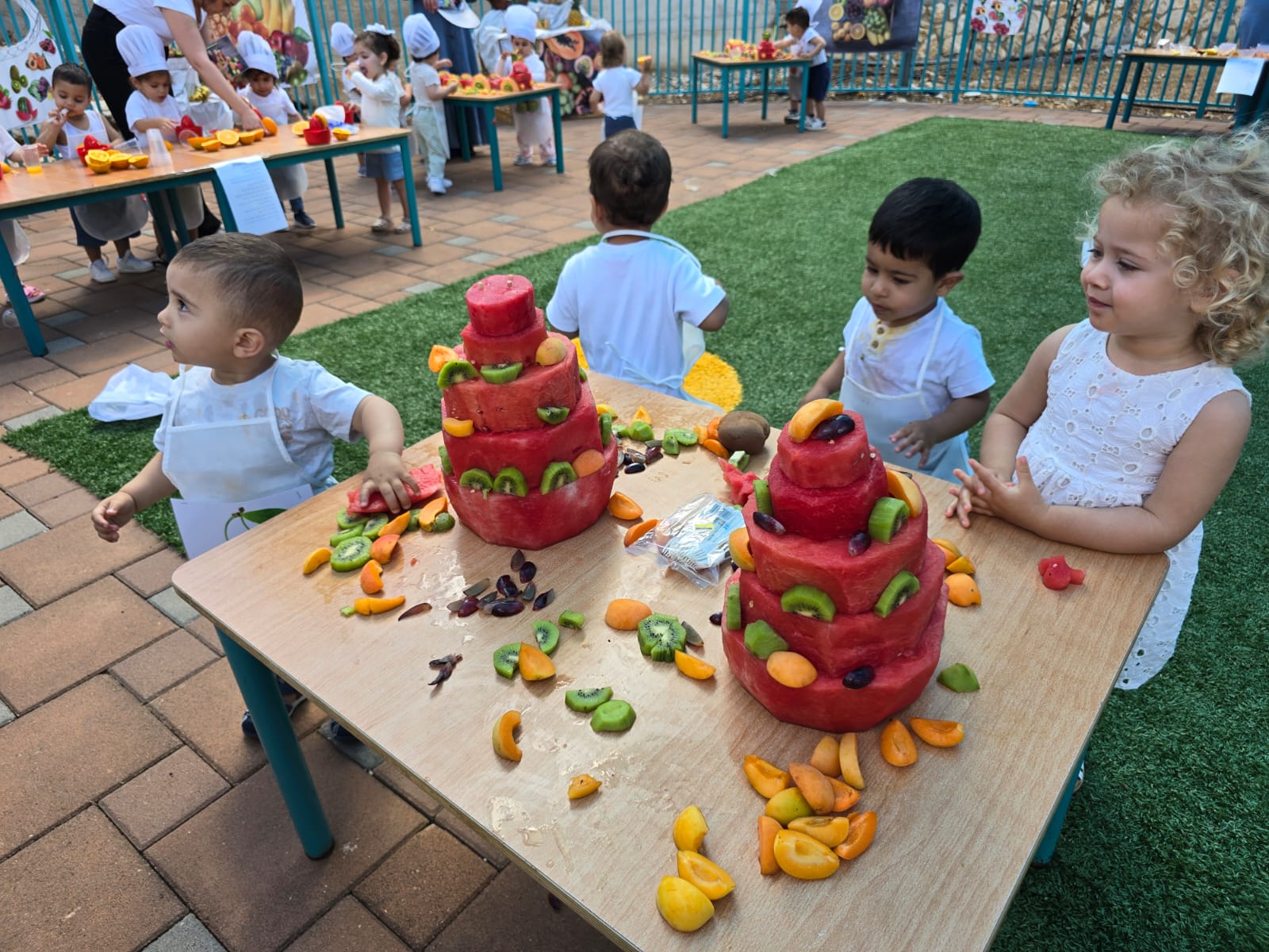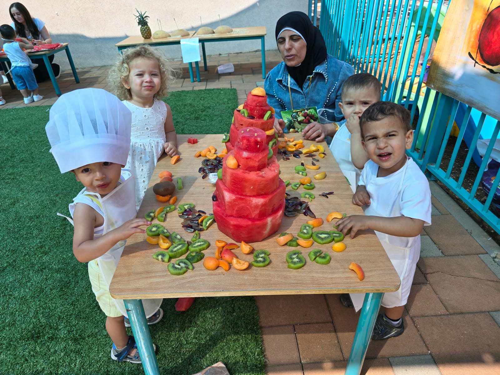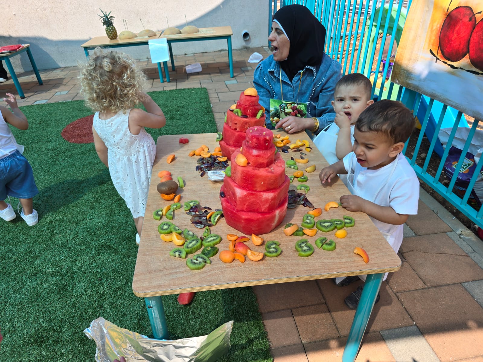 اهلا- صور وتقرير ادارة الحضانة احتفلت حضانه الشمس التابعه للمركز الجماهيري باداره عفاف شاهين وبمشاركه المربيات بيوم الطفل العالمي بمهرجان الفواكه الصحي إذ افتتح المهرجان بمحطات عديده منها تزيين كعكه البطيخ بالفواكه المنوعه الكيوي والعنب والتوت وكذلك محطه قطار البطيخ زيينه الاطفال الفواكه المنوعه والمقطعه وكان أيضا محطه تقطيع الفواكه لسلطه الفواكه ومحطه عصير البرتقال وغيرها من محطات منوعه بالفواكه مما رسم الفرحه على وجوه اطفال الحضانه وزادهم باكتساب فوائد ومميزات الفواكه واكتساب مفاهيم منوعه