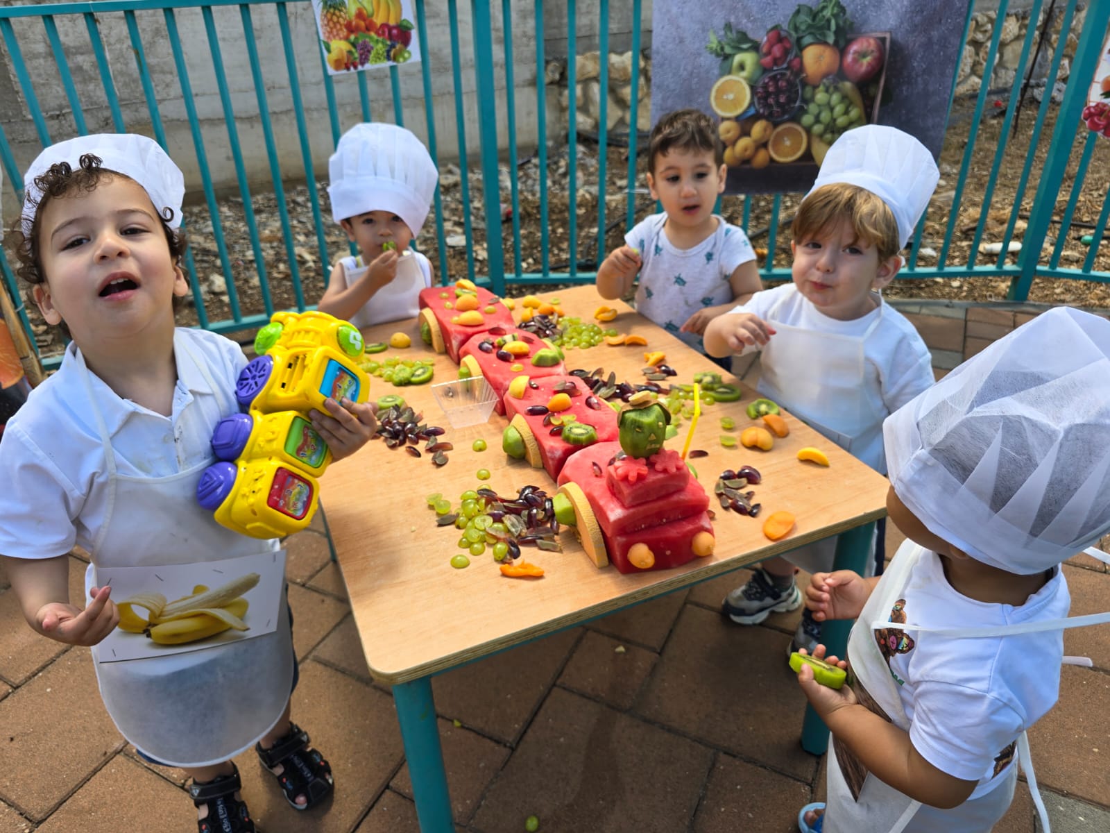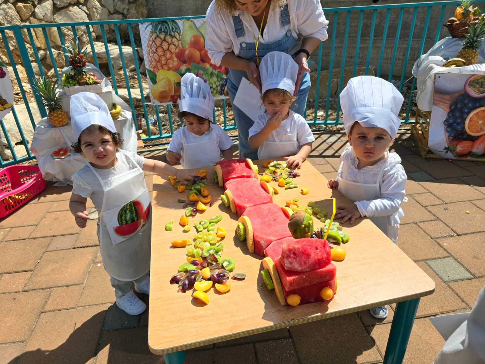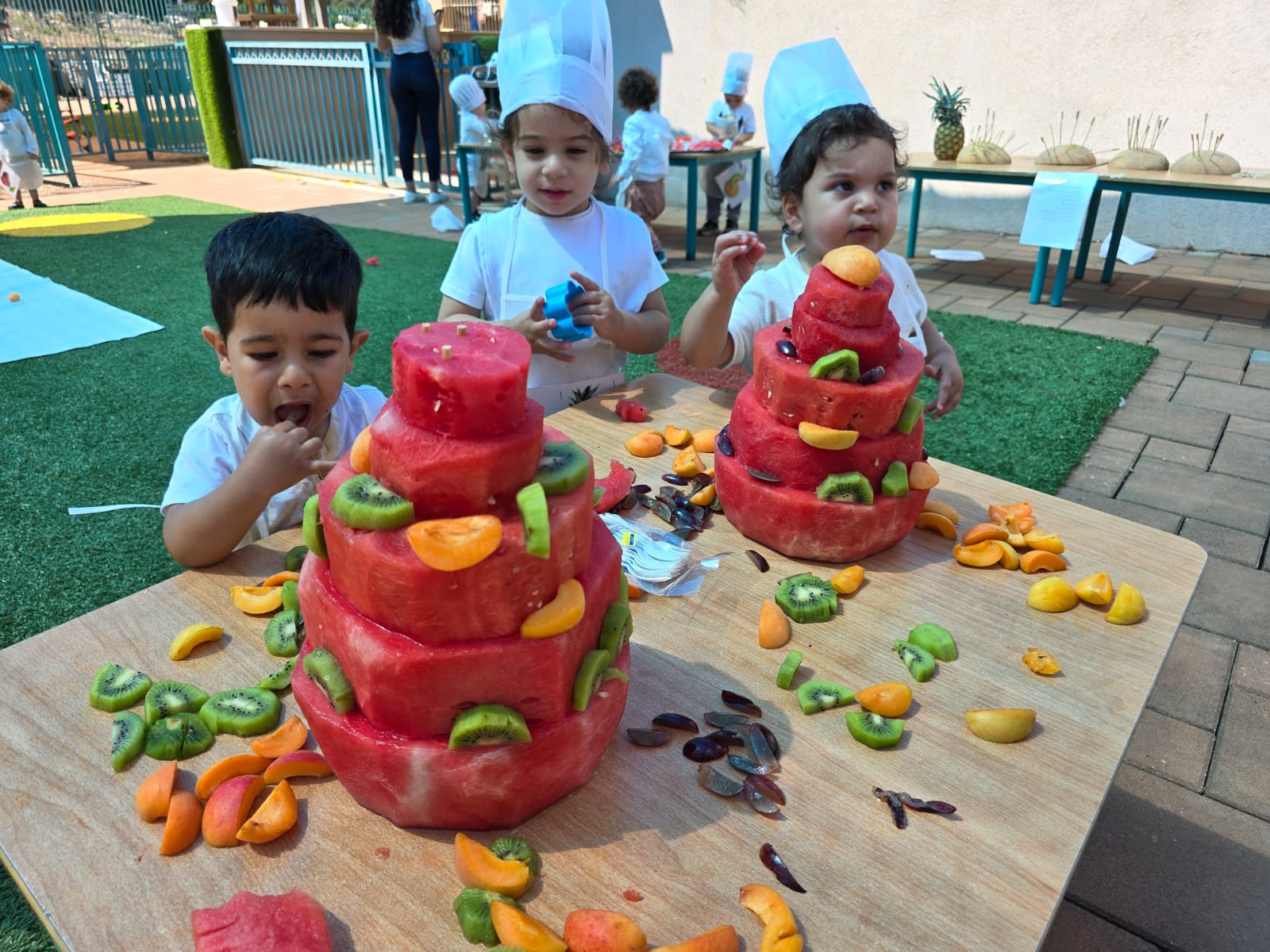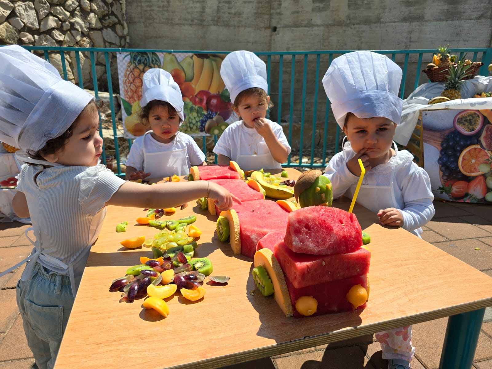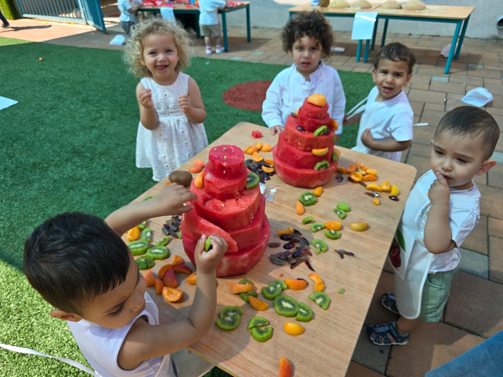 اهلا- صور وتقرير ادارة الحضانة احتفلت حضانه الشمس التابعه للمركز الجماهيري باداره عفاف شاهين وبمشاركه المربيات بيوم الطفل العالمي بمهرجان الفواكه الصحي إذ افتتح المهرجان بمحطات عديده منها تزيين كعكه البطيخ بالفواكه المنوعه الكيوي والعنب والتوت وكذلك محطه قطار البطيخ زيينه الاطفال الفواكه المنوعه والمقطعه وكان أيضا محطه تقطيع الفواكه لسلطه الفواكه ومحطه عصير البرتقال وغيرها من محطات منوعه بالفواكه مما رسم الفرحه على وجوه اطفال الحضانه وزادهم باكتساب فوائد ومميزات الفواكه واكتساب مفاهيم منوعه