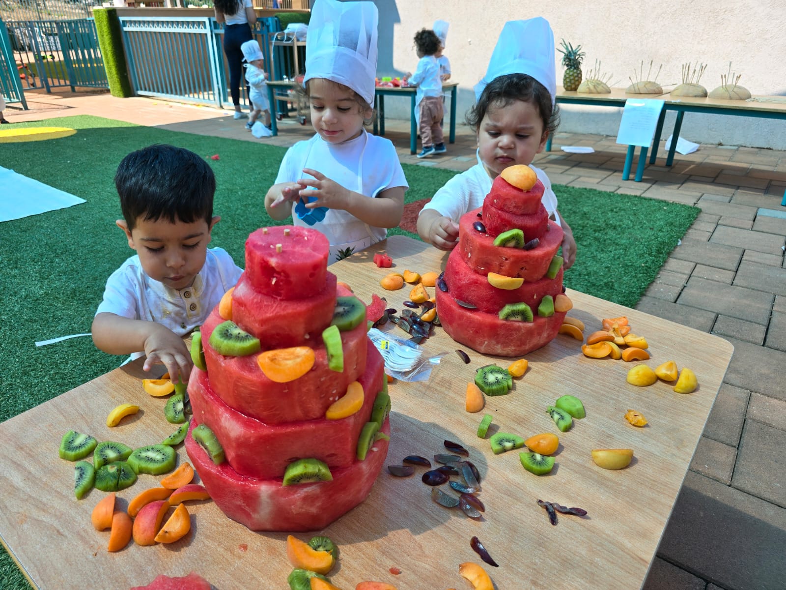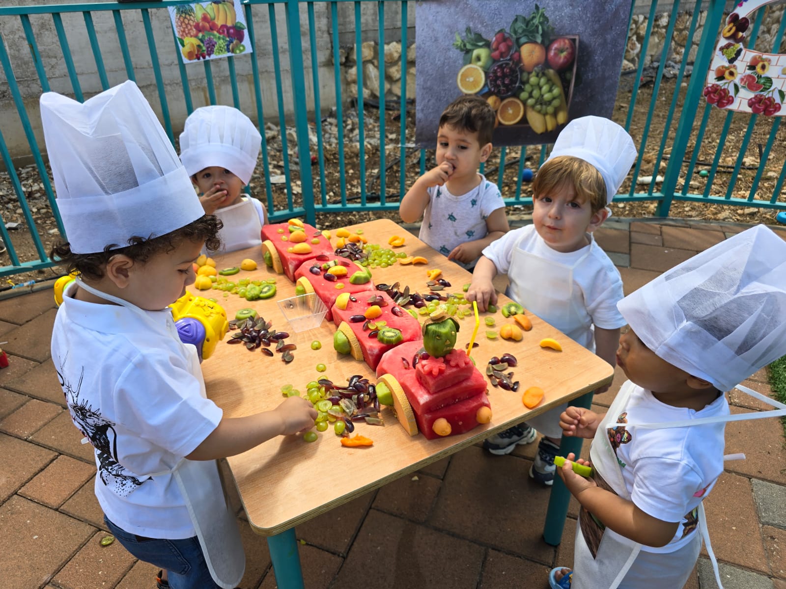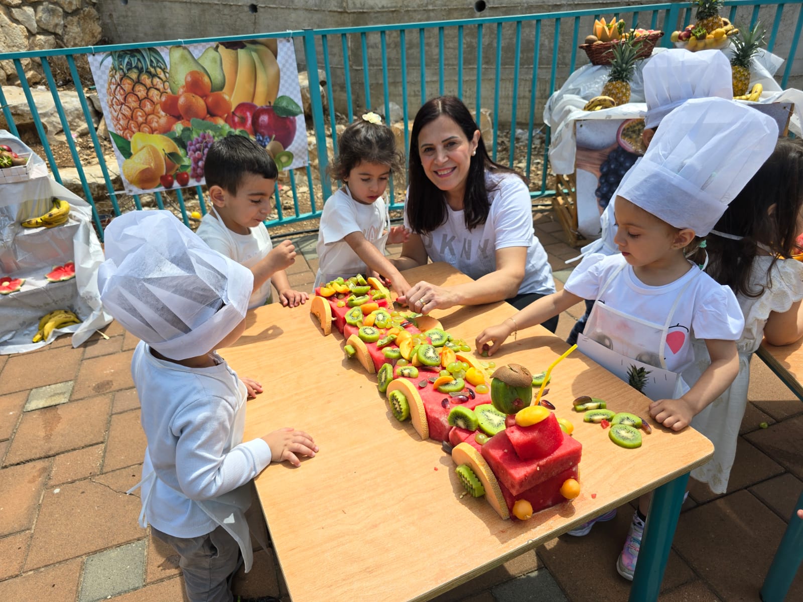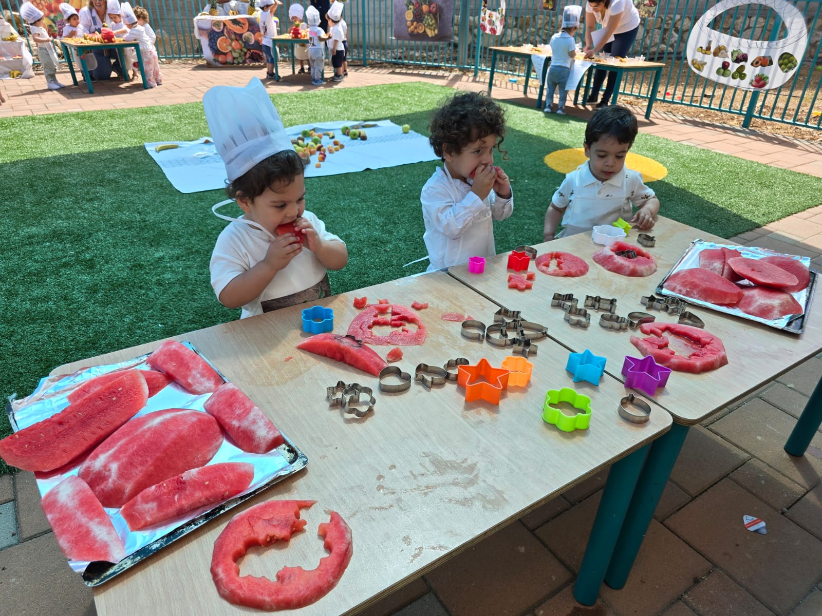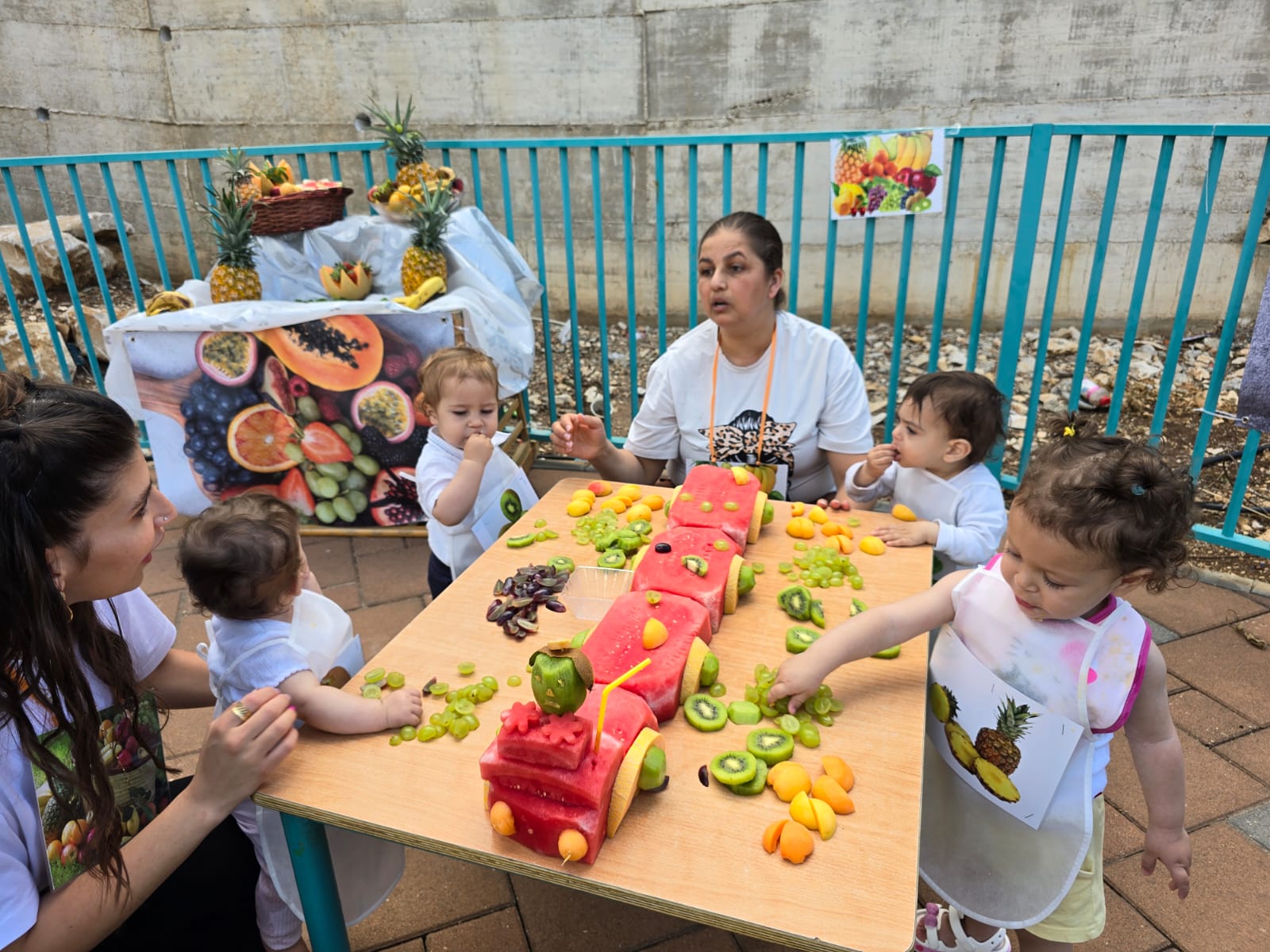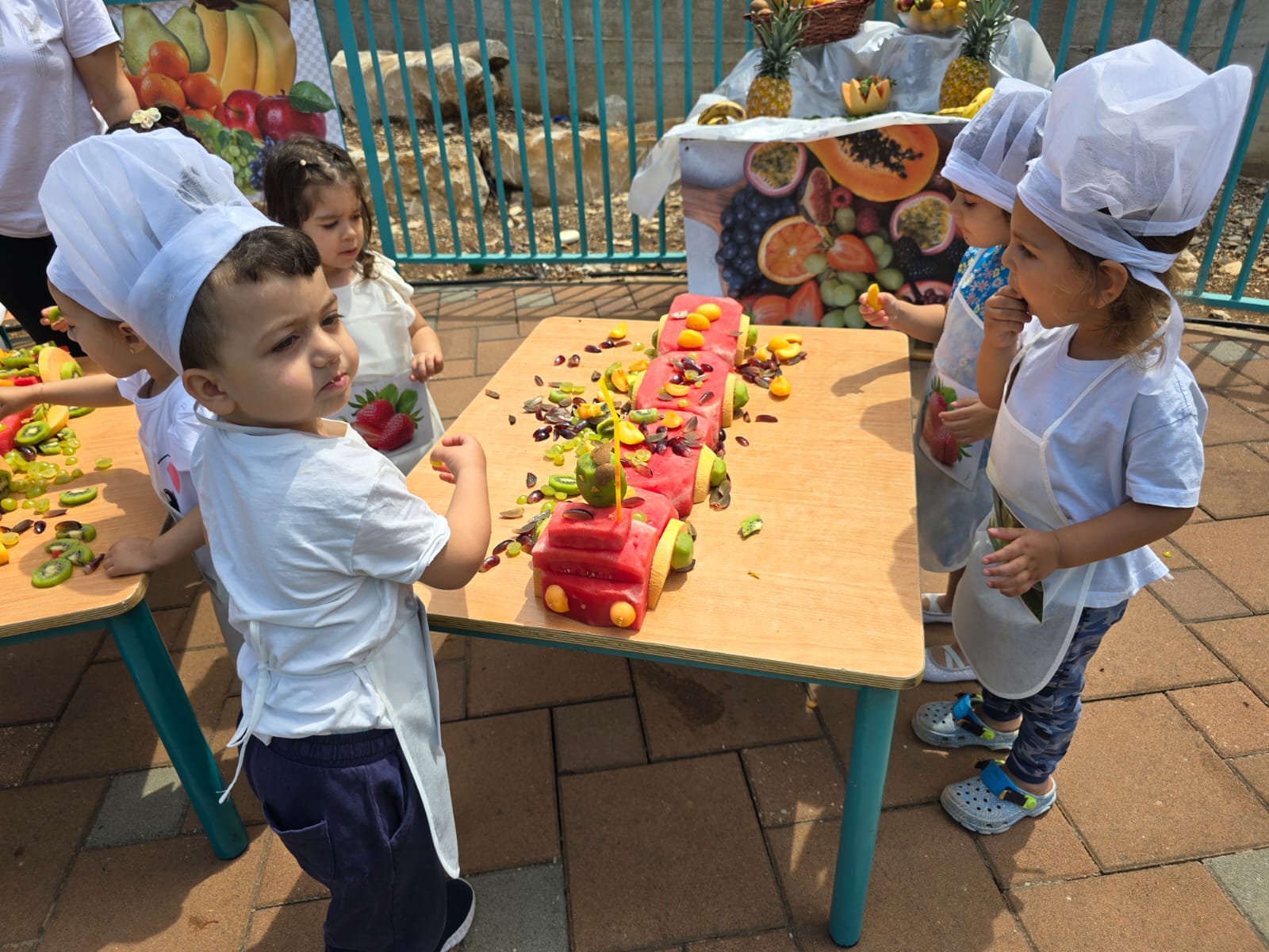 اهلا- صور وتقرير ادارة الحضانة احتفلت حضانه الشمس التابعه للمركز الجماهيري باداره عفاف شاهين وبمشاركه المربيات بيوم الطفل العالمي بمهرجان الفواكه الصحي إذ افتتح المهرجان بمحطات عديده منها تزيين كعكه البطيخ بالفواكه المنوعه الكيوي والعنب والتوت وكذلك محطه قطار البطيخ زيينه الاطفال الفواكه المنوعه والمقطعه وكان أيضا محطه تقطيع الفواكه لسلطه الفواكه ومحطه عصير البرتقال وغيرها من محطات منوعه بالفواكه مما رسم الفرحه على وجوه اطفال الحضانه وزادهم باكتساب فوائد ومميزات الفواكه واكتساب مفاهيم منوعه