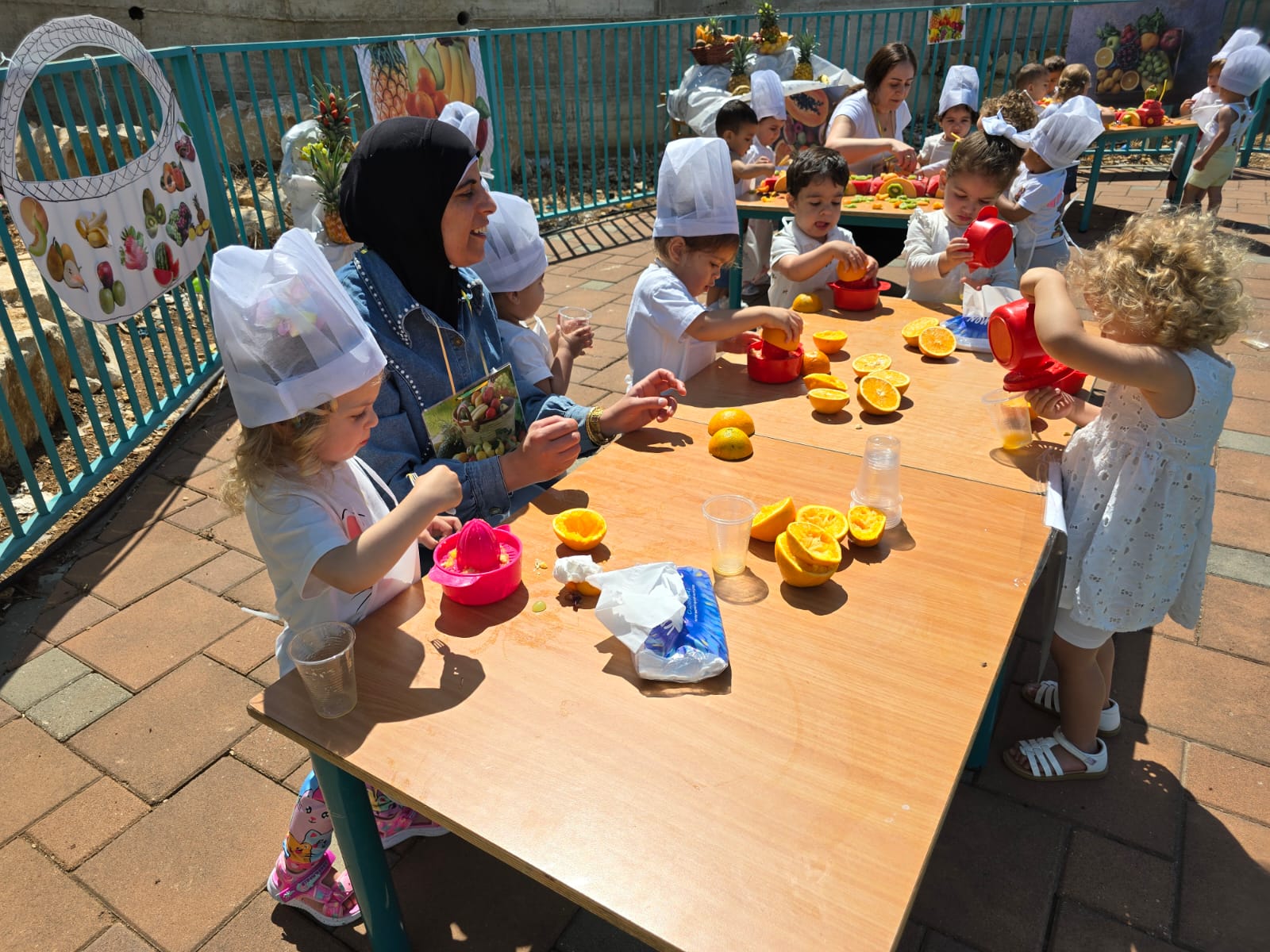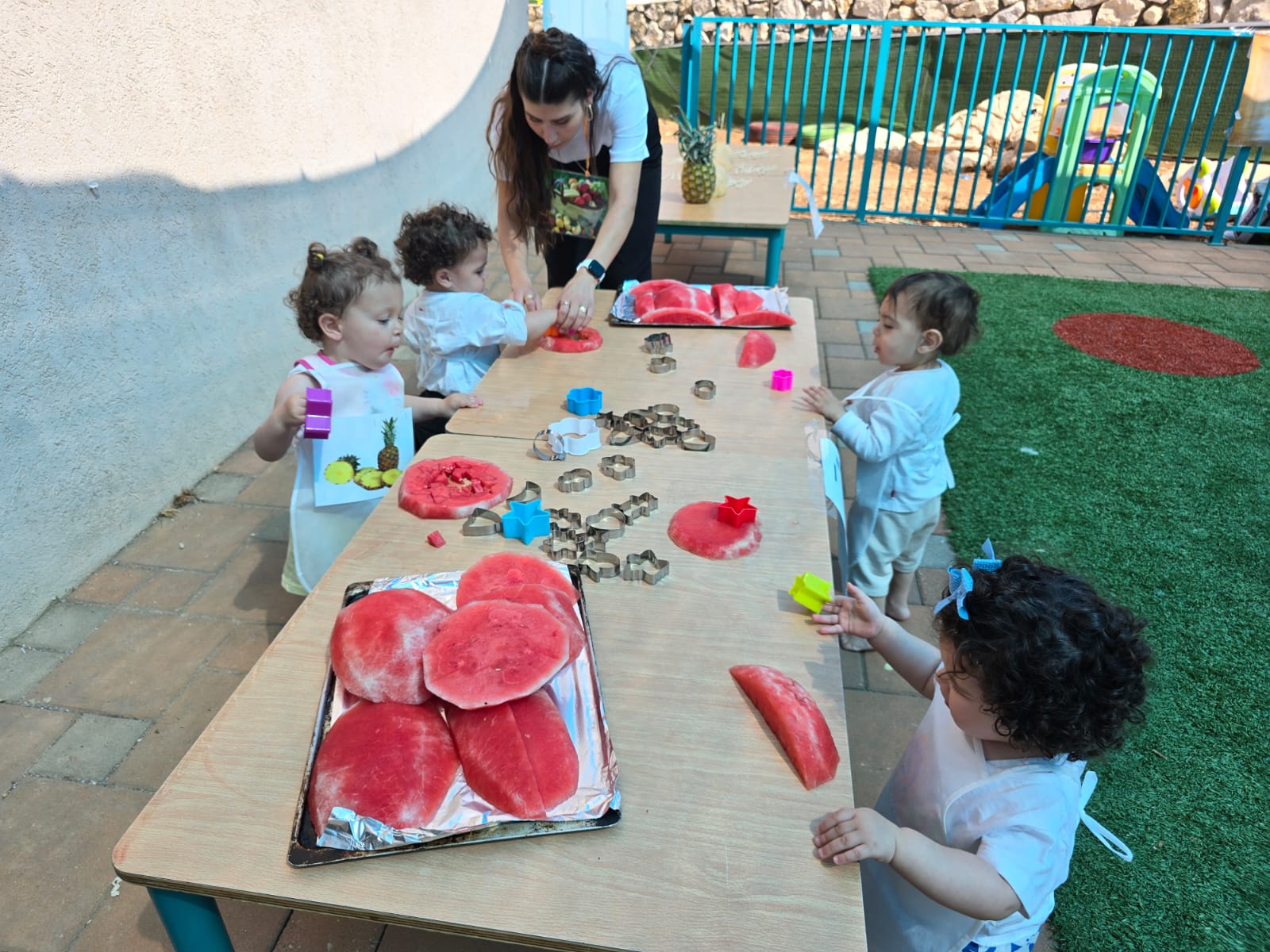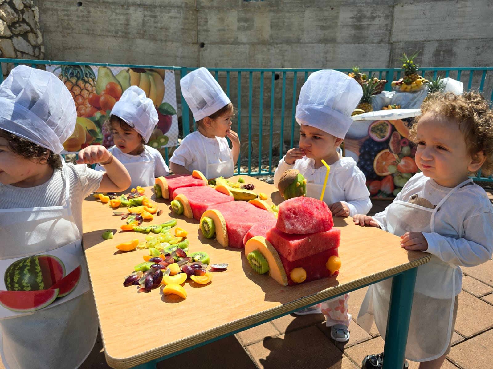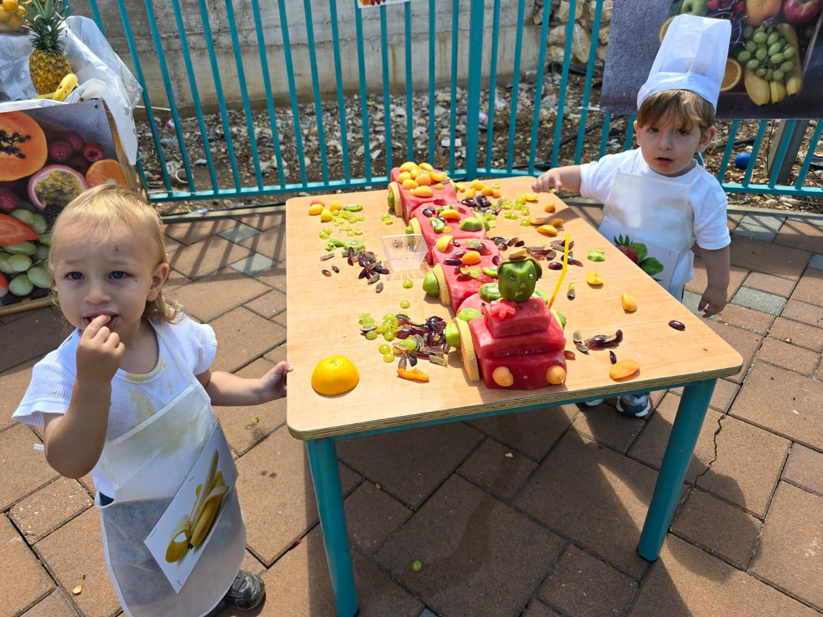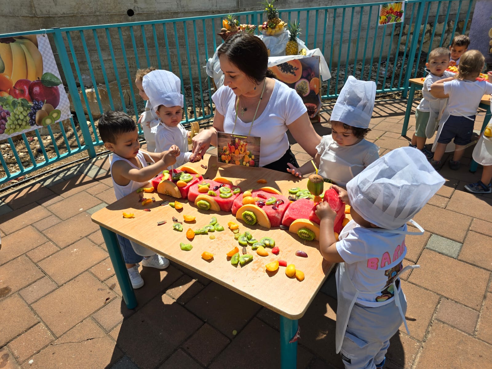 اهلا- صور وتقرير ادارة الحضانة احتفلت حضانه الشمس التابعه للمركز الجماهيري باداره عفاف شاهين وبمشاركه المربيات بيوم الطفل العالمي بمهرجان الفواكه الصحي إذ افتتح المهرجان بمحطات عديده منها تزيين كعكه البطيخ بالفواكه المنوعه الكيوي والعنب والتوت وكذلك محطه قطار البطيخ زيينه الاطفال الفواكه المنوعه والمقطعه وكان أيضا محطه تقطيع الفواكه لسلطه الفواكه ومحطه عصير البرتقال وغيرها من محطات منوعه بالفواكه مما رسم الفرحه على وجوه اطفال الحضانه وزادهم باكتساب فوائد ومميزات الفواكه واكتساب مفاهيم منوعه