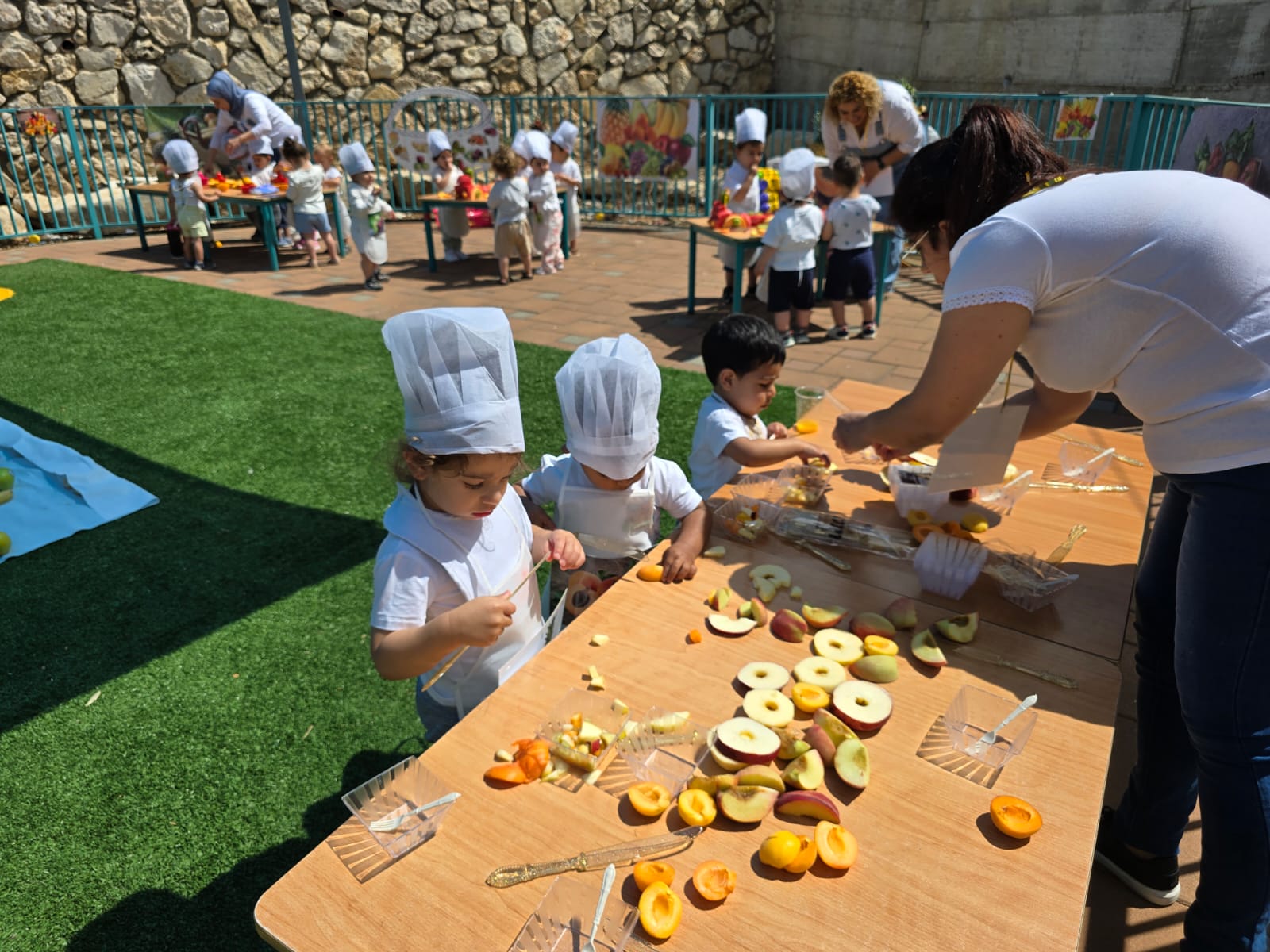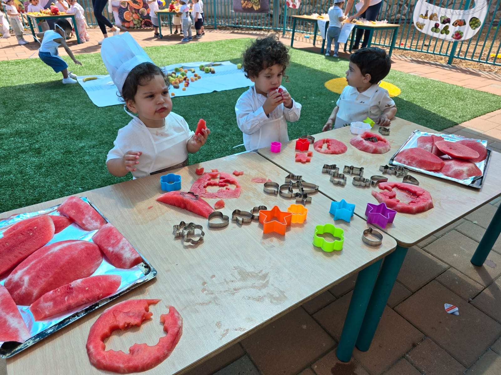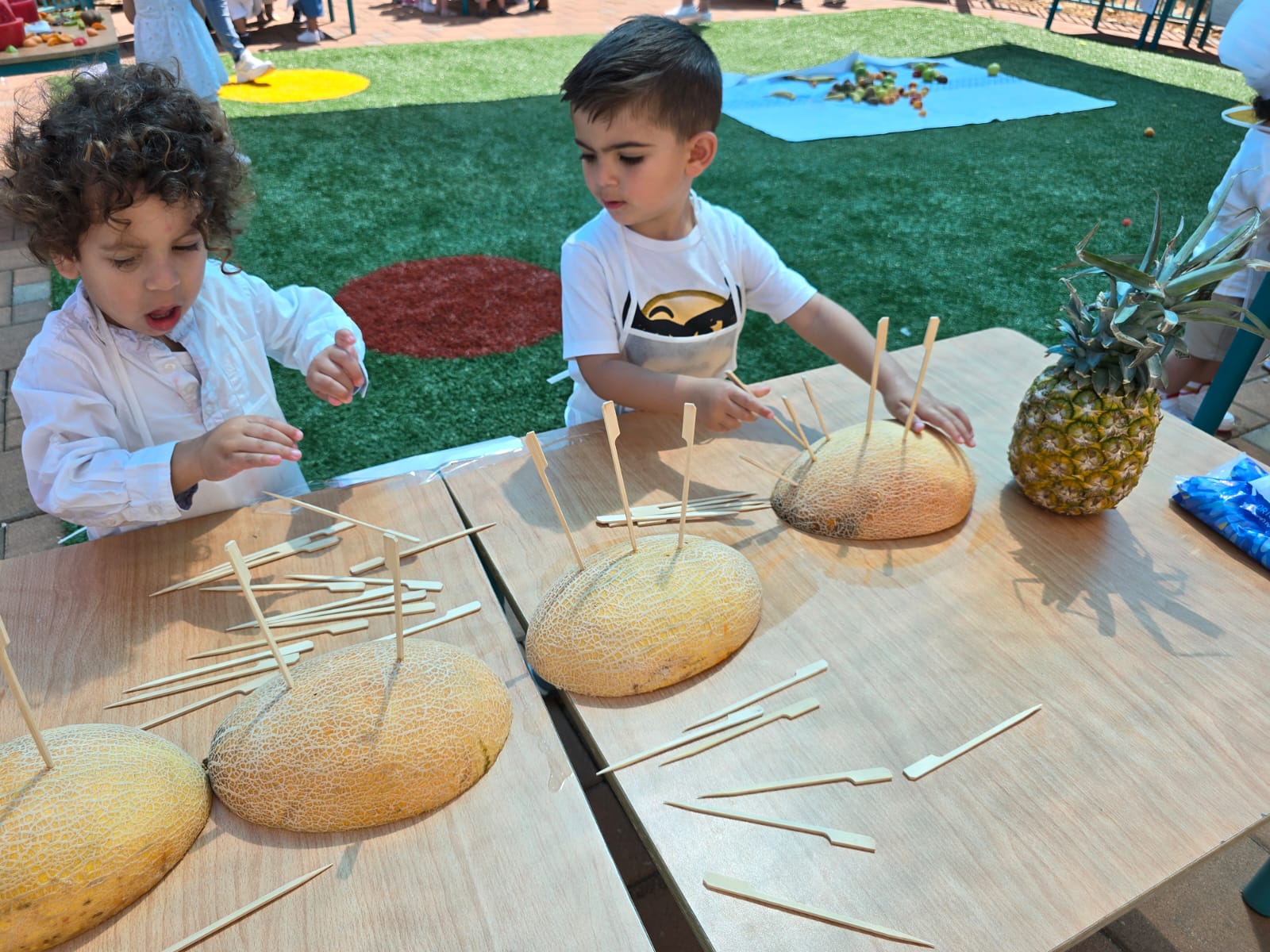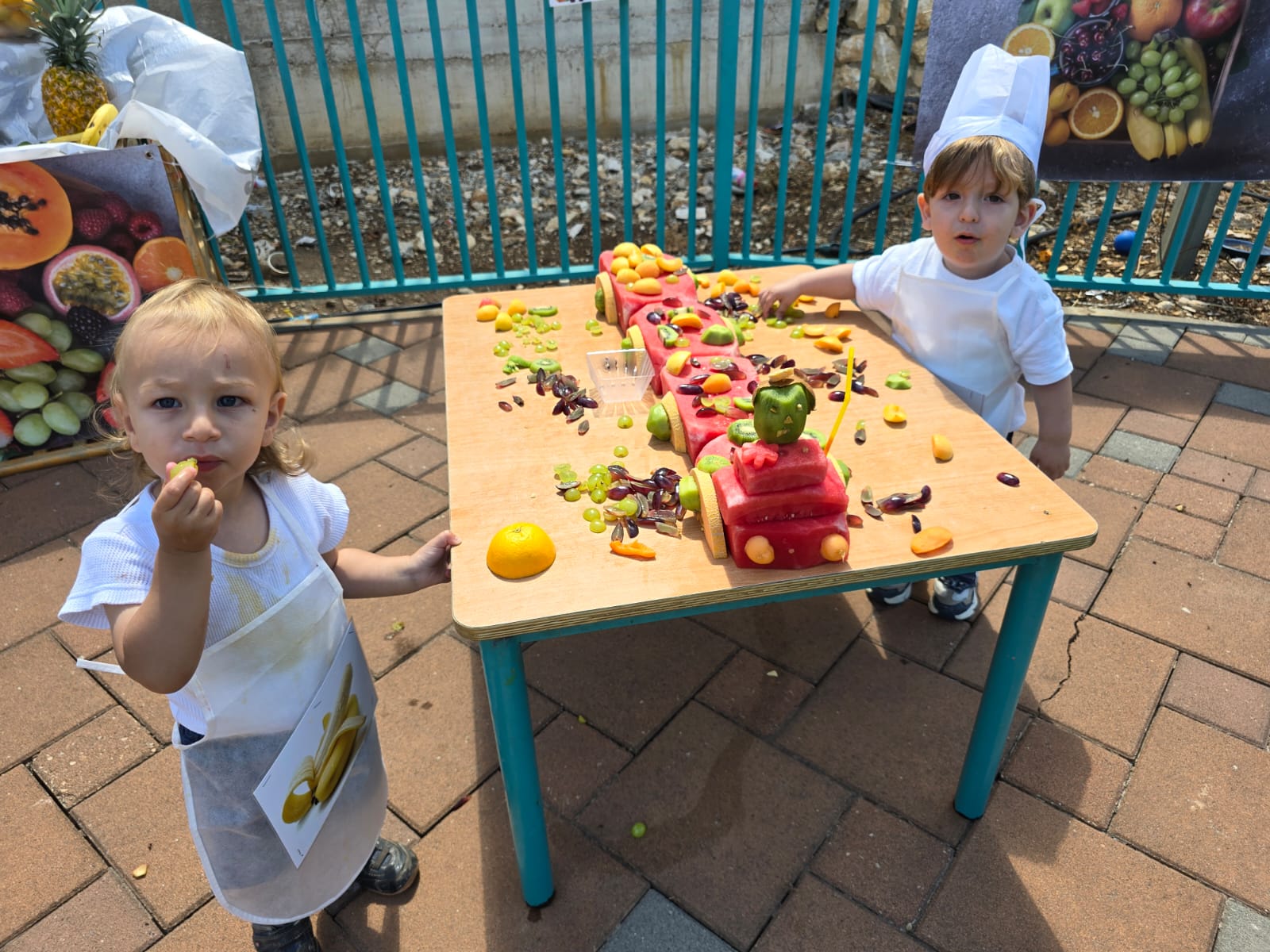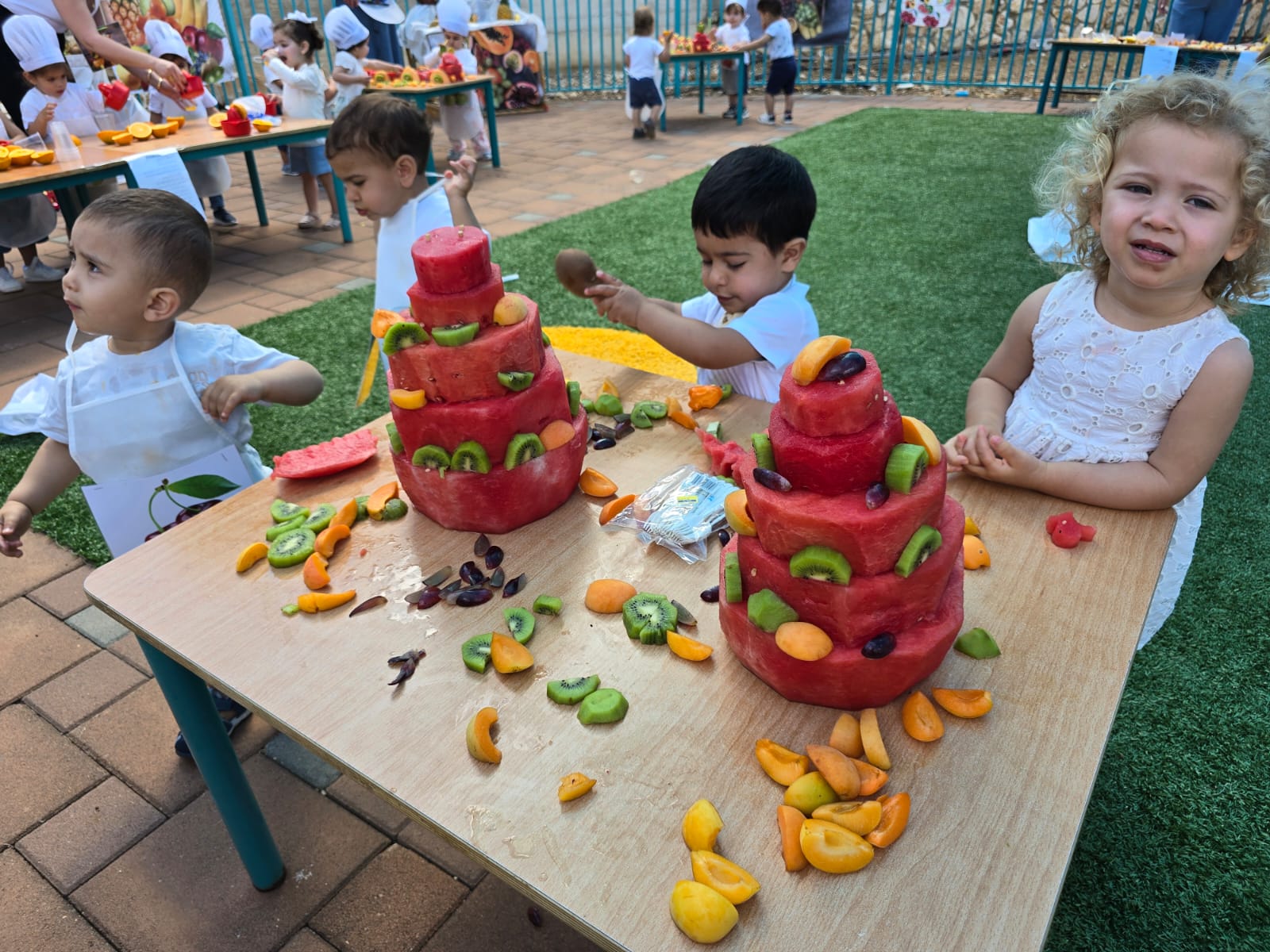 اهلا- صور وتقرير ادارة الحضانة احتفلت حضانه الشمس التابعه للمركز الجماهيري باداره عفاف شاهين وبمشاركه المربيات بيوم الطفل العالمي بمهرجان الفواكه الصحي إذ افتتح المهرجان بمحطات عديده منها تزيين كعكه البطيخ بالفواكه المنوعه الكيوي والعنب والتوت وكذلك محطه قطار البطيخ زيينه الاطفال الفواكه المنوعه والمقطعه وكان أيضا محطه تقطيع الفواكه لسلطه الفواكه ومحطه عصير البرتقال وغيرها من محطات منوعه بالفواكه مما رسم الفرحه على وجوه اطفال الحضانه وزادهم باكتساب فوائد ومميزات الفواكه واكتساب مفاهيم منوعه