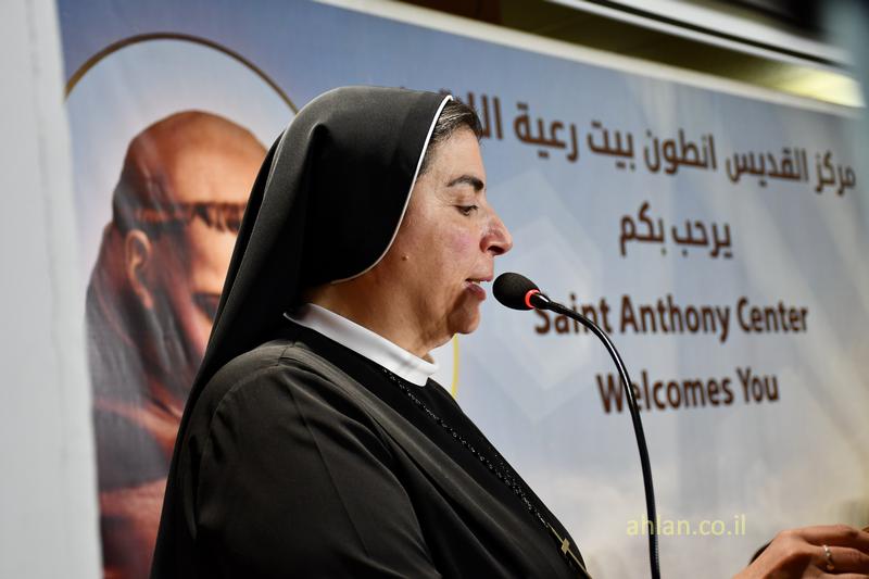 الاب إبراهيم صباغ كاهن رعية اللاتين قدم للحضور صلاة ودعاء، تلاها كلمة من السيد بسام شحتوت رئيس النادي، الذي اطلع الحضور على برامج وفعاليات النادي وشكر جميع من ساهم في إنجاح الحفل وتمنى للراهبات المكرمات المزيد من الخدمة والعطاء للمجتمع.