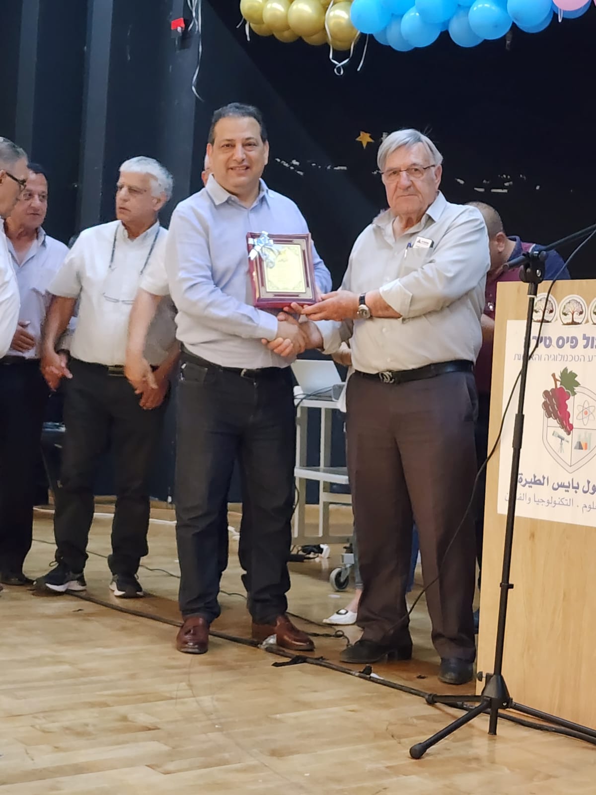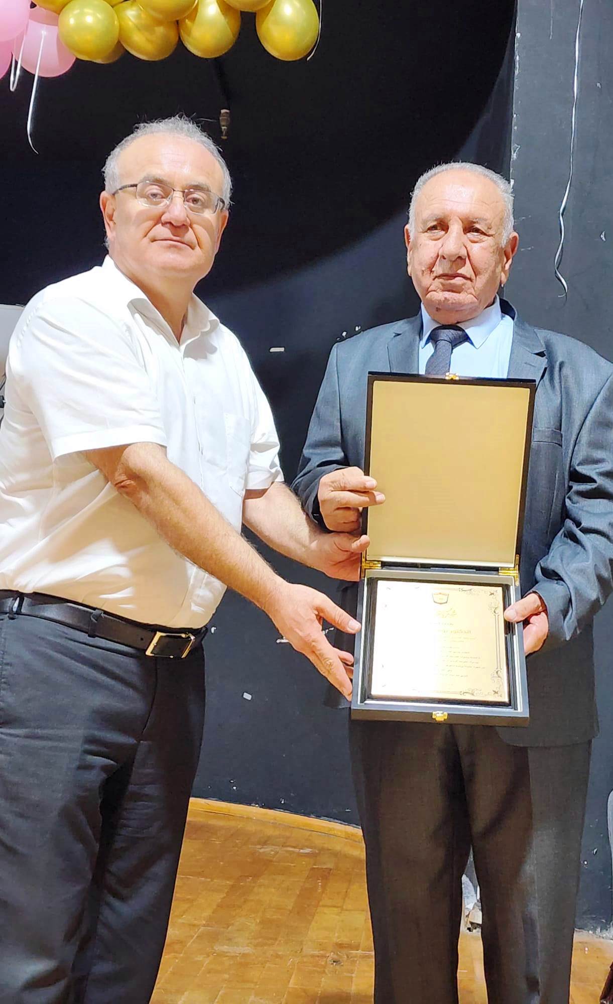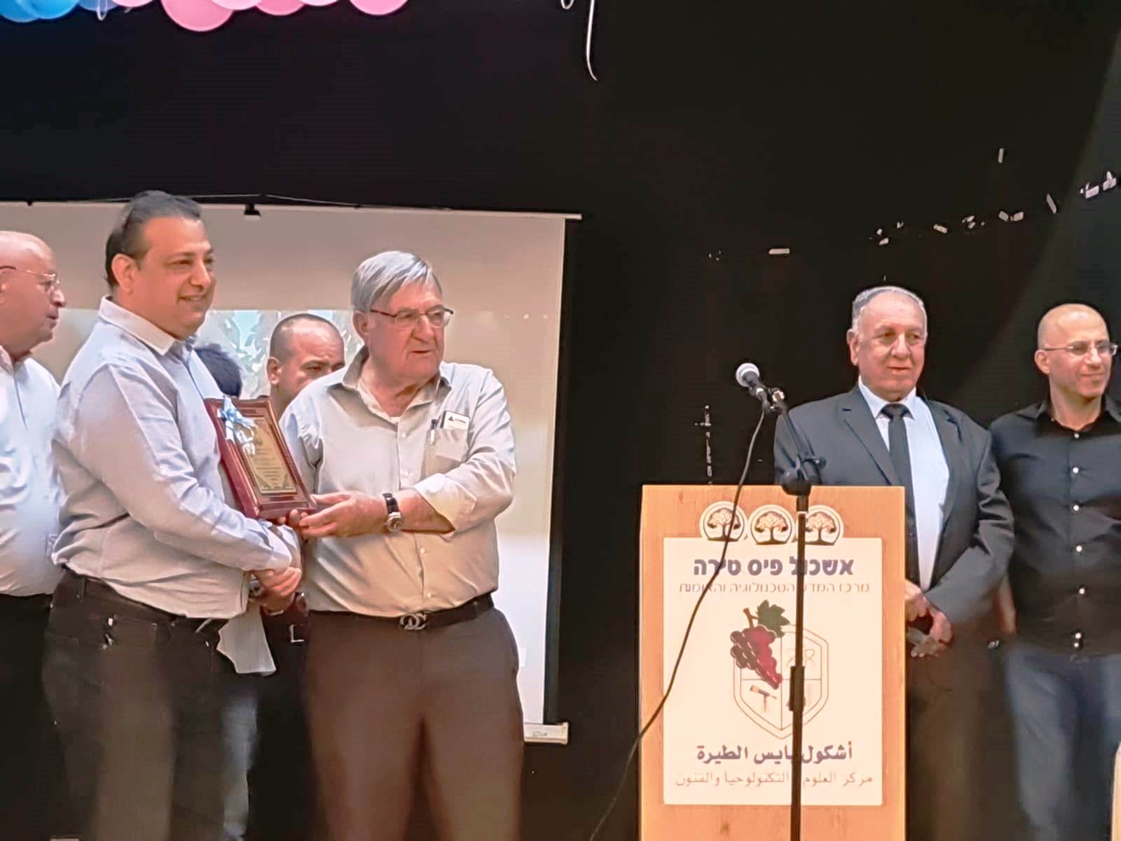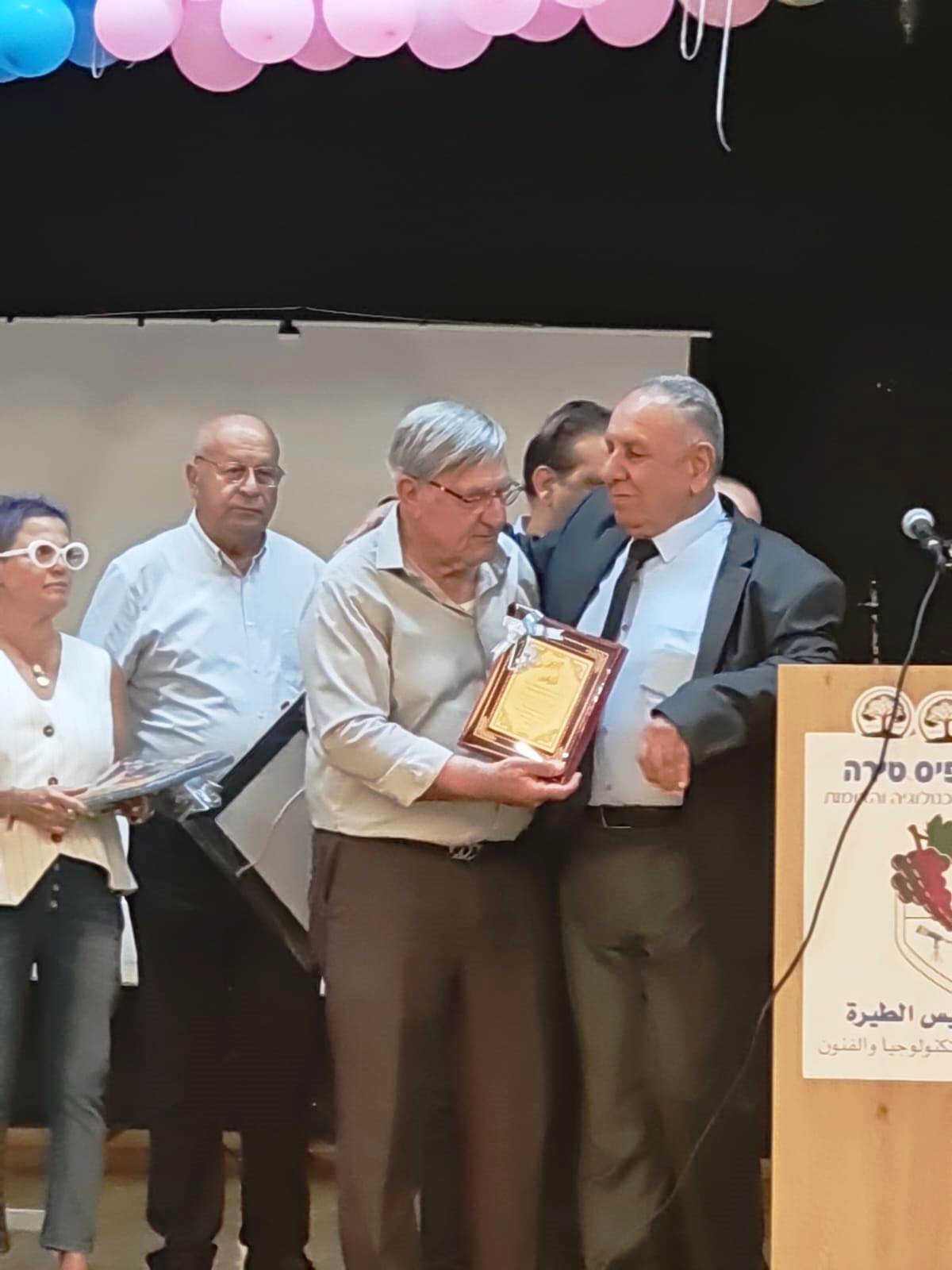 ثمّ جاءت مراسم التّكريم فانهالت على المحتفى به التّكريمات الّتي استهلّها الاتّحاد بتقديم درعي تكريم للمحتفى به ورئيس البلديّة. وقدّم دروع تكريم كل من؛ البلديّة، أسرة أكاديميّة القاسمي، الحزب الشّيوعيّ فرع الطّيرة، كتلة الجبهة في نقابة المعلّمين، الاتّحاد العامّ للفنّانين العرب، ولجنة أولياء أمور الطلّاب.