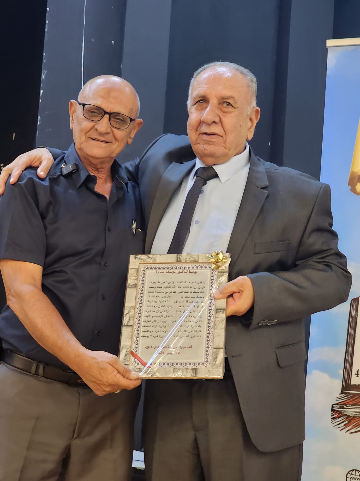 اللّجنة الإعلاميّة- احتفل الاتّحاد العامّ للكتّاب الفلسطينيّين- الكرمل 48، مساء الأربعاء الثّاني عشر من حزيران 2024، بتكريم عضو الاتّحاد الدّكتور يوسف بشارة، بالمشاركة مع بلدّية الطّيرة – المثلّث، وحضور لفيف من أعضاء الاتّحاد من الجليل والشّمال والجوار إلى جانب زملائهم من المثلّث وشخصيّات أدبيّة أخرى والضّيوف.