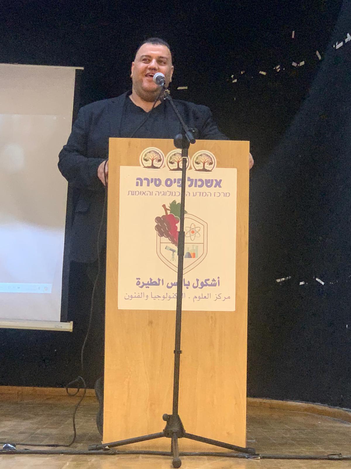 ألقى أصدقاء المحتفى به من أعضاء الاتّحاد الكلمات والقصائد إشادة بالمُكرَّم؛ الشّاعر عبد الرّحيم الشّيخ يوسف قصيدتين، احداهما للمحتفى به والثّانية لمدينة الطّيرة، وألقى أيضا عضو الأمانة زهدي غاوي قصيدة أشاد فيها بالمحتفى به، وأرسل عضو الأمانة الشّاعر عبد القادر عرباسي بعض الأبيات. (الكلمات الكاملة لمن يرغب موجودة على موقع الإتّحاد www.alkabmel48.com)