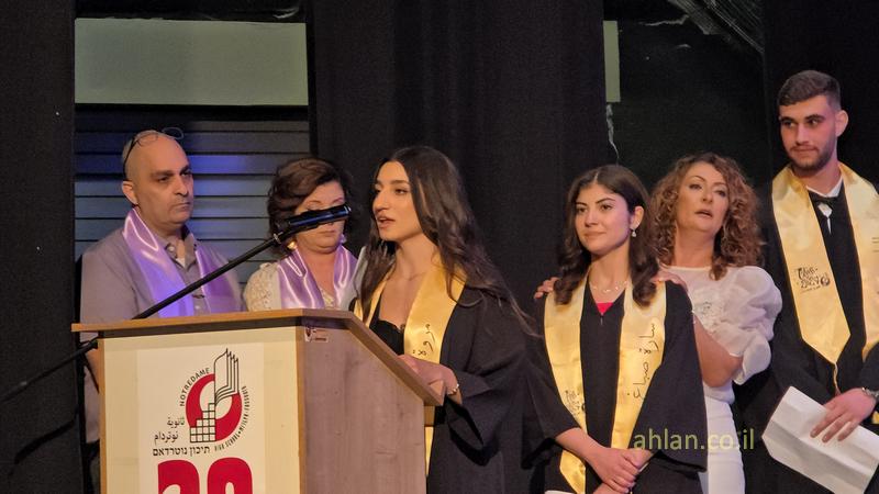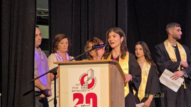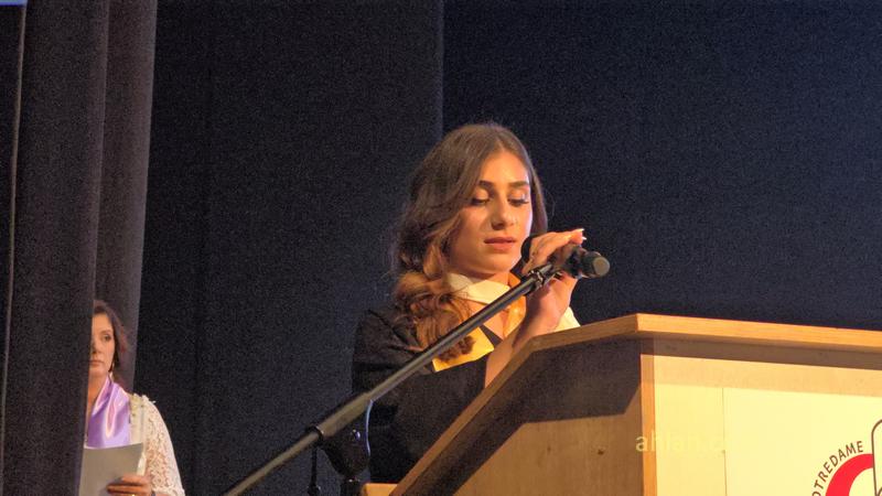 فقرات فنية تخللت الامسية الراقية المميزة مع فقرات من كلمات الطلاب والطالبات والتكريم حيث القيت بعض من كلمات الترحيب من المفتش الشماس جريس منصور والمربي خليل معلوف والمدير القائد لهذه المسيرة المربي اياد قسيس هو بدوره لثنى على المجهود الكبير الذي تقدمه الهيئة التدريسية والموظفات والعاملين في المدرسة من اجل خلق بيئة تعليمية راقية لطلاب وطالبات مدرسة نوتردام الثانوية التي تجمع طلابها من جميع القرى المجاورة واطلع الحضور على الانجازات الكبيرة للمدرسة خاصة انها كانت فترات صعبة محليا وعالميا ظروف فترة مرض الوباء الكورونا ومن ثم الوضع الامني السائد منذ سنة تقريبا ومع كل هذه التحديات الصعبة نجت المدرسة بالوصول مع طلابها الى يوم التخرج والحصول على القسط الاكبر .