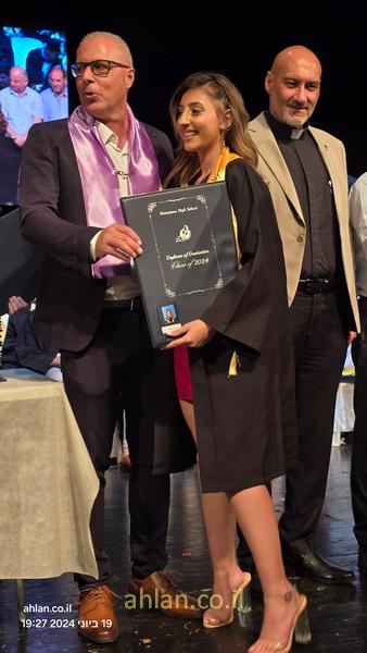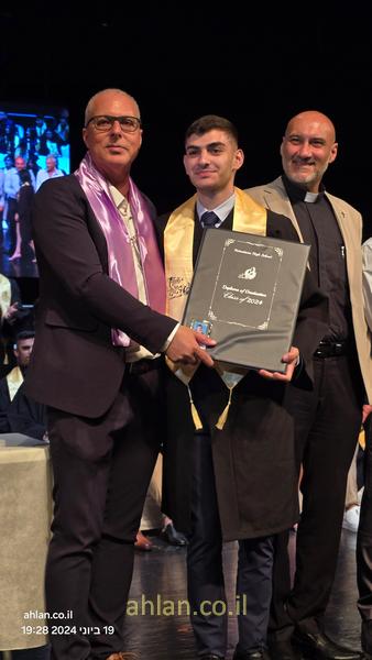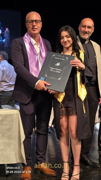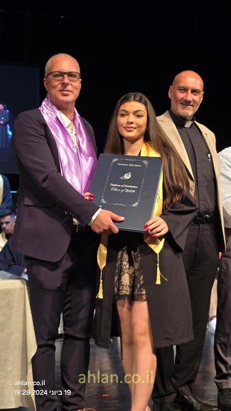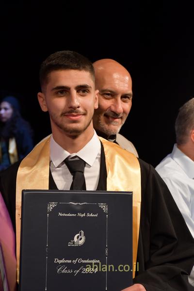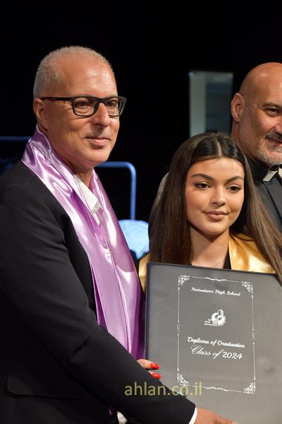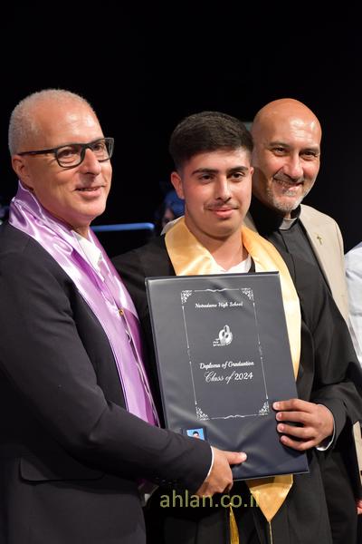 احتفال مهيب بحضور كبير في قاعة قصر الثقافة في مدينة معلوت ترشيحا وباستقبال رائع للخريجين والخريجات مع تصفيق حار من جميع الحضور الكرام الذي تمثل بمفتش المعارف للمدارس الاهلية الشماس جريس منصور والكهنة الاجلاء كاهن الاب الياس عبد النائب العام والاب هادي قسيس كاهن رعية معليا والاب ابراهيم شوفاني مدرس موضوع الدين في المدرسة والاب نديم شقور ، وبمشاركة جمعية نوتردام وممثلة بادارتها مع المهندس حاتم عراف وجميع اعضاء الجمعية ورؤساء المجالس المحلية فسوطة ممثل بالرئيس المحامي ادجار دكور ومجلس معليا ممثل بالرئيس المحامي ايليا عبد .