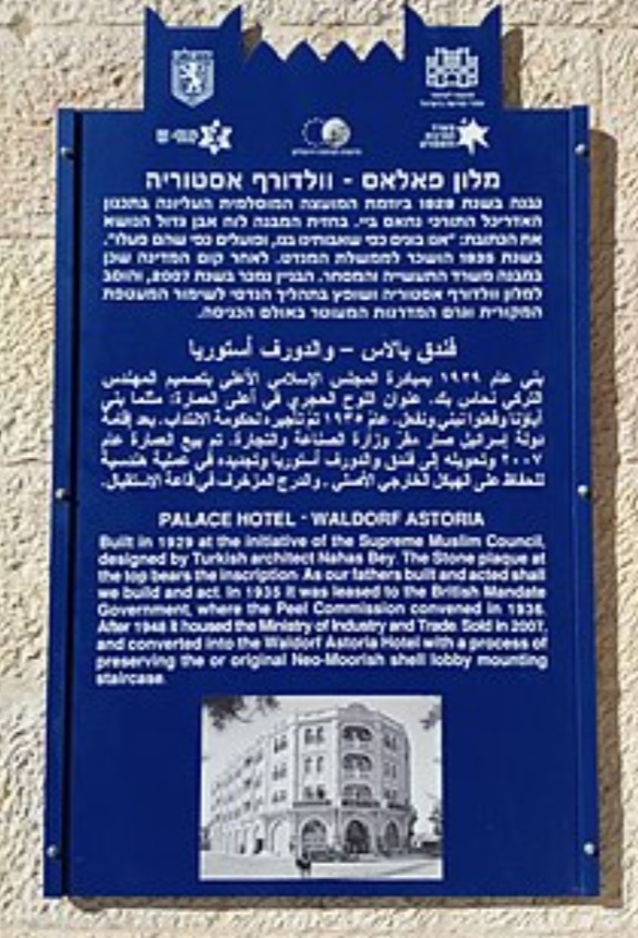 على ارض تابعة للوقف الإسلامي قرب مقبرة مأمن الله، بادرت الهيئة الإسلاميّة العليا، برئاسة الحاج امين الحسيني، إلى بناء فندق فخم، في العام 1928، وكي يتمّ البناء قبل الفندق القريب (فندق الملك داود)، استخدموا ما لا يقلّ عن 500 عامل، ليتمّ البناء خلال 13 شهرًا فقط، فتمّ التدشين في 21/12/1929.