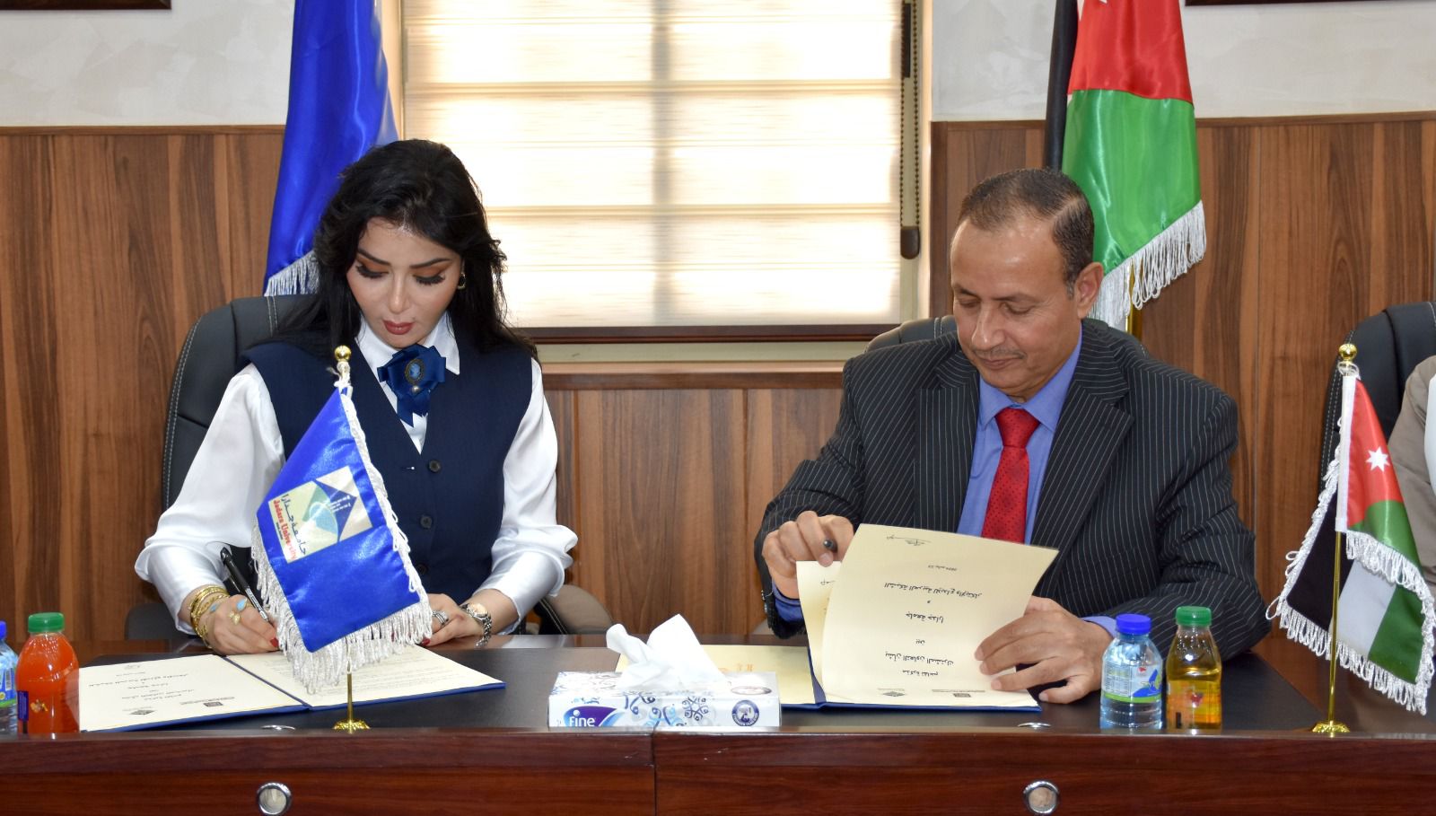 وتخلل حفل التوقيع تكريم وتبادل الدروع بين الطرفين، بحضور نائب رئيس الجامعة الأستاذ الدكتور إيمان بشيتي، وعميد كلية الدراسات العليا وعميد القبول والتسجيل الأستاذ الدكتور خالد العمري، وعميد شؤون الطلبة الأستاذ الدكتور محمد الجداية، وعميد البحث العلمي وعميد كلية العلوم وتكنولوجيا المعلومات الأستاذ الدكتور شوكت الخزاعلة، والمستشار القانوني الدكتور نصر البلعاوي، ومديرة العلاقات الدولية السيدة لما حداد، والسيد محمد بني هاني للدعم التقني، وفريق العلاقات العامة.