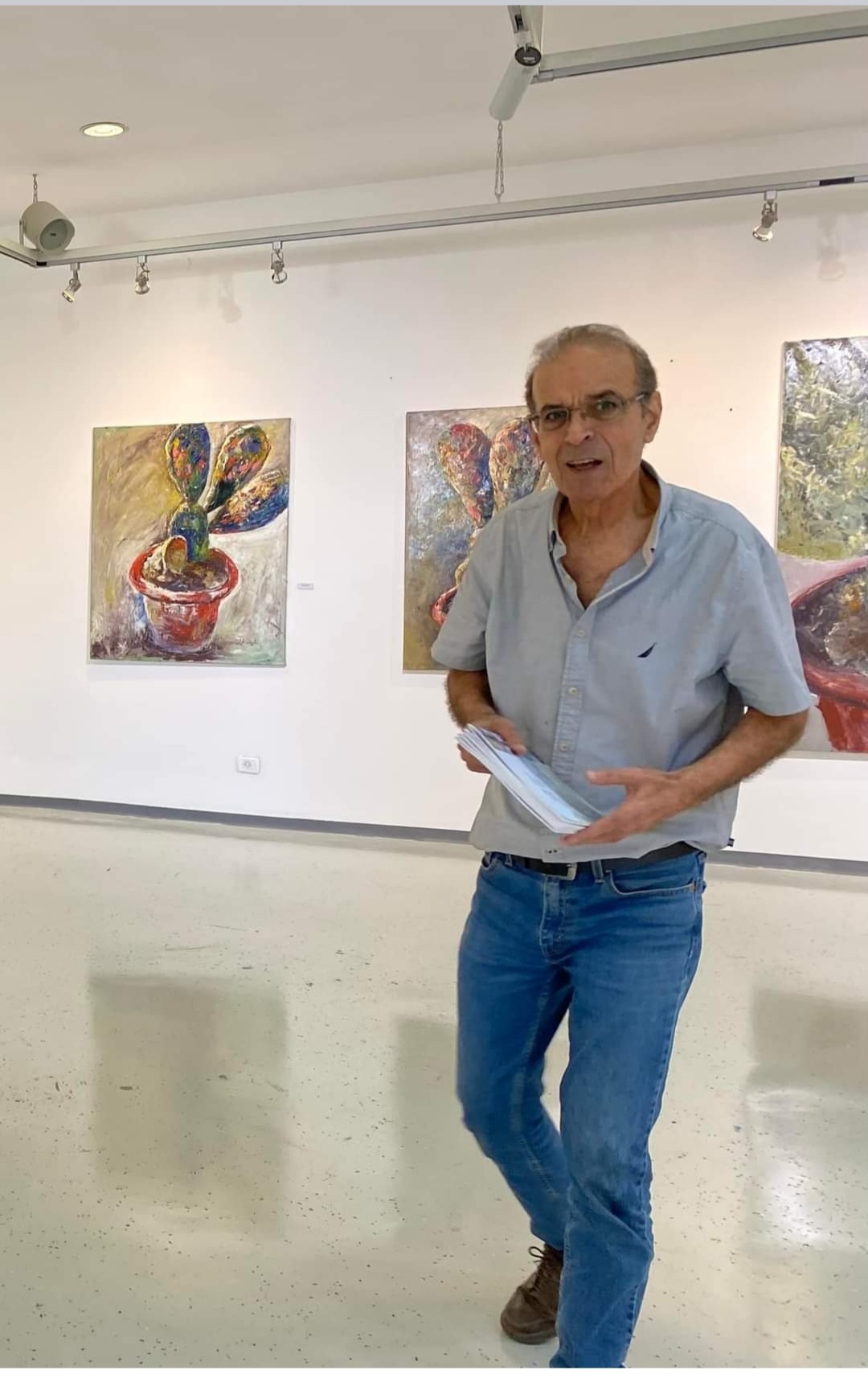 كما كانت مداخلة للدكتور منير توما الذي قام بتحليل بعض لوحات المعرض بشكل شمولي متحدثاً عن رمزية نبتة الصبار وأهميتها البيئية والحياتية بالنسبة للإنسان حيث أخذت حيزاً ومساحة كبيرة من لوحات الفنانة ناريمان .