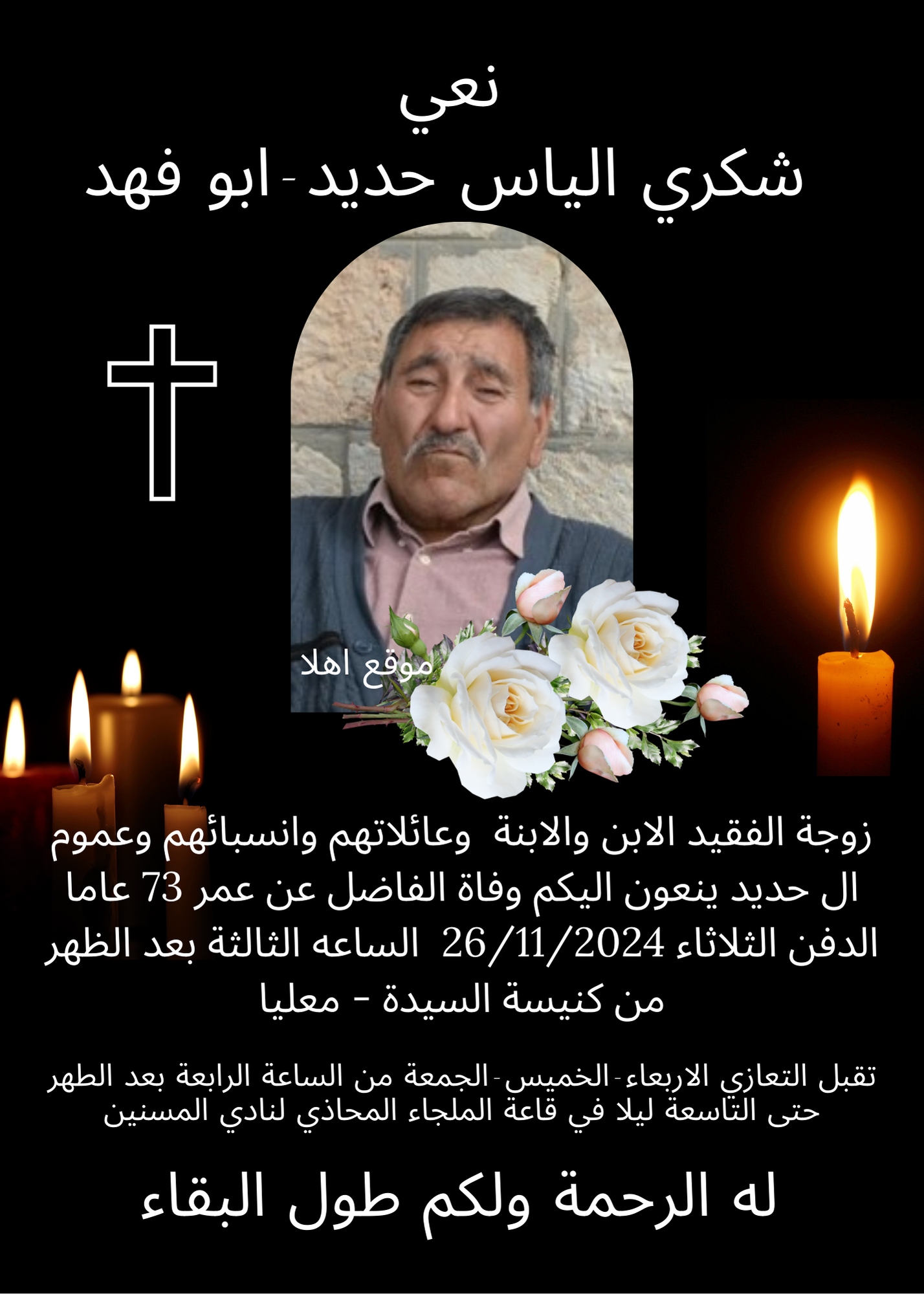 معليا: وفاة الفاضل فرحات اسعد خميسه ابوحنا