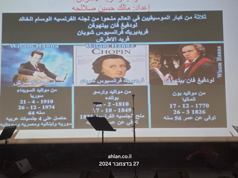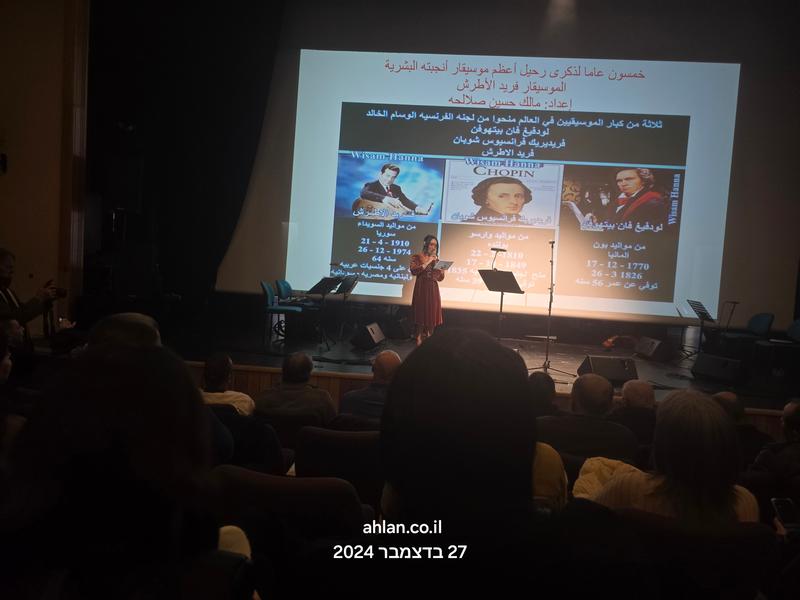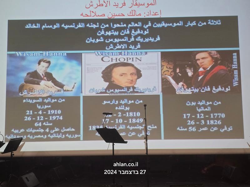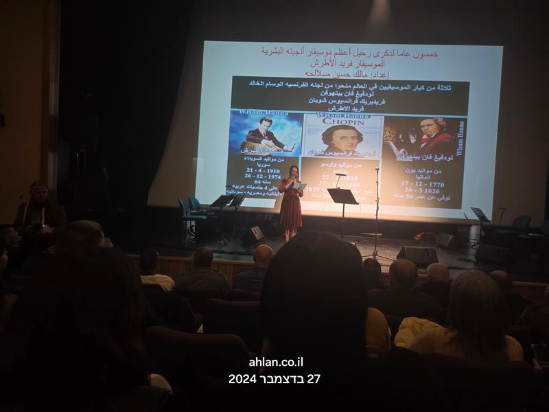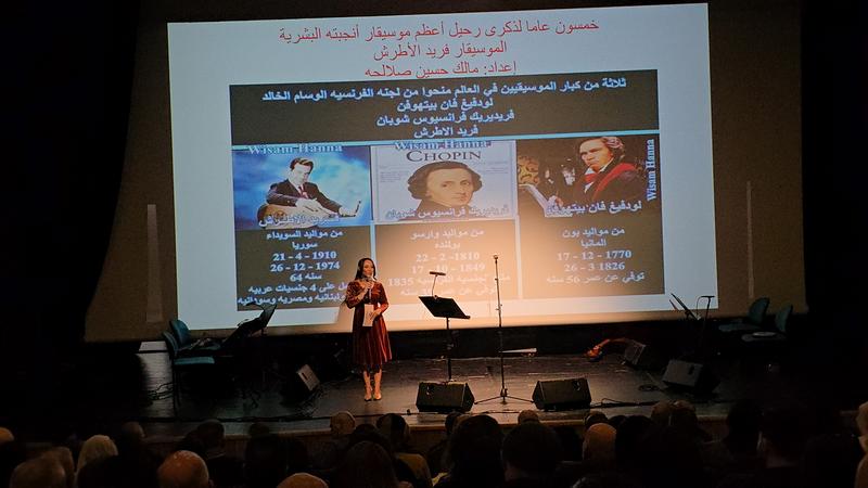 اهلا البقيعة:: أمسية راقية الفنون بمناسبة مرور 50 عاما على رحيل الموسيقار الكبير فريد الأطرش تحت رعاية وزارة الثقافة والرياضة ومجلس البقيعة المحلي، وبدعوة من مؤسسة شروق للإنتاج الفني، شارك مساء امس الجمعة، حشد واسع ونوعي من متذوقي الفنون الجميلة، تزركش بالشخصيات الرسمية والشعبية، شابات وشباب، تقاطروا من مخلف القرى والمدن، مشاركين في احياء الذكرى الخمسين لرحيل الموسيقار الكبير ملك العود فريد الأطرش، احتضنتهم قاعة المركز الجماهيري المحلي في البقيعة، ضمن أمسية فنية نوعية راقية الفنون، حملت اسم اغنية فريد الأطرش “الحياة حلوة”.