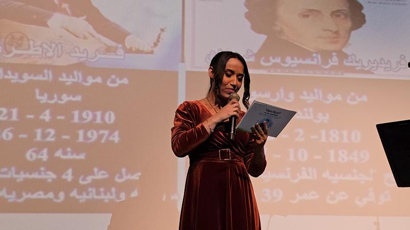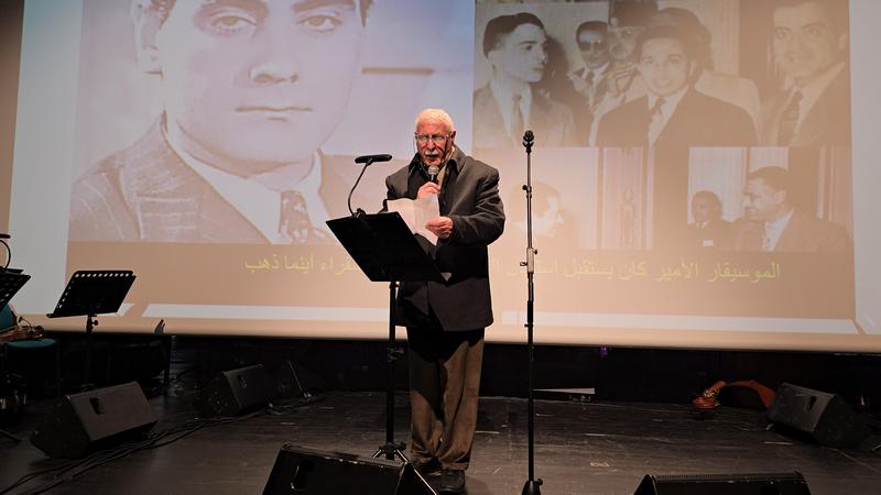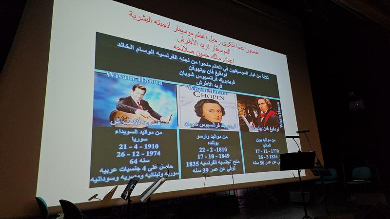 هذا واستهلت الأمسية الفرقة الموسيقية بقيادة المايسترو الفنان سلام بدر (المغار) حيث ابدعوا بتقديم مقطوعة موسيقية لفريد الأطرش، ليتتالى، بعد ذلك، كل من الفنانين/ات: احسان طافش، خالد محمود، ديما قبلان ووائل طافش بتقديم مختارات من أغاني فريد الأطرش، والتي لاقت احسان وتشجيع الحضور وتفاعله معها بالتصفيق في حين وبنهاية الأمسية قاموا بتقديم اغنية جماعية. تجدر الإشارة ان بناء على طلب من الشاعر مالك صلالحة قامت شخصية لبنانية ـ (سنضيف اسمه في حالة حصولنا عليه) ـ ومن خلال شاشة عارضة شرائح بتقديم لمحة عن أغاني وفنون فريد الأطرش.