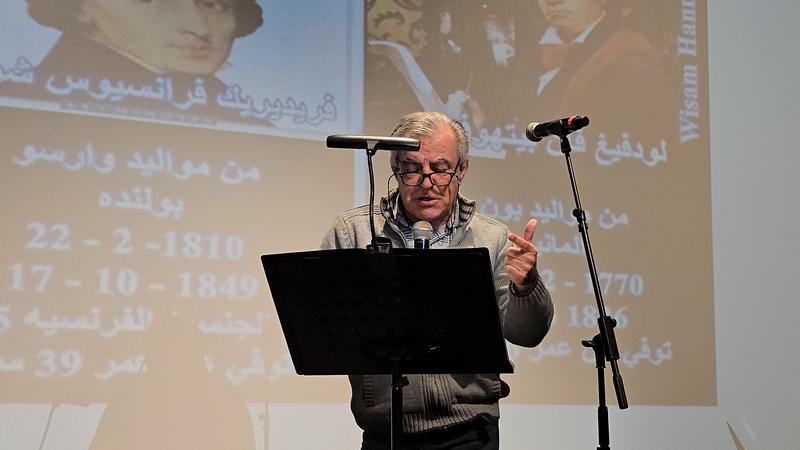 تولت عرافة الأمسية والتقديم لها بتألق، ابنة قرية يركا الفنانة نور أبو دولة، فاسحة المجال لكلمة رئيس المجلس المحلي الأستاذ جميل خير. حيث أشاد بدور جمعية “شروق” لإعلاء شأن الفنون، مؤكدا على استعداد المجلس المحلي لدعم مثل هذه النشاطات الفنية والثقافية. كما كانت كلمة مقضبة لرئيس جمعية الشروق الفنان “أبو حمزة” تخللتها الإشارة الى الصناعة يدوية لعود تيمنا بعود فريد الأطرش قام بها الفنان التشكيلي ابن البقيعة محمود فضول ـ (الخروبي). ثم ألقى كل من الشاعرين صالح فارس (حرفيش) ومالك صلالحة (بيت جن) قصيدة بالمناسبة.