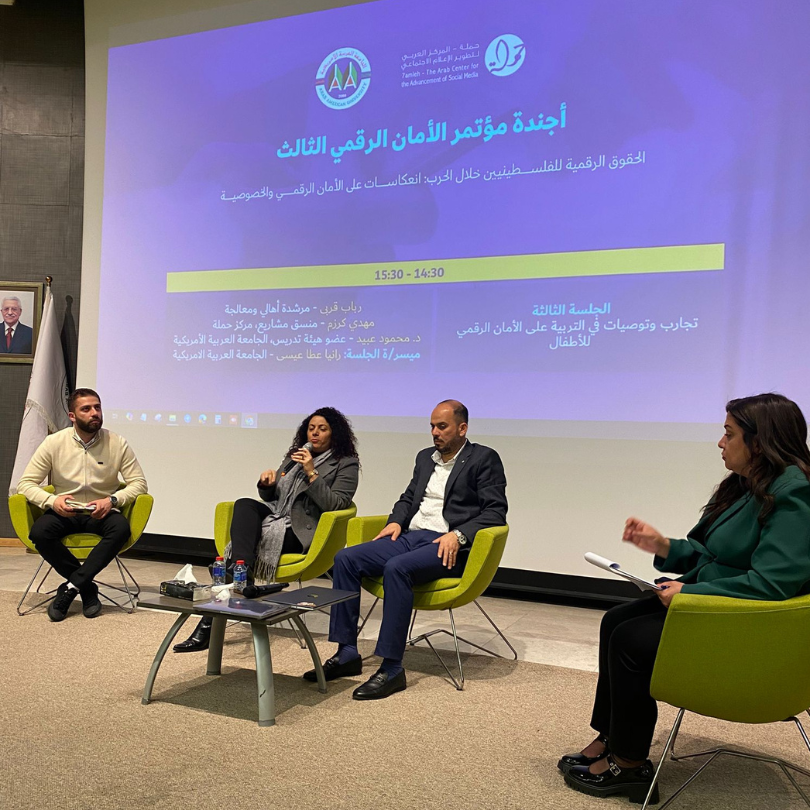 اهلا- زينة ابوشتيح 7 كانون الثاني 2025 - اختتم حملة - المركز العربي لتطوير الإعلام الاجتماعي والجامعة العربية الأمريكية، أمس، فعاليات "مؤتمر الأمان الرقميّ الثالث". عُقد المؤتمر بتنظيم مشترك بين مركز حملة وكلية الإعلام الحديث في الجامعة، وحمل عنوان "الحقوق الرقميّة للفلسطينيين خلال الحرب: انعكاسات على الأمان الرقميّ والخصوصية"، حيث شهد حضور أكثر من 360 مشاركًا من طلاب الجامعات الفلسطينية، وممثلين عن المؤسسات الأهلية والحكومية، والمهتمين بقضايا الأمان الرقميّ. شهد المؤتمر الذي عقد في حرم الجامعة في رام الله، مشاركة 20 متحدثًا من الخبراء والأكاديميين في مجال الإعلام الرقميّ، والذكاء الاصطناعي، وحقوق الإنسان والأمان الرقمي. وتمحورت المداخلات حول عدد من القضايا الرئيسية المتعلقة بالأمان الرقميّ للفلسطينيين في ظل الحرب. وتناولت النقاشات العلاقة بين الشباب الفلسطيني والإنترنت ومدى وعيهم بقضايا الأمان الرقميّ، مسلّطةً الضوء على القيود والرقابة التي تعرضوا لها خلال فترة الحرب. كما تم استعراض الأدوات المستخدمة من قبل الحكومة الإسرائيلية، بما في ذلك الذكاء الاصطناعي، وتأثيراتها على الحقوق الرقميّة للشباب الفلسطيني، إلى جانب الأبعاد القانونية لهذه القضايا. وناقش المتحدثون موضوع العنف الجندري الرقميّ، مستعرضين أسبابه وأشكاله وتأثيراته على الأفراد والمجتمع. كما تم تقديم قصصٍ حقيقيةٍ لتجارب ضحايا العنف الرقميّ، وتوصياتٍ عمليةٍ لشركات التكنولوجيا والجمهور بشأن تعزيز الأمان الرقميّ وحماية الفئات الأكثر عرضة لهذا العنف. وخصص جانب من النقاشات لحماية للأطفال في الفضاء الرقميّ، حيث تم تقديم توصيات للأهالي والمعلمين حول ذلك، مع استعراض تجربة مركز حملة في القدس لتعزيز الوعي بمخاطر العالم الرقميّ وسبل الحماية منه، من خلال ورش العمل والدورات التدريبية. وشهد المؤتمر مداخلات ملهمة تناولت استخدامات الذكاء الاصطناعي في الإعلام الرقميّ تحت ظلال الحرب، وتأثير الذكاء الاصطناعي على الأمان الرقميّ، واستراتيجيات الحماية من التهديدات السيبرانية. كما تم تنظيم ورشة عمل ركزت على إدارة الخصوصية وحماية البيانات الحساسة، وتقنيات أمان الحسابات لمنع الاختراق، واستراتيجيات الوقاية الرقميّة من التهديدات والمراقبة. الجامعة العربية الأمريكية، أول جامعة خاصة في فلسطين، استضافت هذا الحدث البارز في حرمها الثاني في رام الله، مؤكدةً التزامها بدعم المبادرات التي تعزز المعرفة الرقمية. تتميز الجامعة ببرامجها الأكاديمية المتنوعة وشراكاتها مع مؤسسات أكاديمية محلية ودولية، ما يجعلها شريكًا أساسيًا في قضايا محورية كالأمان الرقمي وخدمة المجتمع المدني. أوصى المؤتمر بضرورة الاستمرار في الأنشطة المتعلقة بتجسيد الوعي بمفهوم الأمان الرقمي، واستهداف كافة الفئات المجتمعية التي ترتبط حياتها بالتكنولوجيا الحديثة، ومواصلة الضغط على كافة الجهات من أجل وضع خطط وبرامج متخصصة لنشر الوعي بثقافة الأمان الرقمي. واعتبر مهدي كرزم، منسق المشاريع في مركز حملة ومنسق المؤتمر، مؤتمر الأمان الرقميّ "بالحدث النوعي والهامٌ في سياق واقع الأمان الرقميّ الذي يعيشه الفضاء الافتراضي الفلسطيني بشكل عام، حيث تمّ تسليط الضوء على التحديات والفرص التي تواكب التطورات التقنية الحديثة في هذا المجال". وأضاف: "لقد شهد المؤتمر حضور مجموعة من المتحدثين والخبراء من خلفياتٍ متنوعة، ما أثمر عن تبادلٍ معرفيٍ مُثمرٍ وتفاعُلٍ حيويٍ من الجمهور". واعتبرت عميد كلية الإعلام الحديث الدكتورة هنادي دويكات المؤتمر بمثابة "أولوية الأولويات"، وتحديدا بالنسبة للشباب الفلسطيني ولطلبة الإعلام الرقمي وكافة التخصصات الرقمية في ضوء تزايد التهديدات التي يتعرض لها المستخدمين. وأضافت: "المؤتمر يعكس اهتمام الكلية خاصة والجامعة عامة، بخدمة المجتمع وتقديم معرفة ذات علاقة بممارسة الشباب اليومية، حيث يجسد ذلك رؤية الكلية لذاتها، ورغبتها 