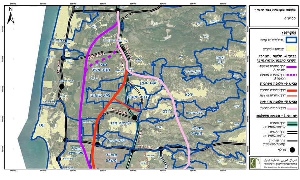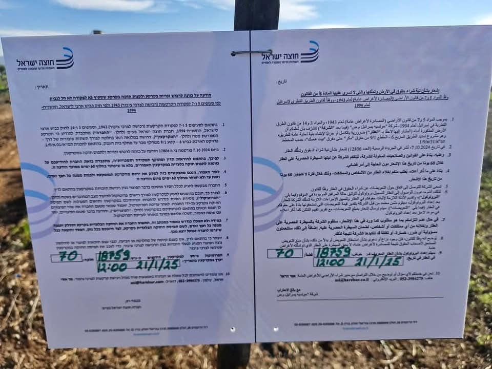 بدأت شركه شارع ٦ بنشر اللافتات للبدئ بأجرائات المصادره ل 1138 دنم من اراضي كفرياسيف، ابو سنان وجديده المكر.