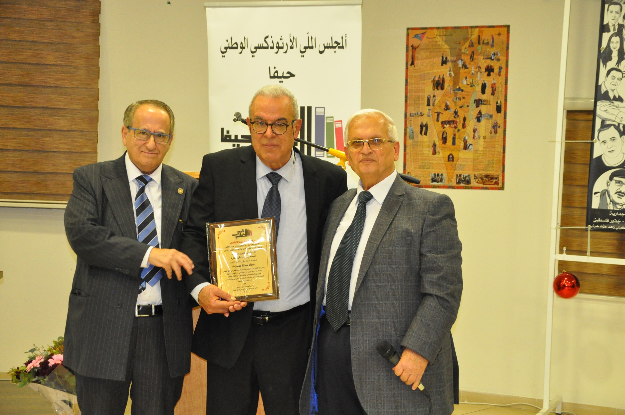 كما قام برفقة الأستاذ نايف خوري والدّكتور حاتم خوري بتقديم درع تكريميّ للأستاذ فؤاد نقّارة، باسم أعضاء جمعيّة نادي حيفا الثّقافيّ.