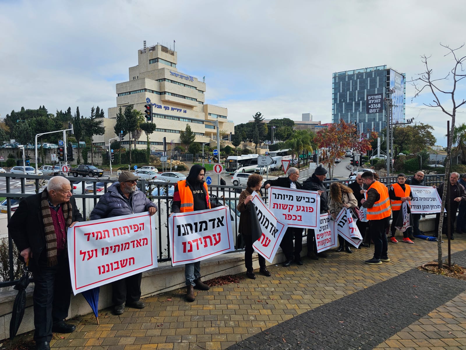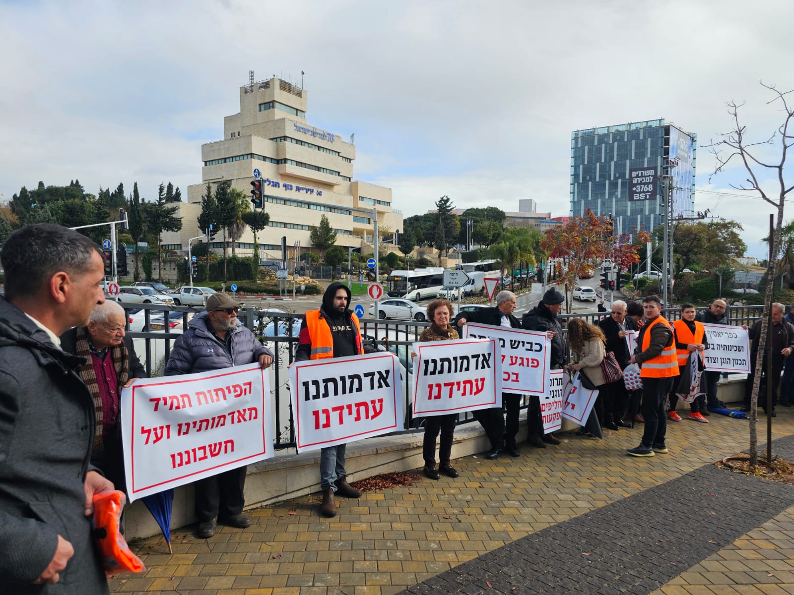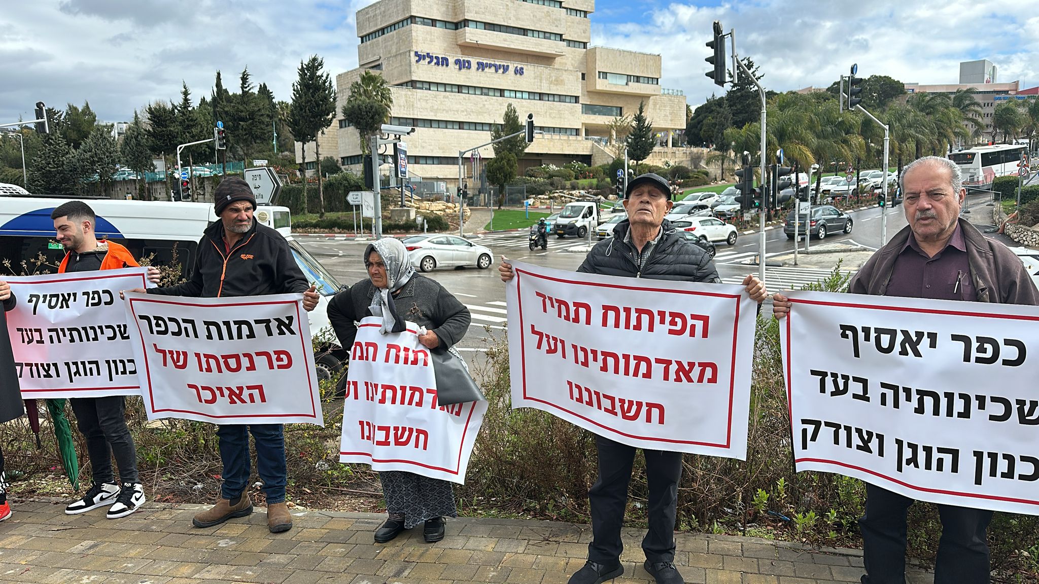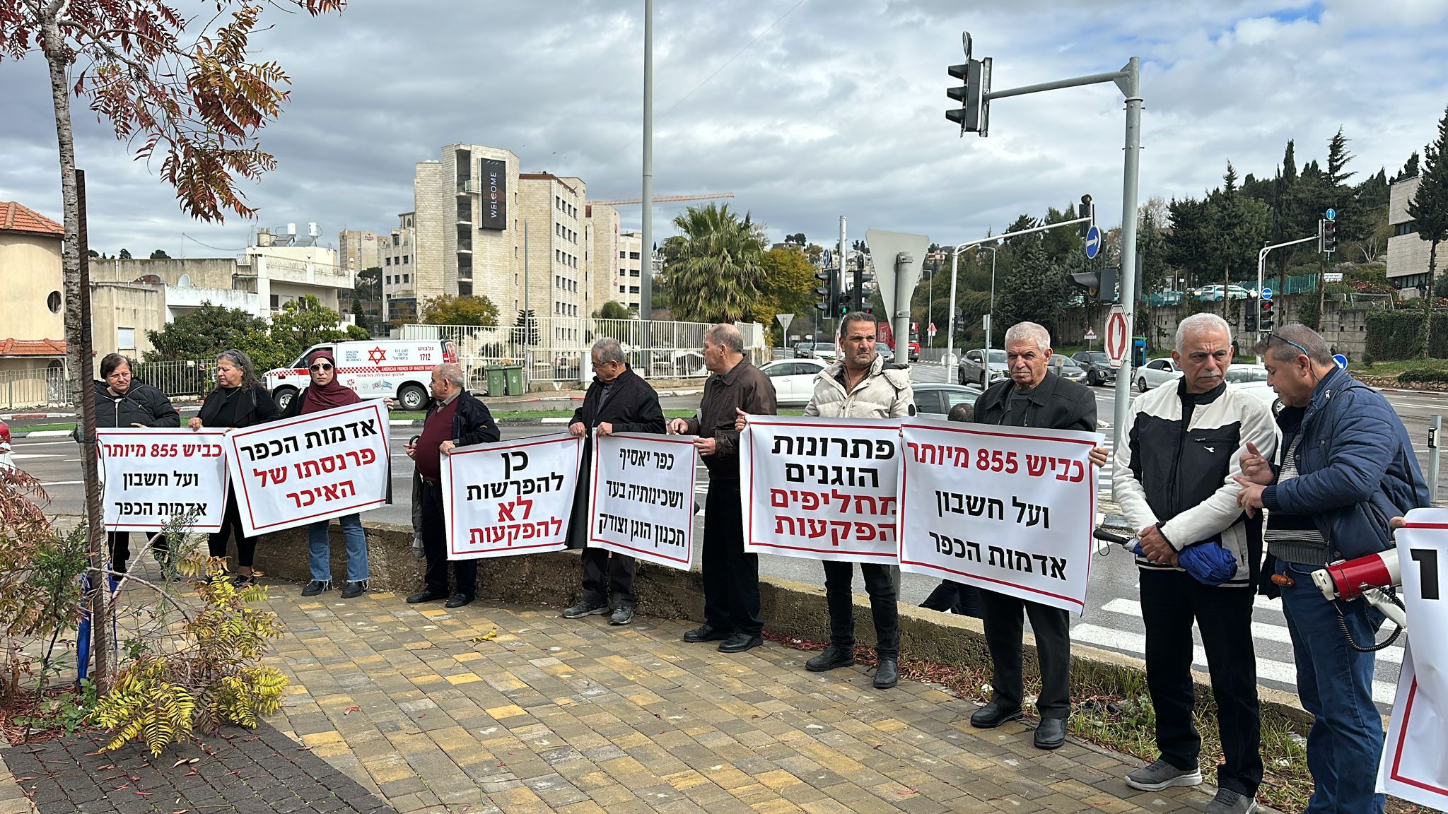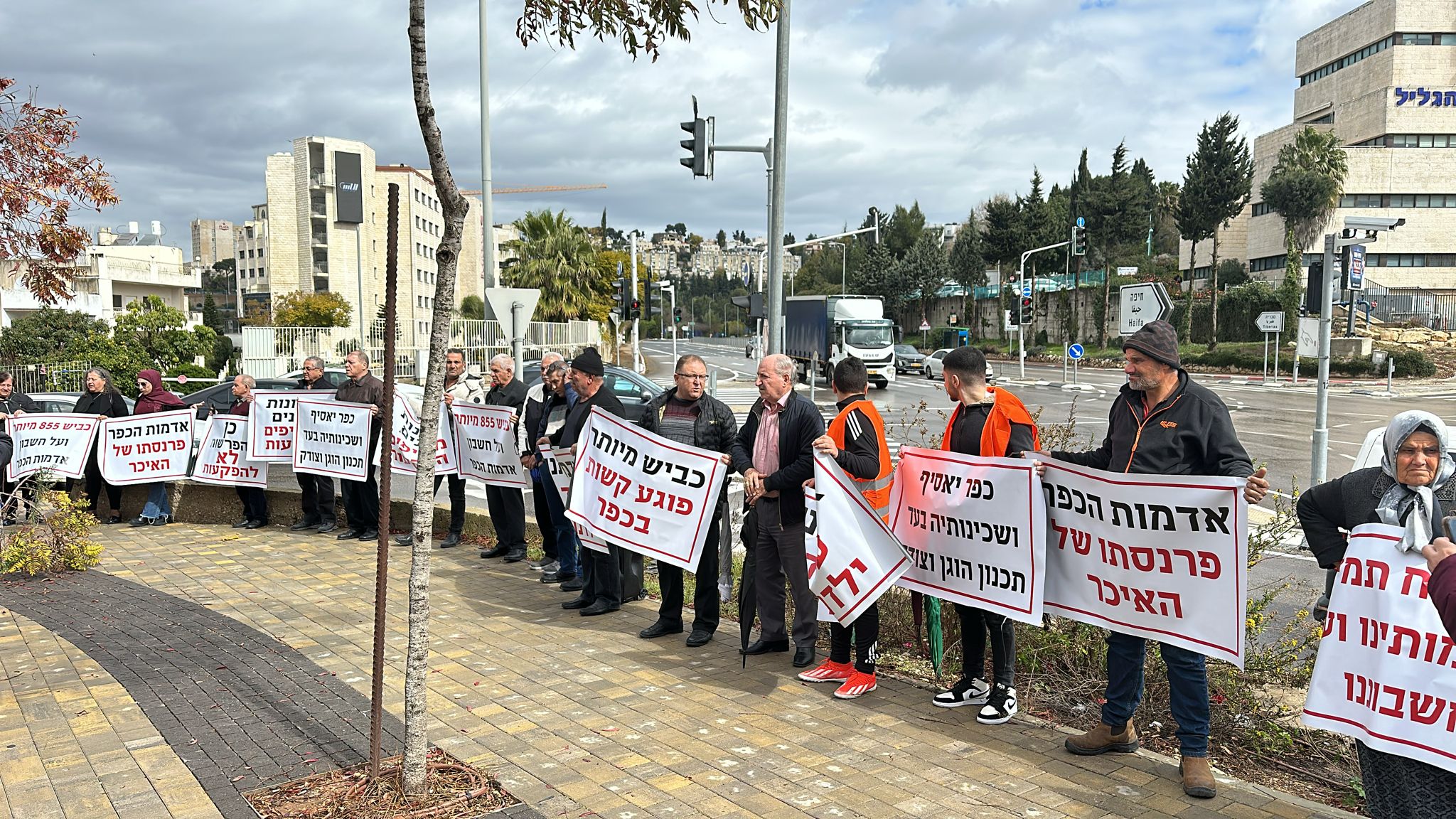 اهلا- تصوير برهوم جريس أهالي القرى كفرياسيف، ابوسنان، يركا ، جولس جديدة المكر يتظاهرون امام مكاتب اللّجنة اللّوائيّة في النّاصرة ضد مخطط شارع 855 الذي يقتطع 1300 دونما وطالبين بالغائة تشكل أراضي دولة إسرائيل التابعة للدولة ما نسبته 93٪ من مجموع أراضي الدولة، ولا تتعدى نسبة الأراضي العربية الخاصة 2.3%، ومع ذلك يتم الاعتداء على الأراضي العربية الخاصة في تجاوز خطير للغاية".