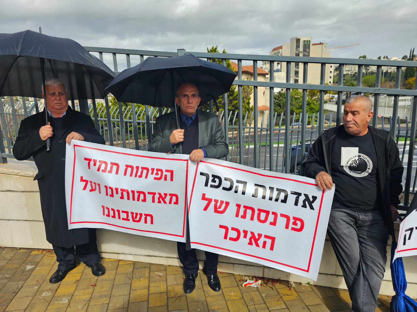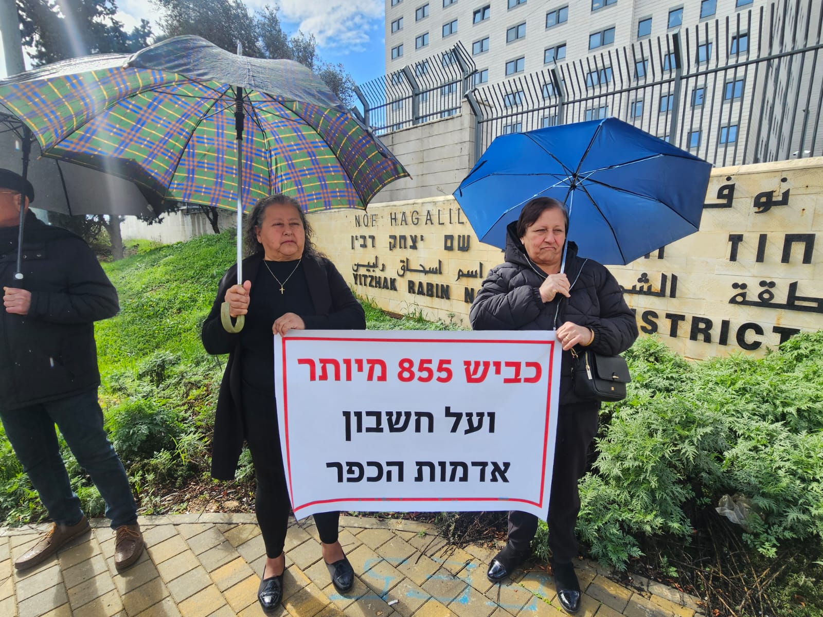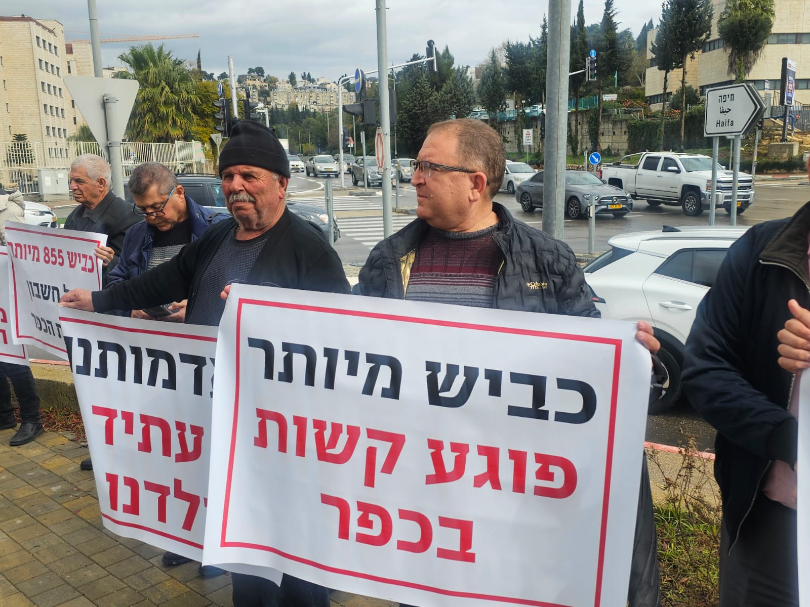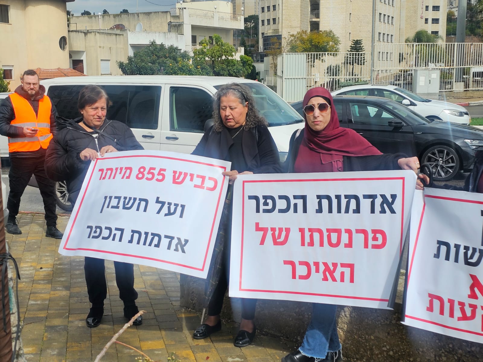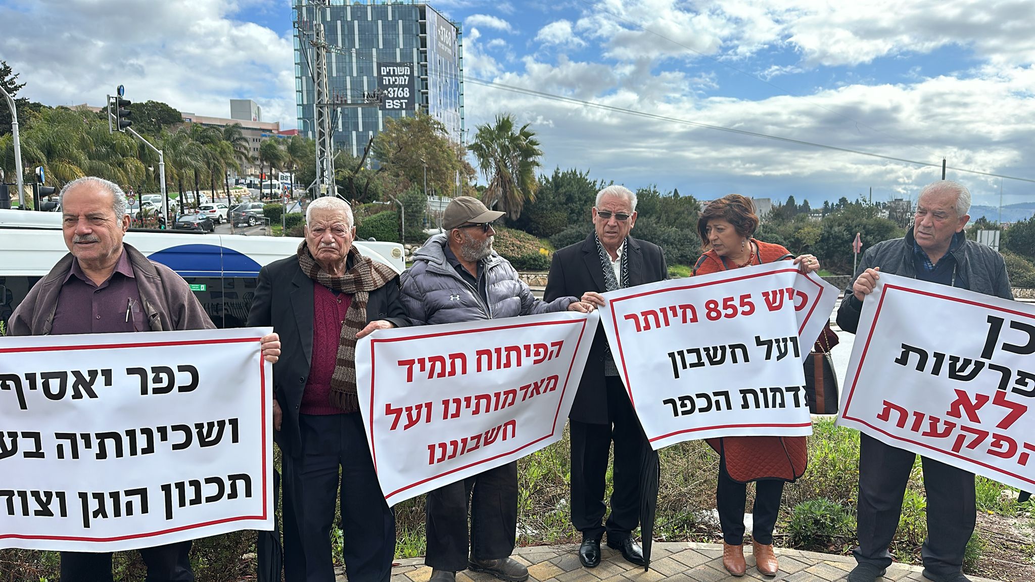 شارك عدد من أصحاب الأراضي المهددة بالمصادرة لصالح شارع ٨٥٥ واستمراريته في السهول التابعة لقرى جديدة - المكر، وكفر ياسيف، وأبو سنان، في وقفة احتجاجية رفعوا بها اللافتات مع تساقط الامطار تندد بهذا المشروع الذي من شأنه ان ينزع دونومات من اراضي القرى المحاذية للشلارع المخطط الجديد لشارع 6 الذي يهدد بالتهام آلاف الدونمات من الأراضي العربية.