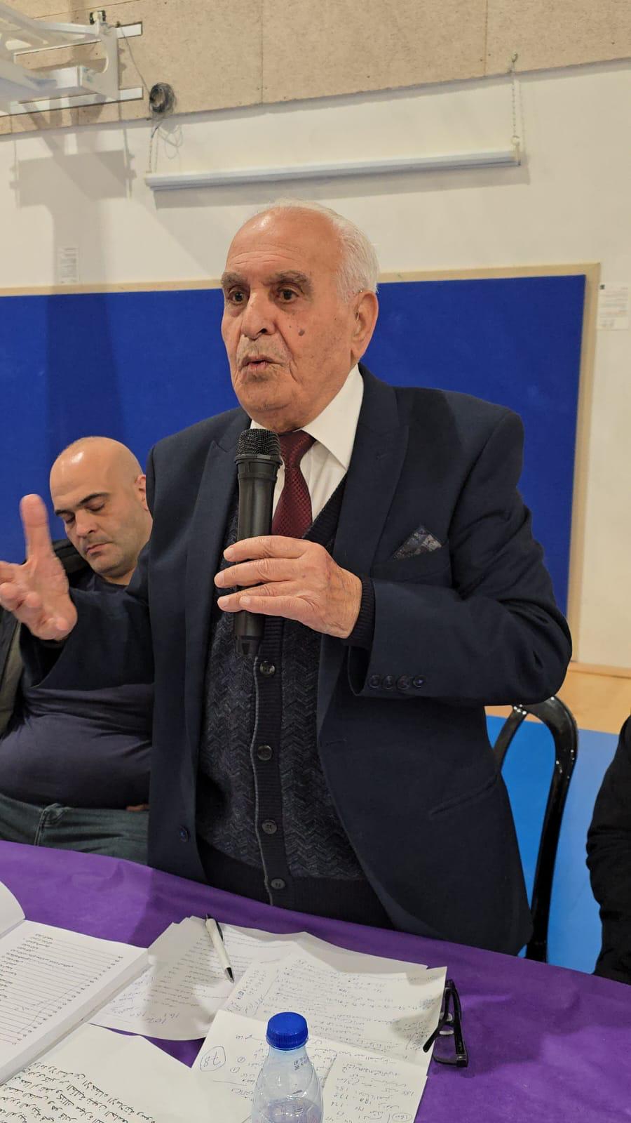 وكانت الكلمة التّالية للأمين العامّ للاتّحاد، د. محمّد هيبي، وبدوره بارك لأعضاء الاتّحاد وأصدقائه وعموم الحاضرين وشعبنا وأمّتنا برمضان والصّوم المسيحيّ، وذكر أنّ لتزامنهما دلالة قوميّة ووطنيّة، وكذلك شكر البلد المضيف الممثّل بالمجلس والمركز. ونوّه بكفر كنّا كبلد للثّقافة والحبّ والرّمان، بلد يلبّي نداء الأدب والأدباء، وشكر مساهمة الجميع في إنجاح هذه الأمسية الثّقافيّة. وذكر أنّه في هذه القاعة أقيم قبل عدّة أشهر اجتماع المجلس العامّ للاتّحاد القطريّ، وهذه الأمسية كان يجب أن تعقد قبل أربعة أشهر ولكنّ ظروف حرب الإبادة على "غزّة" حالت دون ذلك، وقد اخترنا لها موضوعًا، مشروع السّكاكينيّ في الفكر والثّقافة والأدب. وذكر مستهلًّا بقول السّكاكينيّ: "إذا أردت إنهاض أمّة فنمِّ فيها حسّ الجمال"، ومن ثمّ تطرّق إلى نشاطه السّياسيّ والوطنيّ، حيث قاد سنة 1908 حركة شعبيّة لتعريب الكنيسة الأرثودكسيّة، وأقام الكثير من المؤسّسات والمدارس مثل المدرسة الدّستوريّة، وهو أوّل رئيس للمجلس الوطنيّ الفلسطينيّ.