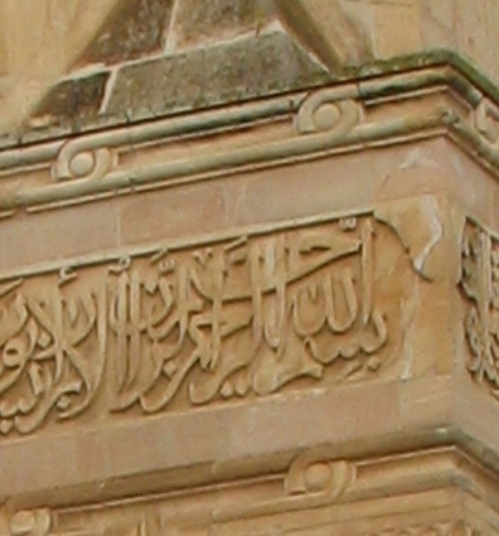 في اعلى الجدران وعلى الجهات الاربع نقش بخطّ الثّلث، هذا نصّه: