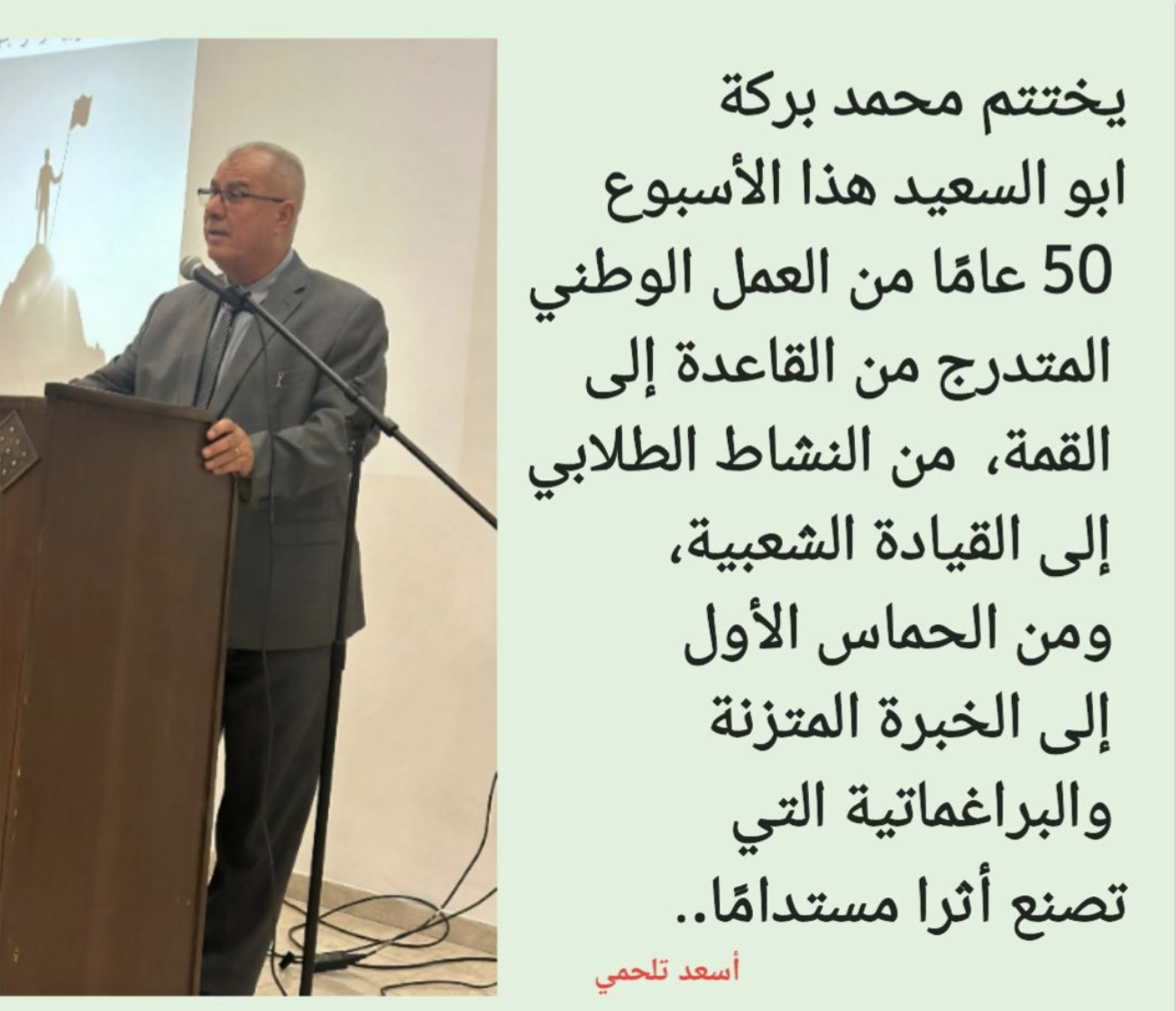 يوم السبت المقبل، يختتم السيد محمد بركة أبو السعيد عشر سنوات في رئاسة لجنة المتابعة العليا للجماهير العرببة متممًا بذلك نصف قرن من العمل الوطني الريادي المتواصل.