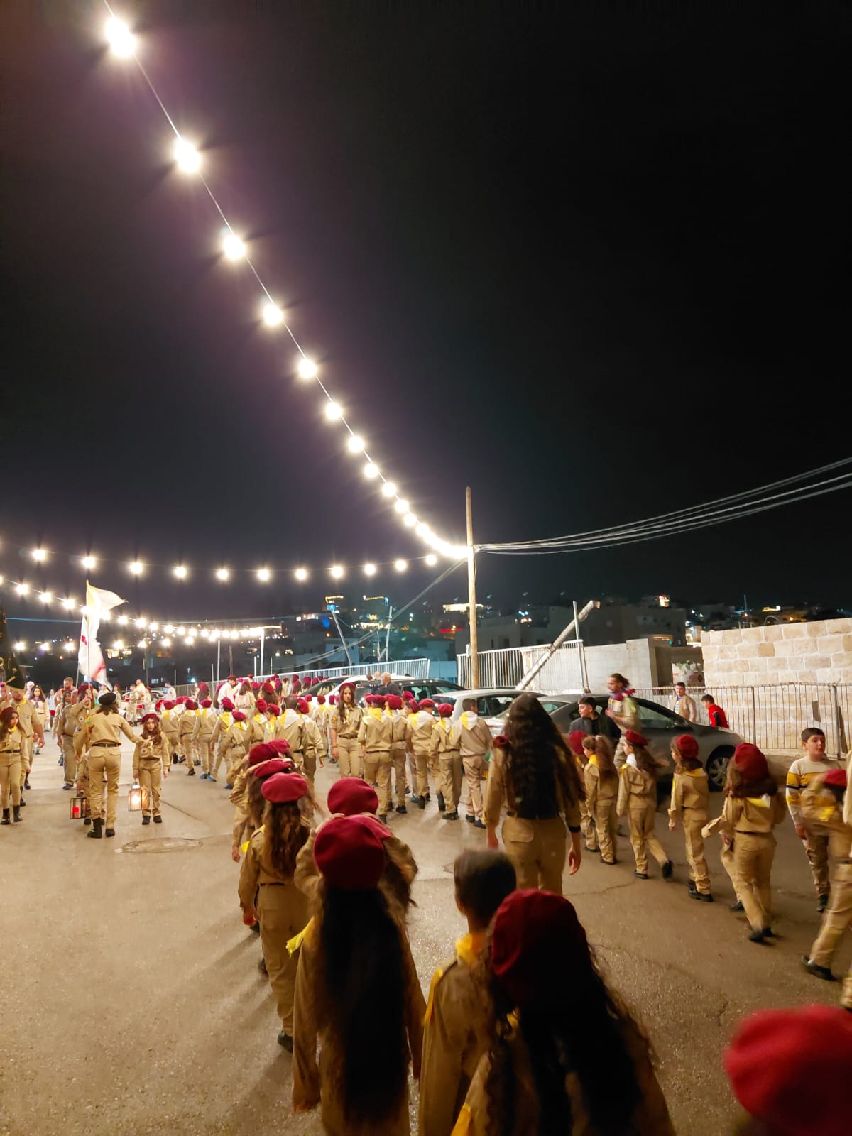 انطلقت المسيرة من مقر الكشاف المسيحي الذي سار أعضاؤها في مقدمة المسيرة الى ساحة كنيسة القديس يوسف للاتين وهناك تم إضاءة شجرة الرعية، وبعدها إلى كنيسة القديسين بطرس وبولس حيث اضيئت شجرة الكنيسة، وبعدها إلى كنيسة القديسين هيلانة وقسطنطين فالكنيسة الانجيلية وانتهاء في ساحة باب الدير.