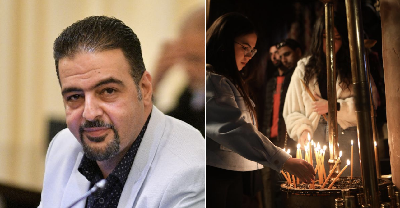 كلمة عضو بلدية حيفا رجا زعاترة في أمسية "ميلاد النور" التي نظمتها كنيسة الروم الأرثوذكس في حيفا مع جوقة سراج بقيادة الفنان سامر بشارة، وبالتعاون مع مديرية المساواة في بلدية حيفا، في قاعة كريجر في الكرمل الفرنسي، مساء الأحد 7.12.2025)