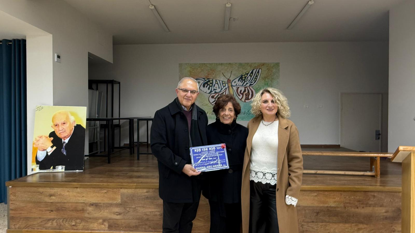بالرغم من العاصفة الموعودة"بايرون" التقينا بالأمس في قاعة الكلية الارثوذكسية العربية بحيفا للمشاركة في إطلاق اسم حنا ابو حنا على الدوار الذي يربط بين شارعي اللنبي واسحاق سادي حيث مباني الكلية. وحضر هذا الاحتفال رئيس بلدية حيفا ومساعديه واعضاء من مجلسها البلدي، وجمع غفير من العائلة وزملائه السابقين ومعلمين من الكلية وخريجين منها بالإضافة الى ضيوف قدموا من قرية الرينة (بالقرب من مدينة الناصرة)مسقط رأسه.
