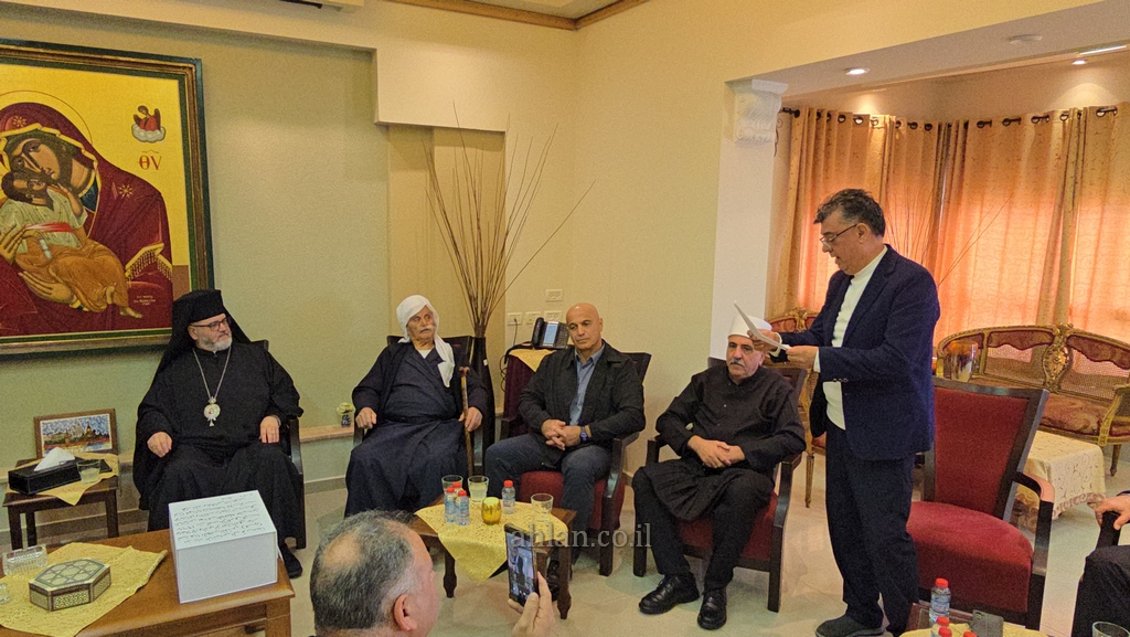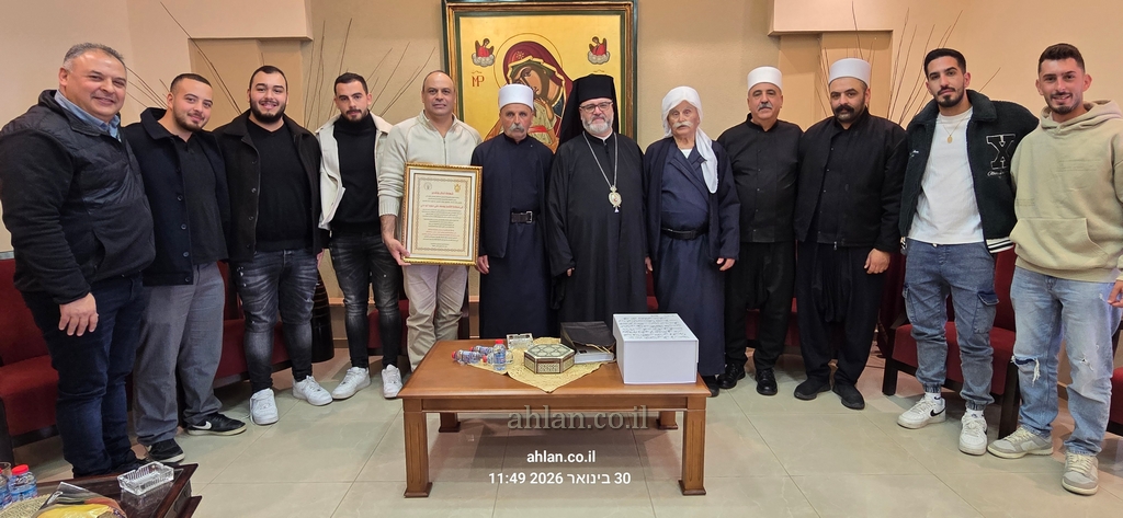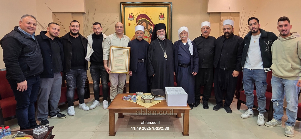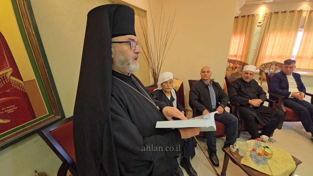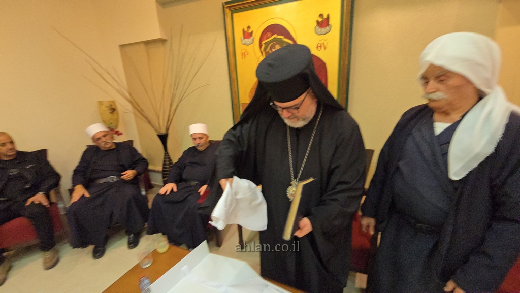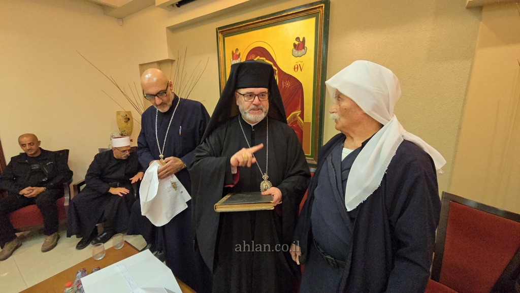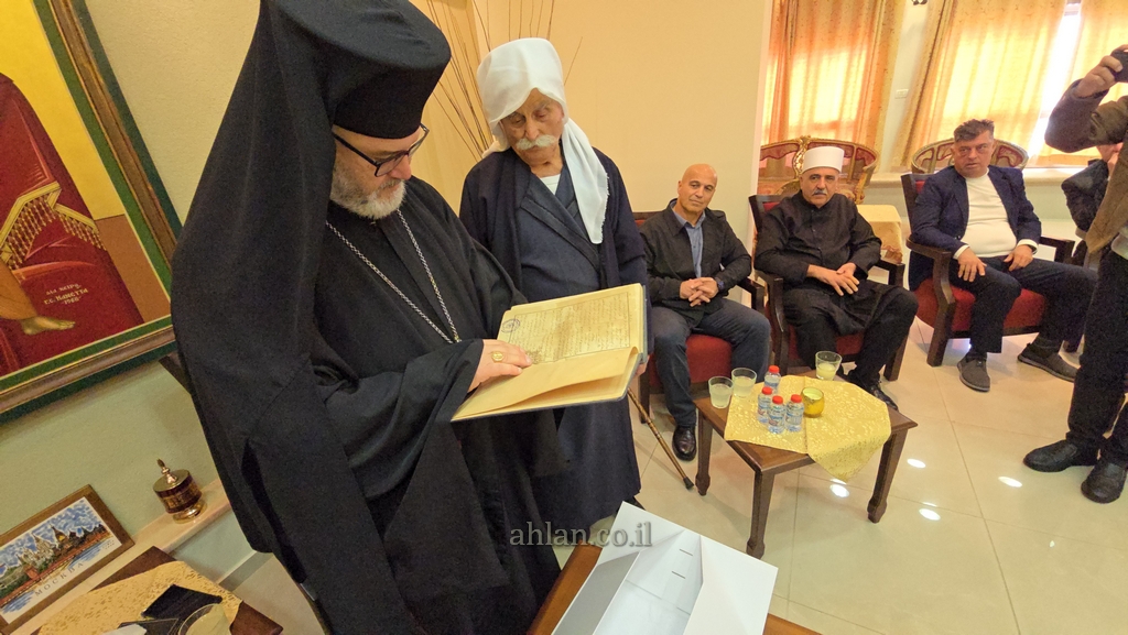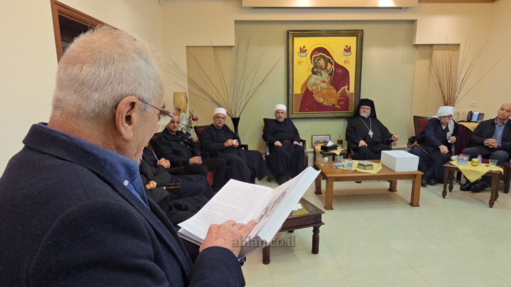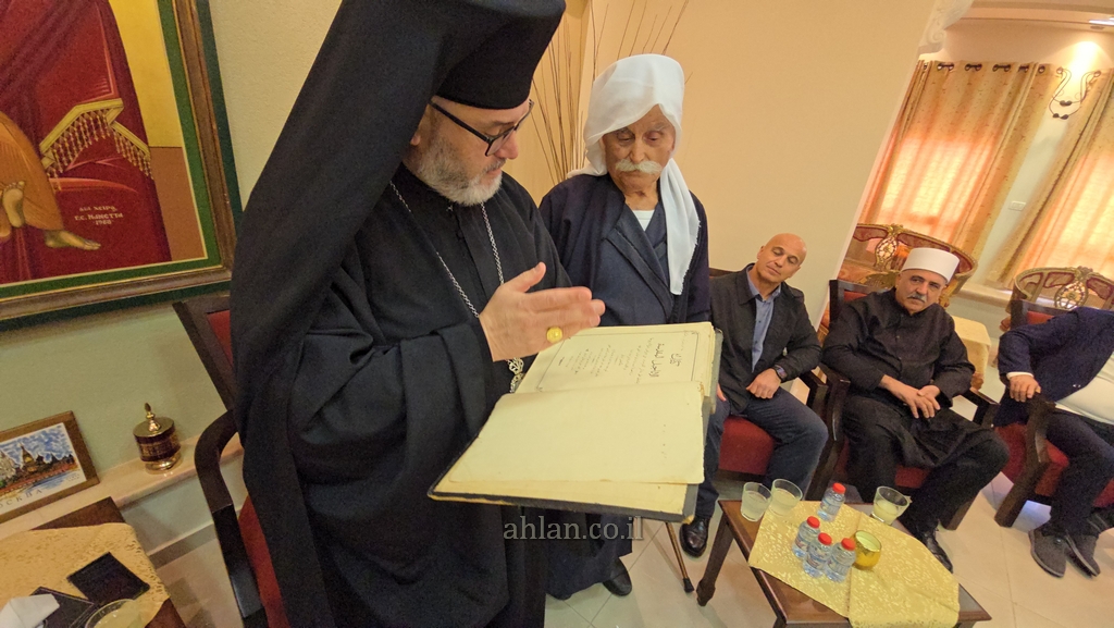 استقبل سيادة المطران يوسف متى الجزيل الوقار، بمعية عدد من كهنة الأبرشية، في دار المطرانية في حيفا، يوم الجمعة 30.1.2026 وفدا من مشايخ ووجهاء طائفة الموحدين الدروز، الذين قدموا له الكتب المقدسة، والتي تم انتشالها من تحت ركام كنيسة بانياس. وتحدث بهذه المناسبة الشيخ يوسف علي سويد من البقيعة، الذي سرد كيفية عثوره على هذه الكتب المقدسة، وقال إنه كان يعمل في إحدى القرى التعاونية في الجليل الأعلى عام 1967، وخرج مع مجموعة من السكان في جولة في الجولان، وعرّجوا على كنيسة بانياس، فوجدوها قد تحطمت نوافذها وأبوابها والدمار منتشر في كل مكان، ووجد على أحد الرفوف بعض الكتب القديمة، فقال في نفسه أود الاحتفاظ بهذه الكتب من الكنيسة. فحملها إلى أحد أساتذة الجامعة في حيفا الذي أكد له أنها كتب مقدسة مسيحية، وتستخدم للصلاة، وبضمنها الإنجيل المقدس. وقرر الاحتفاظ بها في البيت إلى حين تصليح الكنيسة وإعادة استعمالها. وأخبر أبناءه وأحفاده بوصيته للمحافظة على هذه الكتب وتسليمها للمسؤولين في الكنيسة.