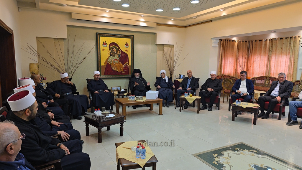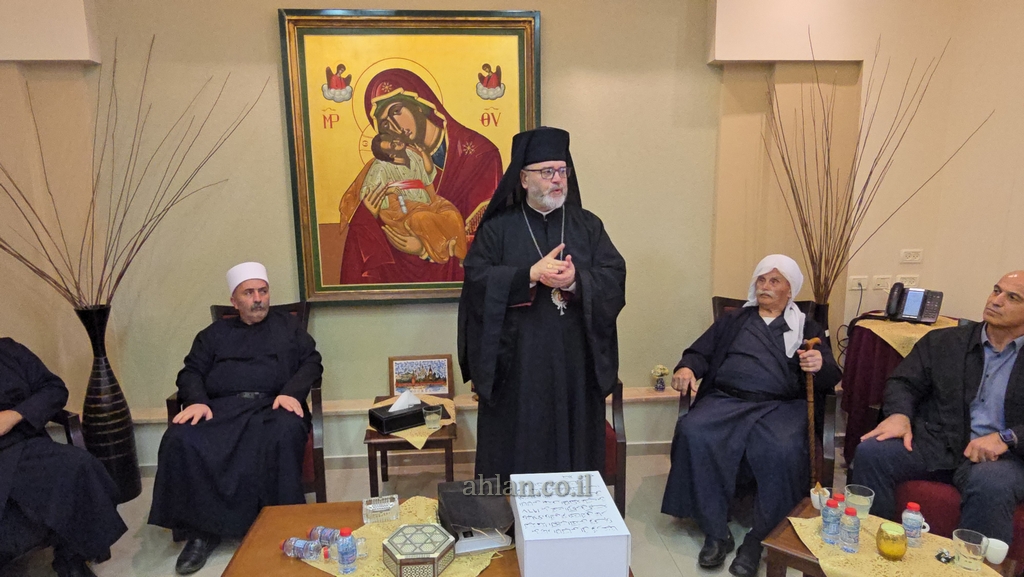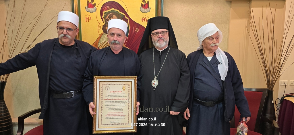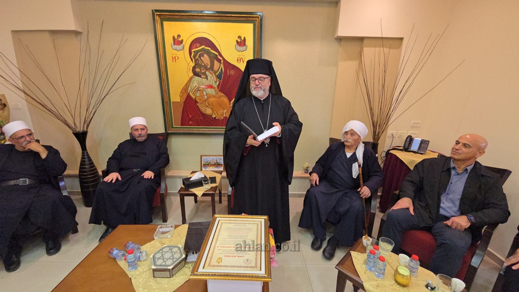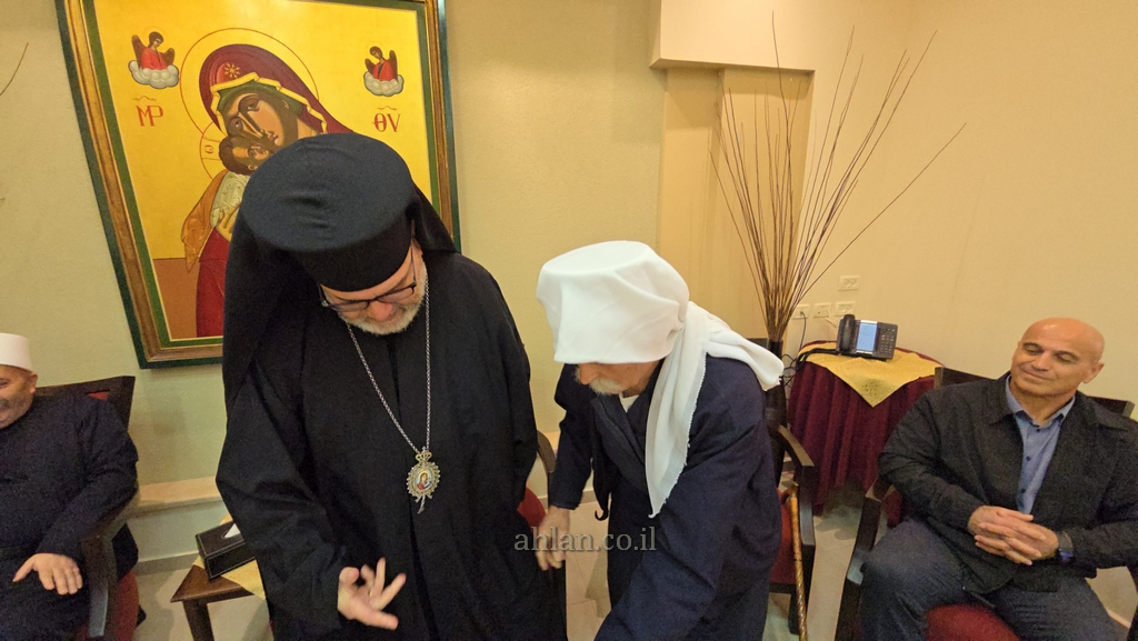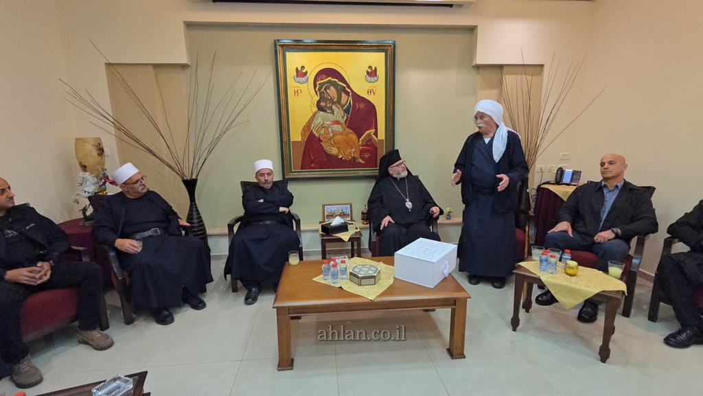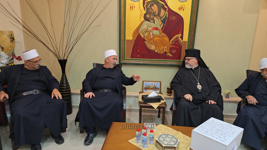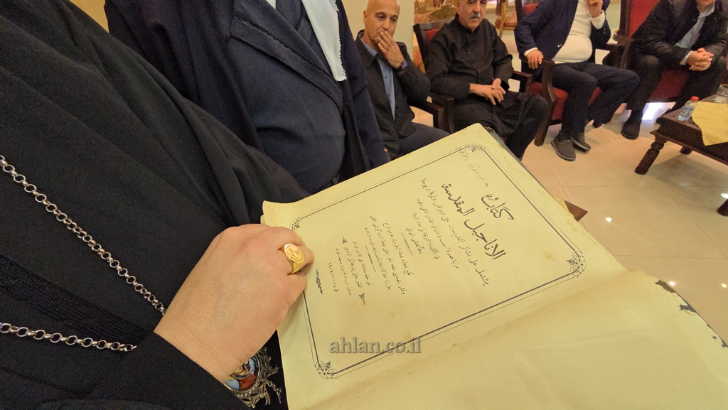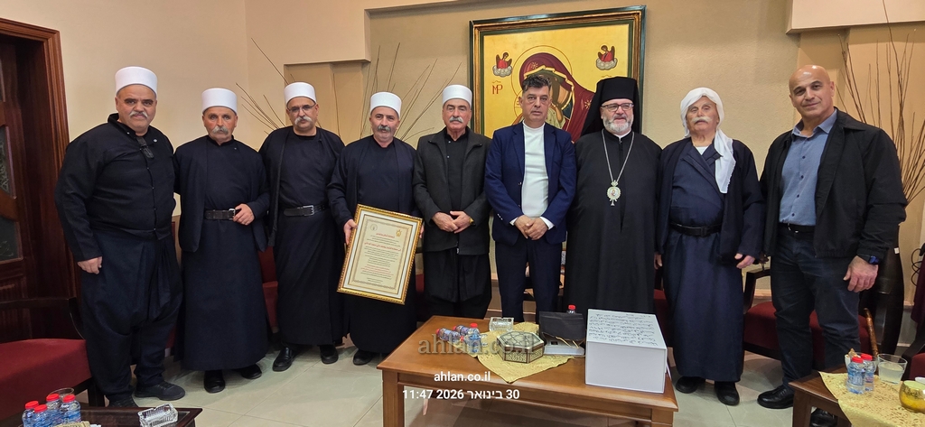 استقبل سيادة المطران يوسف متى الجزيل الوقار، بمعية عدد من كهنة الأبرشية، في دار المطرانية في حيفا، يوم الجمعة 30.1.2026 وفدا من مشايخ ووجهاء طائفة الموحدين الدروز، الذين قدموا له الكتب المقدسة، والتي تم انتشالها من تحت ركام كنيسة بانياس. وتحدث بهذه المناسبة الشيخ يوسف علي سويد من البقيعة، الذي سرد كيفية عثوره على هذه الكتب المقدسة، وقال إنه كان يعمل في إحدى القرى التعاونية في الجليل الأعلى عام 1967، وخرج مع مجموعة من السكان في جولة في الجولان، وعرّجوا على كنيسة بانياس، فوجدوها قد تحطمت نوافذها وأبوابها والدمار منتشر في كل مكان، ووجد على أحد الرفوف بعض الكتب القديمة، فقال في نفسه أود الاحتفاظ بهذه الكتب من الكنيسة. فحملها إلى أحد أساتذة الجامعة في حيفا الذي أكد له أنها كتب مقدسة مسيحية، وتستخدم للصلاة، وبضمنها الإنجيل المقدس. وقرر الاحتفاظ بها في البيت إلى حين تصليح الكنيسة وإعادة استعمالها. وأخبر أبناءه وأحفاده بوصيته للمحافظة على هذه الكتب وتسليمها للمسؤولين في الكنيسة.