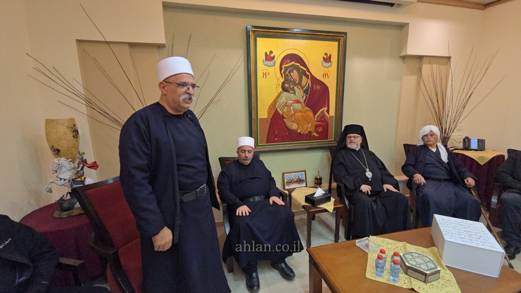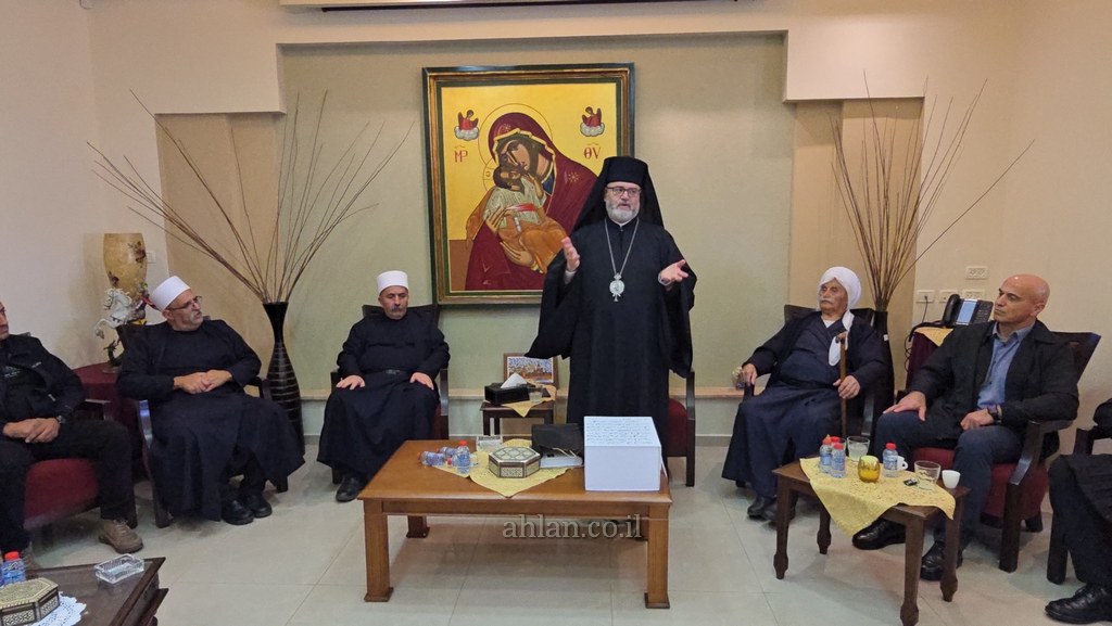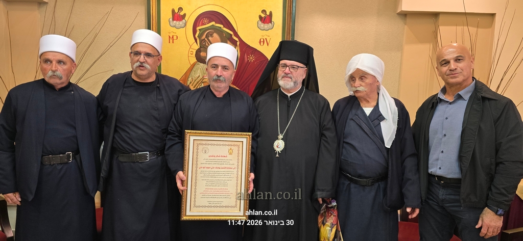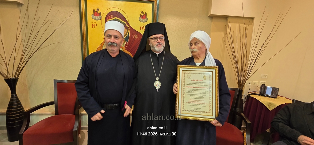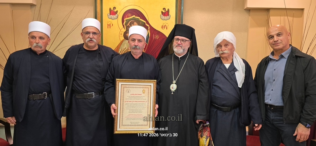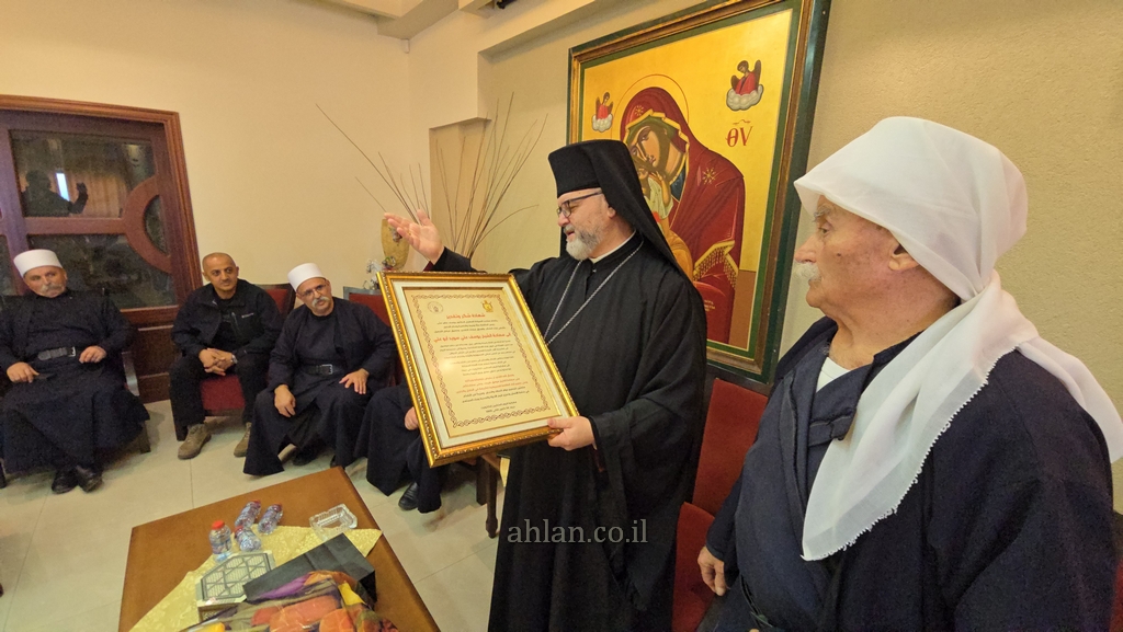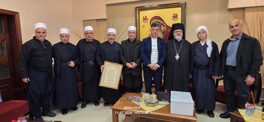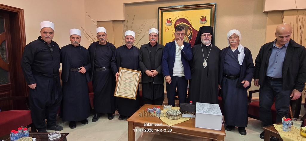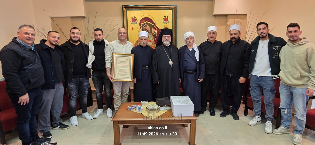 استقبل سيادة المطران يوسف متى الجزيل الوقار، بمعية عدد من كهنة الأبرشية، في دار المطرانية في حيفا، يوم الجمعة 30.1.2026 وفدا من مشايخ ووجهاء طائفة الموحدين الدروز، الذين قدموا له الكتب المقدسة، والتي تم انتشالها من تحت ركام كنيسة بانياس. وتحدث بهذه المناسبة الشيخ يوسف علي سويد من البقيعة، الذي سرد كيفية عثوره على هذه الكتب المقدسة، وقال إنه كان يعمل في إحدى القرى التعاونية في الجليل الأعلى عام 1967، وخرج مع مجموعة من السكان في جولة في الجولان، وعرّجوا على كنيسة بانياس، فوجدوها قد تحطمت نوافذها وأبوابها والدمار منتشر في كل مكان، ووجد على أحد الرفوف بعض الكتب القديمة، فقال في نفسه أود الاحتفاظ بهذه الكتب من الكنيسة. فحملها إلى أحد أساتذة الجامعة في حيفا الذي أكد له أنها كتب مقدسة مسيحية، وتستخدم للصلاة، وبضمنها الإنجيل المقدس. وقرر الاحتفاظ بها في البيت إلى حين تصليح الكنيسة وإعادة استعمالها. وأخبر أبناءه وأحفاده بوصيته للمحافظة على هذه الكتب وتسليمها للمسؤولين في الكنيسة.