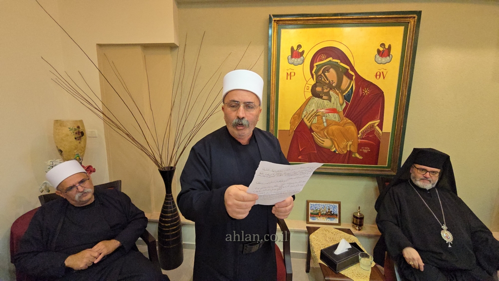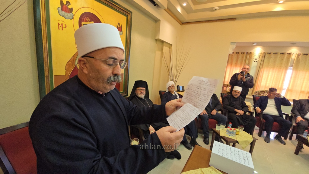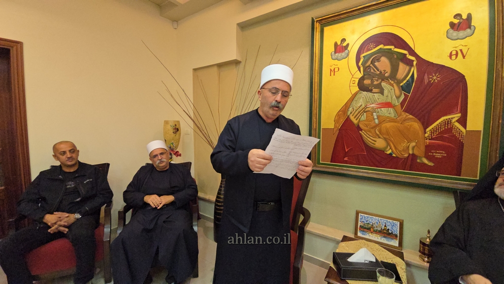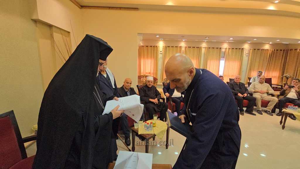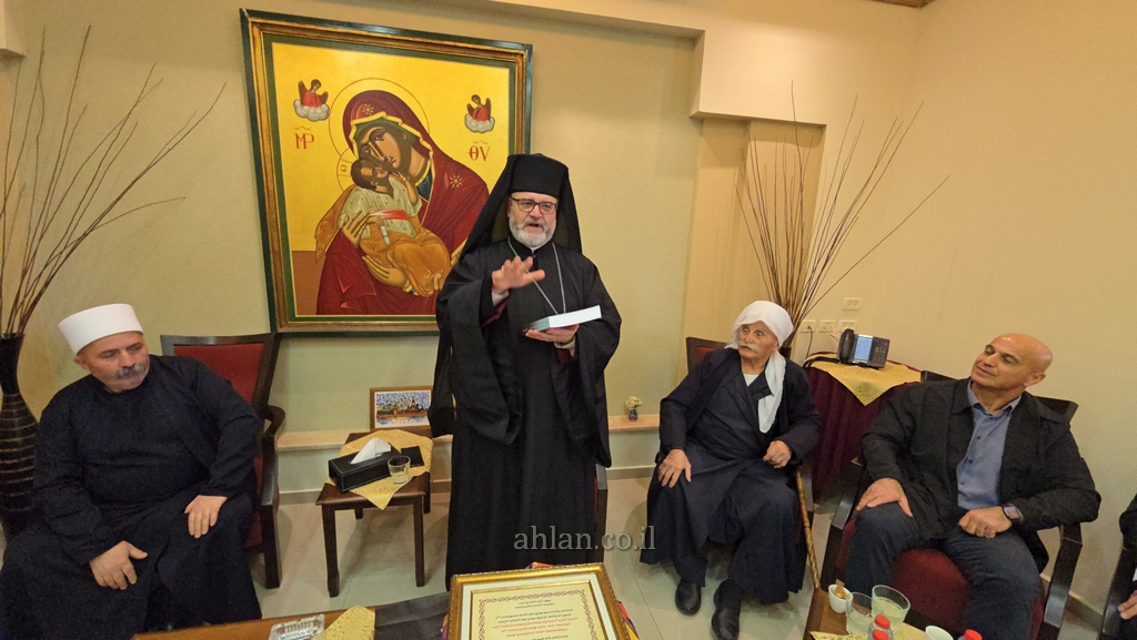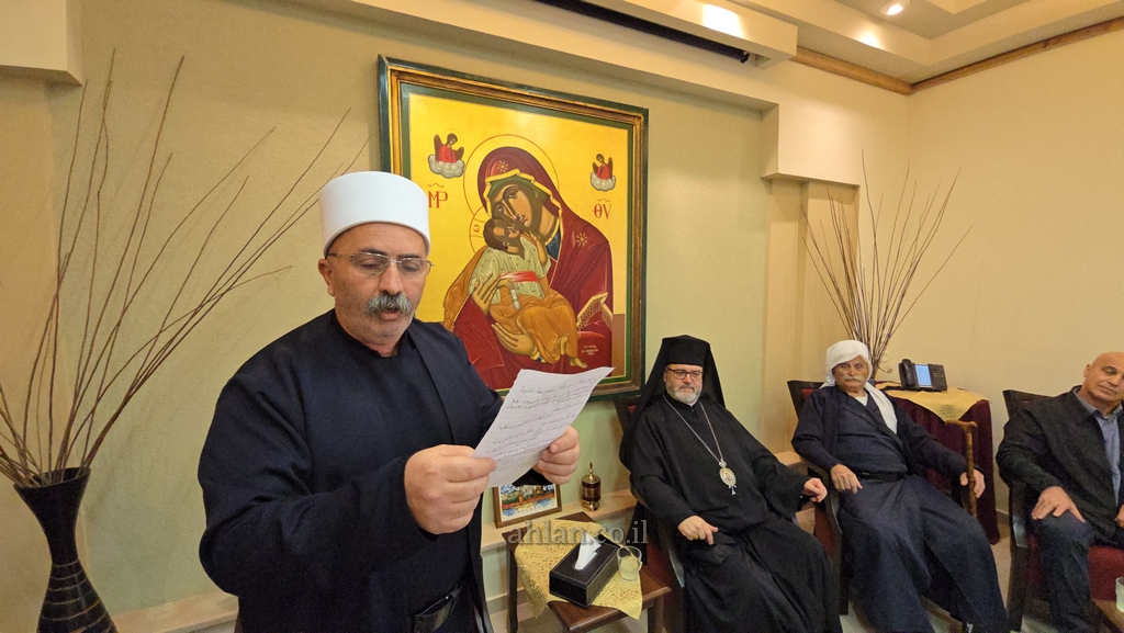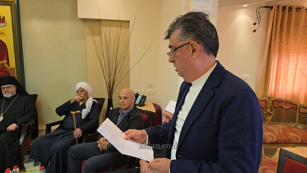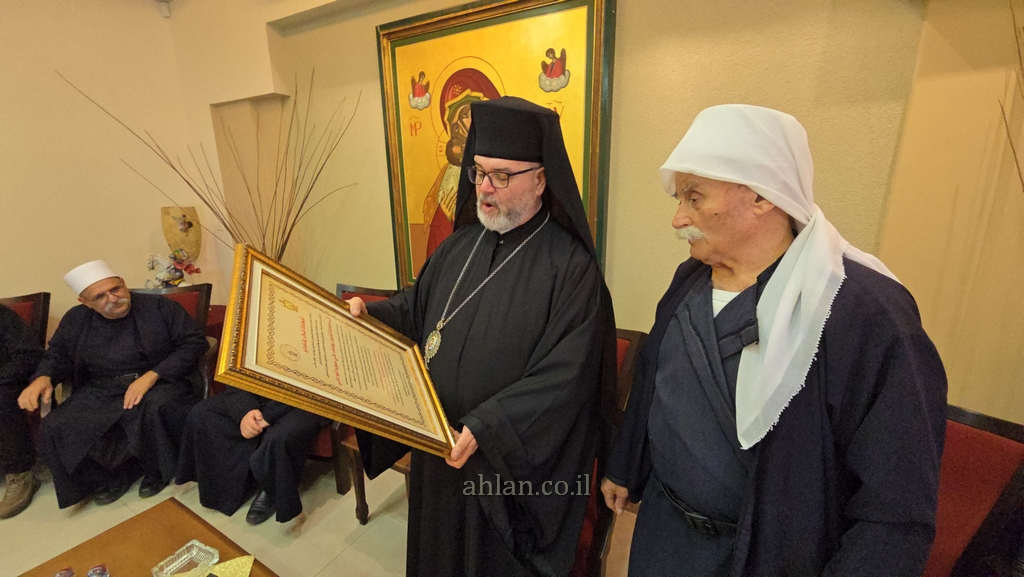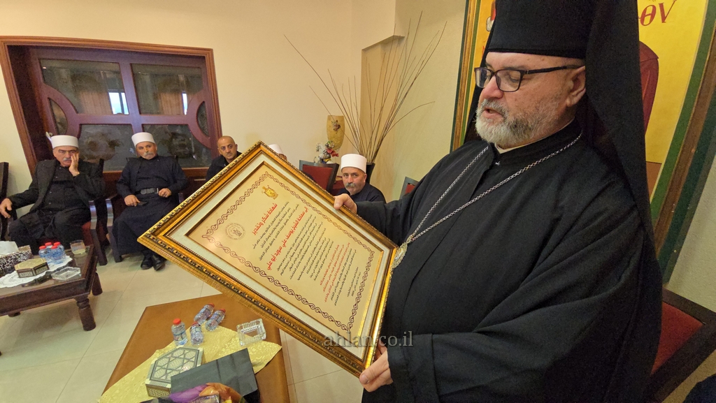 استقبل سيادة المطران يوسف متى الجزيل الوقار، بمعية عدد من كهنة الأبرشية، في دار المطرانية في حيفا، يوم الجمعة 30.1.2026 وفدا من مشايخ ووجهاء طائفة الموحدين الدروز، الذين قدموا له الكتب المقدسة، والتي تم انتشالها من تحت ركام كنيسة بانياس. وتحدث بهذه المناسبة الشيخ يوسف علي سويد من البقيعة، الذي سرد كيفية عثوره على هذه الكتب المقدسة، وقال إنه كان يعمل في إحدى القرى التعاونية في الجليل الأعلى عام 1967، وخرج مع مجموعة من السكان في جولة في الجولان، وعرّجوا على كنيسة بانياس، فوجدوها قد تحطمت نوافذها وأبوابها والدمار منتشر في كل مكان، ووجد على أحد الرفوف بعض الكتب القديمة، فقال في نفسه أود الاحتفاظ بهذه الكتب من الكنيسة. فحملها إلى أحد أساتذة الجامعة في حيفا الذي أكد له أنها كتب مقدسة مسيحية، وتستخدم للصلاة، وبضمنها الإنجيل المقدس. وقرر الاحتفاظ بها في البيت إلى حين تصليح الكنيسة وإعادة استعمالها. وأخبر أبناءه وأحفاده بوصيته للمحافظة على هذه الكتب وتسليمها للمسؤولين في الكنيسة.