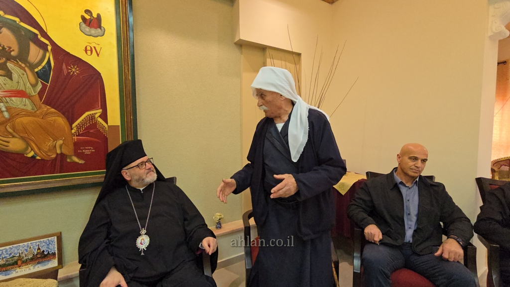 وتحدث الإيكونيموس إلياس العبد النائب الأسقفي في الأبرشية عن العلاقات المتينة بين الأهالي في الجليل، من مختلف الطوائف والكنائس، لا سيما في البقيعة التي تضم أبناء الديانات السماوية الثلاث، وعددا كبيرا من الأدباء والشعراء، وأنهم يعيشون جنبًا إلى جنب بأخوّة وتفاهم وسلام. وأكد قدس الأب العبد في كلمته على أن الخطوة التي قام بها المشايخ الأجلاء، وهذا الوفد الكريم، إنما تؤكد توجهكم للعنوان الشرعي الصحيح والمسؤول عن هذه الكنيسة العزيزة. وأضاف أن هذه الكتب المقدسة، يجب أن تكون في عهدة الجهة الكنسية المسؤولة والشرعية، وهي مطرانية الروم الملكيين الكاثوليك في الجليل. ونوّه إلى أنه ظهرت في الآونة الأخيرة بعض التعديات والتمادي على الكنيسة وعلى سيادة المطران شخصيًا، الأمر الذي يمس مباشرة بالكنيسة. ولذا نحييكم ونثمن زيارتكم غاليا أيها الوفد الكريم، بتسليم هذه المقدسات مباشرة إلى الشخصية الشرعية العليا للكنيسة في الجليل، ألا وهو سيادة المطران يوسف متى.