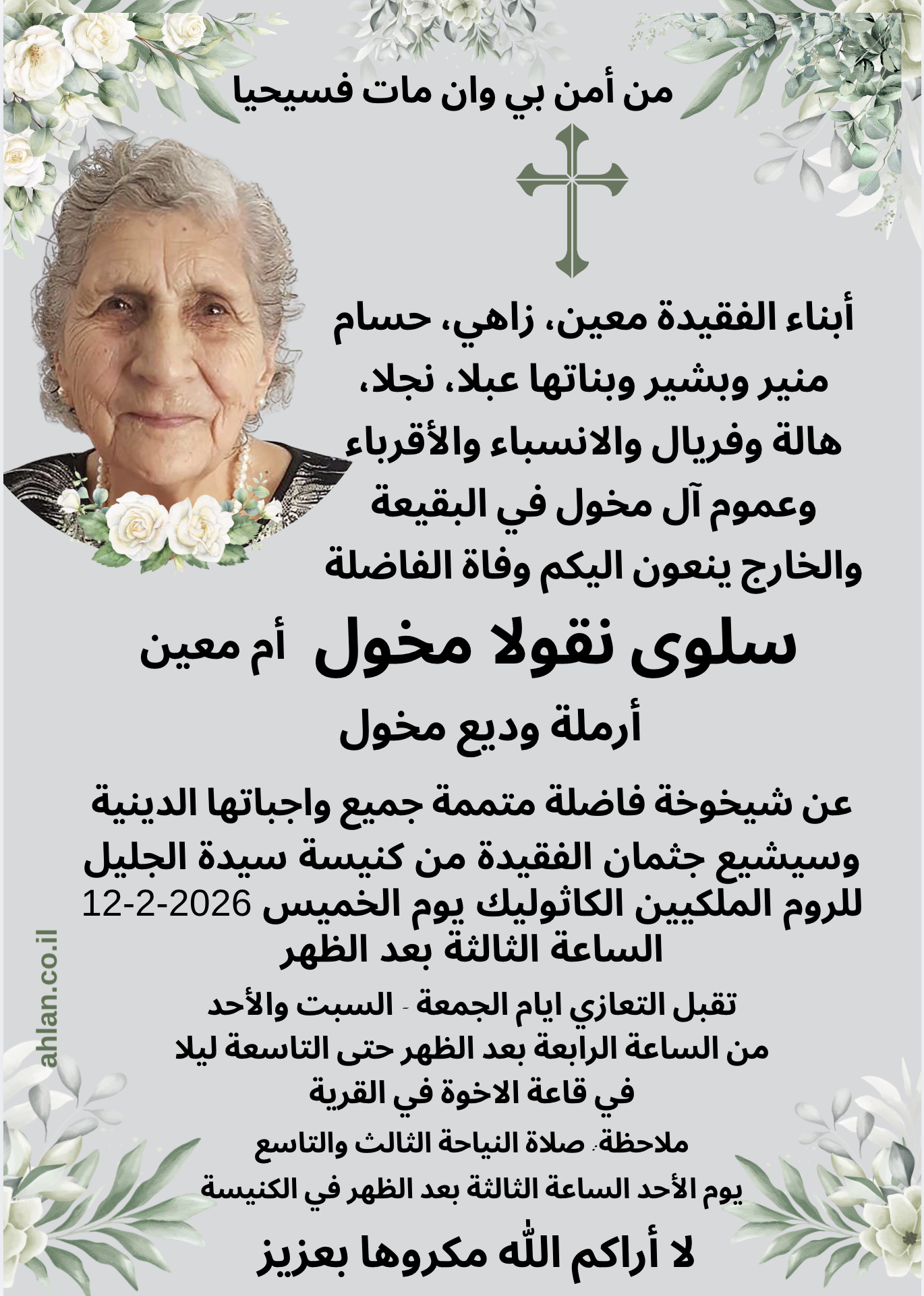 البقيعة: وفاة الفاضلة سلوى نقولا نخول