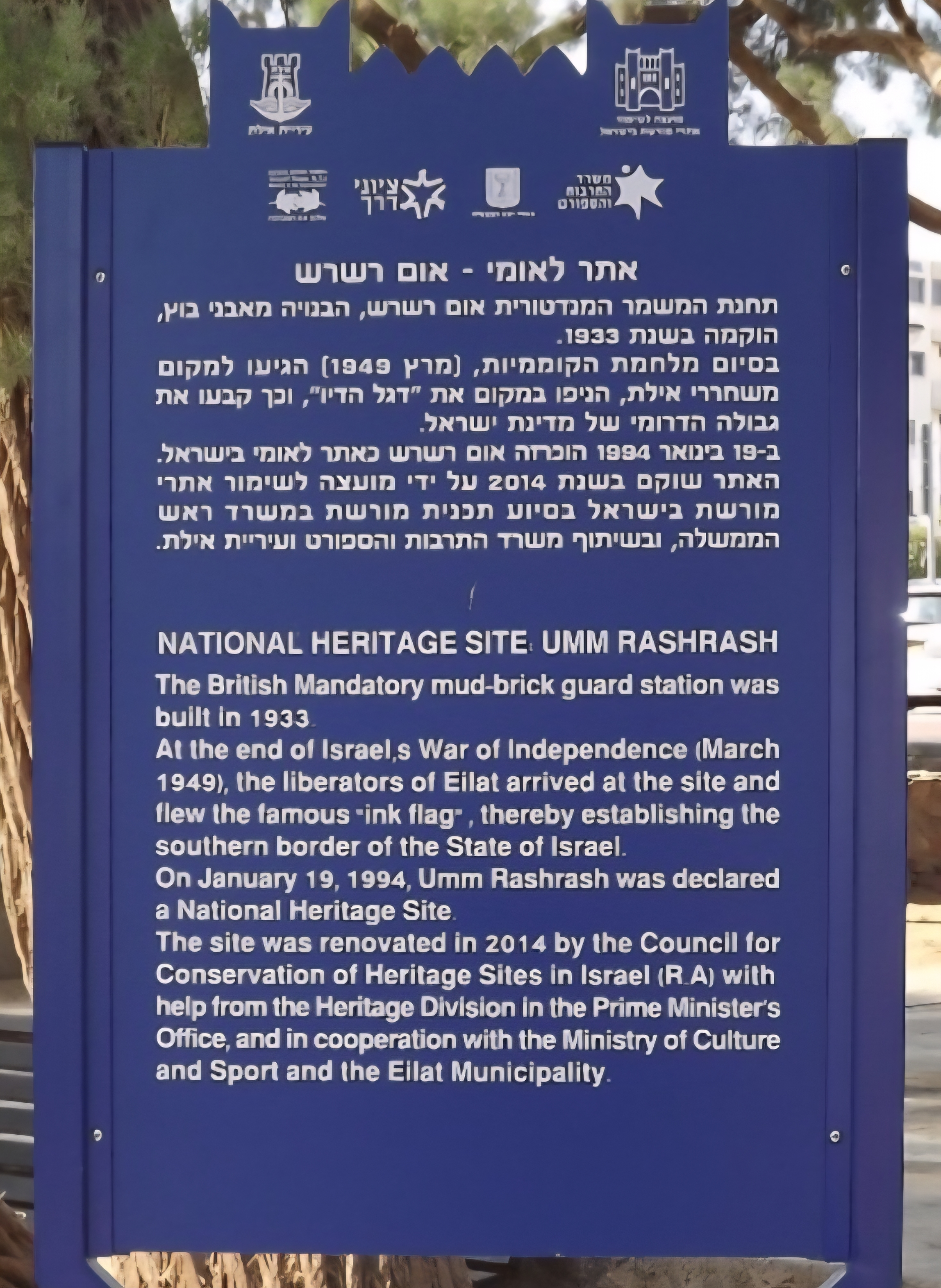 أقيمت لاحقًا مدينة إيلات، وتمّ هدم قسم كبير من غرف مركز الشرطة، لكن بعض الغرف الباقية، صارت مركز نقاش في البلديّة والسلطات العليا، رأي قال بضرورة هدمها وآخر دعا للحفاظ عليها وتحويلها لأثر تاريخي تخليدًا لاحتلالها سنة 1949. وانتصر الرّأي الثاني، وتم إعلان المكان أثرًا تاريخيًّا سنة 1994، وتمّ ترميم الجزء الباقي سنة 2014، وأقيم تمثال من الحديد يظهر فيه جنودٌ إسرائيليّون يرفعون العلم الذي أطلقوا عليه اسم علم الحبر، لأن الجنود آنذاك رسموا بالحبر العلم الذي رفعوه.