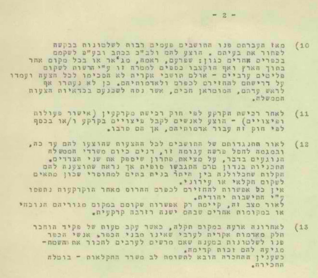 مستشار رئيس الحكومة لشؤون العرب، أوري لوبراني، يُقدم لرئيس الحكومة يوم 18.3.57 ملخص عن موضوع اقرث وتوصيات للرد على الاقتراحات.