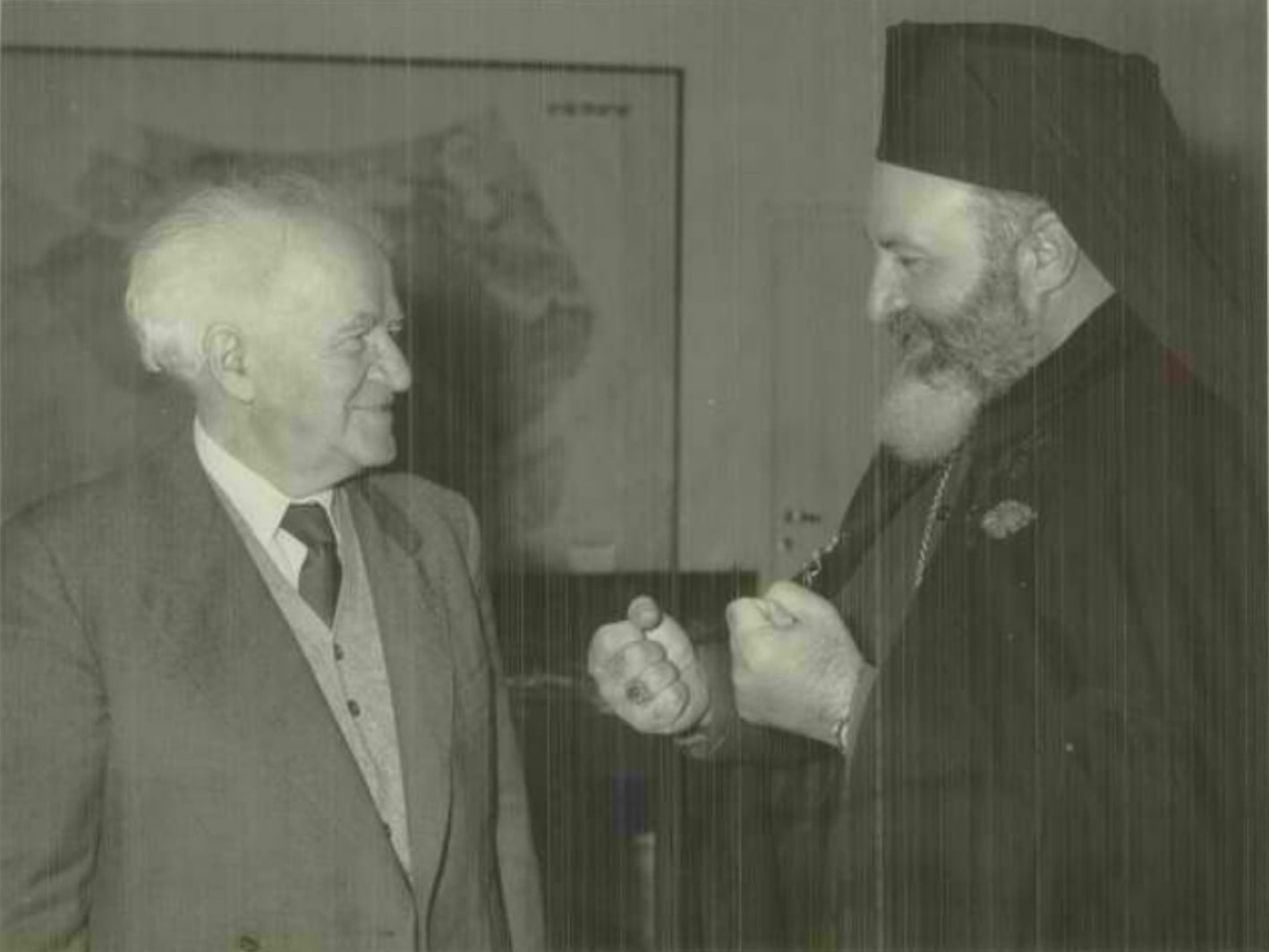 صحيفة هعولام هازه (3.12.53) تنقل اجتماع المطران مع شخصيات عربية لتأسيس حزب ينافس الشيوعية، شارك بالاجتماع محمد نمر هواري (رئيس نجادة سابقاً) والقاضي طاهر الطبري (قاضي المحكمة الشرعية في الناصرة).