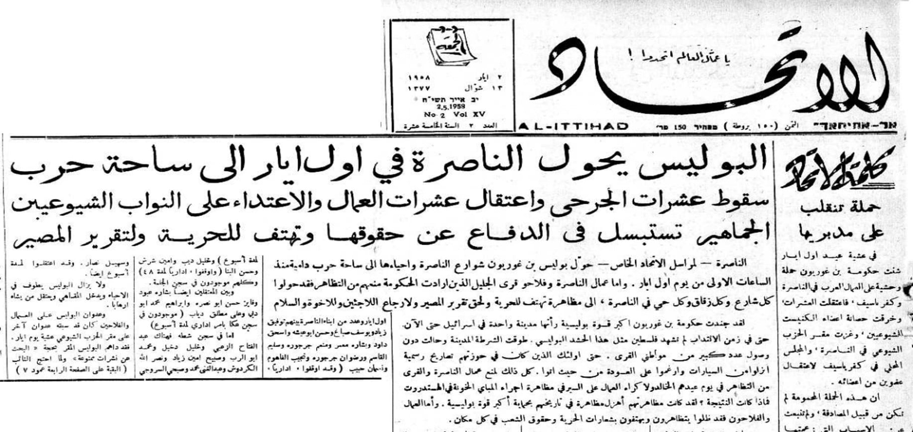 عام 1958 يتم التخطيط لإقامة ثلاثة مسيرات في الناصرة بمناسبة الأول من أيار.