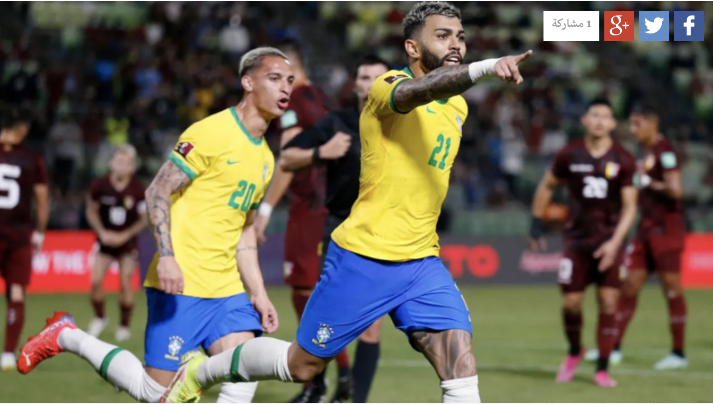 اهلا- رياضة عالمية- تويتر قلب المنتخب البرازيلي الطاولة على مضيفته فنزويلا فجر الجمعة، وحول تأخره بهدف إلى فوز 3-1، ليحقق العلامة الكاملة بانتصاره التاسع على التوالي، وذلك ضمن منافسات الجولة الحادية عشرة من تصفيات أميركا الجنوبية المؤهلة إلى مونديال قطر 2022. تقدم أصحاب الأرض بهدف مبكر عن طريق إريك راميريس (11)، قبل أن يعادل مدافع سان جيرمان ماركينيوس النتيجة (71)، ويتقدم لاعب فلامينغو البرازيلي غابريال باربوسا (85 من ركلة جزاء)، ليختتم لاعب أياكس الهولندي أنتوني ثلاثية الـ"سيليساو" (90+5). وبتلك النتيجة رفع المنتخب البرازيلي رصيده إلى 27 نقطة من تسع مباريات في صدارة الترتيب، بفارق ثماني نقاط عن أقرب ملاحقيه المنتخب الأرجنتيني، في المقابل تجمد رصيد منتخب فنزويلا عند 4 نقاط في قعر الترتيب، وهذه هي الخسارة الثامنة له. واكتفى المنتخب الأرجنتيني بالتعادل السلبي على أرض مستضيفه الباراغواياني فجر الجمعة ضمن منافسات الجولة الحادية عشرة من تصفيات أميركا الجنوبية المؤهلة إلى كأس العالم قطر 2022. تعادلت الأرجنتين من دون أهداف على أرض باراغواي وحافظت على سجلها خالياً من الهزائم للمباراة الثالثة والعشرين توالياً. وبهذا التعادل، حافظ رفاق ليونيل ميسي على مركزهم الثاني مع 19 نقطة، فيما بقيت باراغواي سادسة مع 12 نقطة. وتخطّى منتخب بيرو عقبة نظيره التشيلي بنجاح بفوزه عليه بهدفين نظيفين فجر الجمعة ضمن منافسات الجولة الحادية عشرة من التصفيات. وسجّل كريستيان كويفا (36) وسيرجيو بينيا (64) هدفي الفريق الفائز. ورفع المنتخب البيروفي رصيده إلى 11 نقطة في المركز السابع بفارق 4 نقاط عن تشيلي الثامنة. وحسم التعادل السلبي نتيجة مباراة أوروغواي وضيفتها كولومبيا فجر الجمعة ضمن منافسات الجولة الحادية عشرة من تصفيات أميركا الجنوبية المؤهلة إلى كأس العالم. فازت الإكوادور على ضيفتها بوليفيا بثلاثية نظيفة فجر الجمعة ضمن منافسات الجولة الحادية عشرة من تصفيات أميركا الجنوبية المؤهلة إلى كأس العالم قطر 2022. وتناوب على تسجيل أهداف الفائز كل من ميكايل إسترادا (14) وإينير فالنسيا (17) و(19). ورفعت الإكوادور رصيدها إلى 16 نقطة في المركز الثالث، بينما تجمّد رصيد بوليفيا عند 6 نقاط في المرتبة التاسعة.