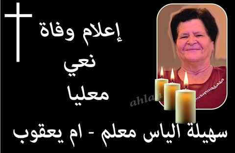 معليا- وفاة الفاضلة سهيلة الياس معلم - ام يعقوب