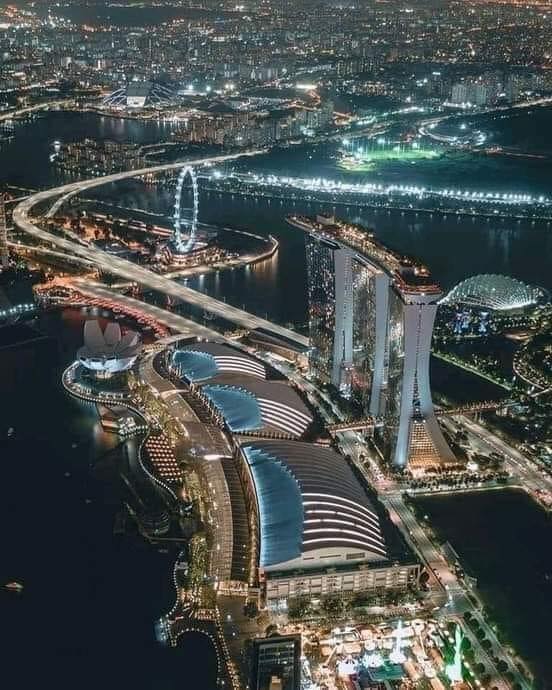 • فيها أغلى فندق في العالم ، فندق أسمه Marina Bay Sands (الصورة دي مأخوذة من فوق حمام السباحة إللي على سطحه) بيحتوي على 2600 غرفة ومكون من 55 طابق في أبراج كبار وتمنه (بالأرض إللي عليها) يساوي 8.8 مليار دولار (يعني 3 أضعاف برج خليفة بالأرض إللي عليها) ومش بس أغلى فندق بل أغلى مبنى في العالم بعد مشروع "أبراج البيت" في السعودية ، وفيها أفضل مبنى في العالم تصميمًا أسمه The Interlace.