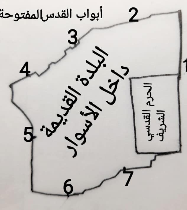 للمدينة اليوم سبعة أبواب مفتوحة وهي، من الشرق باب الأسباط، ومن الشمال باب الساهرة وباب العمود والجديد، ومن الغرب باب الخليل، ومن الجنوب باب صهيون وباب المغاربة.