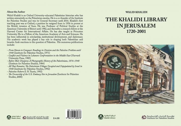المكتبة الخالدية في القدس: صدرت مؤخرا عن مؤسسة الدراسات الفلسطينية والمكتبة الخالدية، الطبعة الثانية من كتاب "المكتبة الخالدية في القدس 1720 – 2001" بالعربية والطبعة الأولى من الكتاب باللغة الإنجليزية، للمؤلف البروفيسور وليد الخالدي.