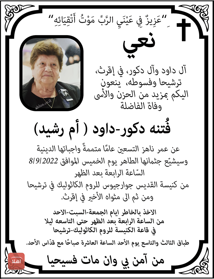ترشيحا: وفاة الفاضلة فتنة دكور - ام رشيد