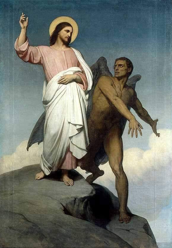 عندما كان الشيطان يجرّبه، فقد كان الرب يسوع يجيب بعبارات من الكتاب المقّدس، وقد كان بإمكانه أن يدفع بمجرِّبه إلى الهاوية، فهو "كلمة الله".