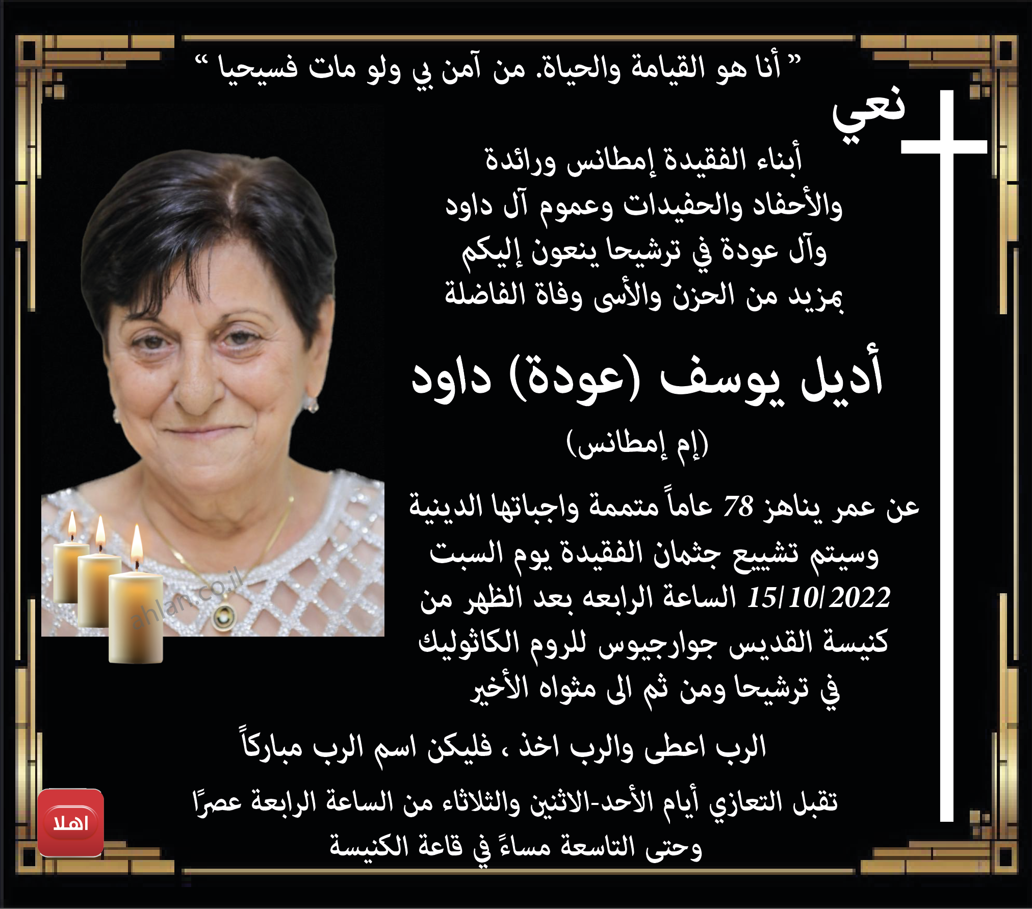 ترشيحا: وفاة الفاضلة اديل عودة داوود- ام امطانس