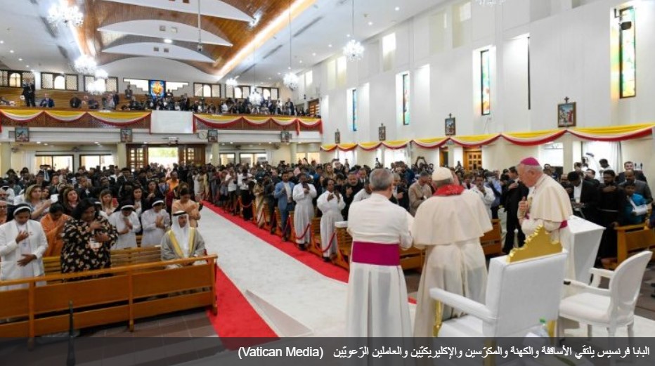 تابع المطران هيندر مشيرًا إلى أن الأشخاص سيلتقي بهم الأب الأقدس هم ممثلو كنيسة مهاجرة، ليس فقط في البحرين وإنما أيضًا في الكويت وقطر والمملكة العربية السعودية، وجميعهم ينتمون إلى النيابة الرسولية لشمال الجزيرة العربية ويمثلون جميع الذين يلتزمون في العمل الراعوي في هذه المنطقة ويعكسون التنوع الثقافي والعرقي للكنيسة المهاجرة في هذا الجزء من العالم. وكثيرون منهم يكافحون كل يوم بإيمان عميق، ويثقون بأننا جميعًا بين يدي أبينا السماوي.