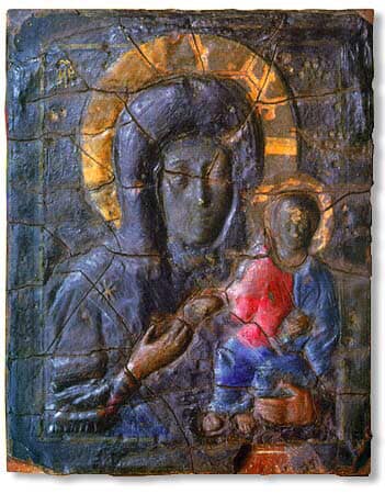 صحيح ان الايقونات الاكثر شهرة في تراثنا الارثوذكسي مرسومة بالالوان ، الا ان المزيد من التدقيق يظهر لنا ان ايقونات محفورة على الخشب او العاج او الشمع او الحجر او المعادن كانت لا تقل شهرة وعجائبية وتكريما ايضاً .